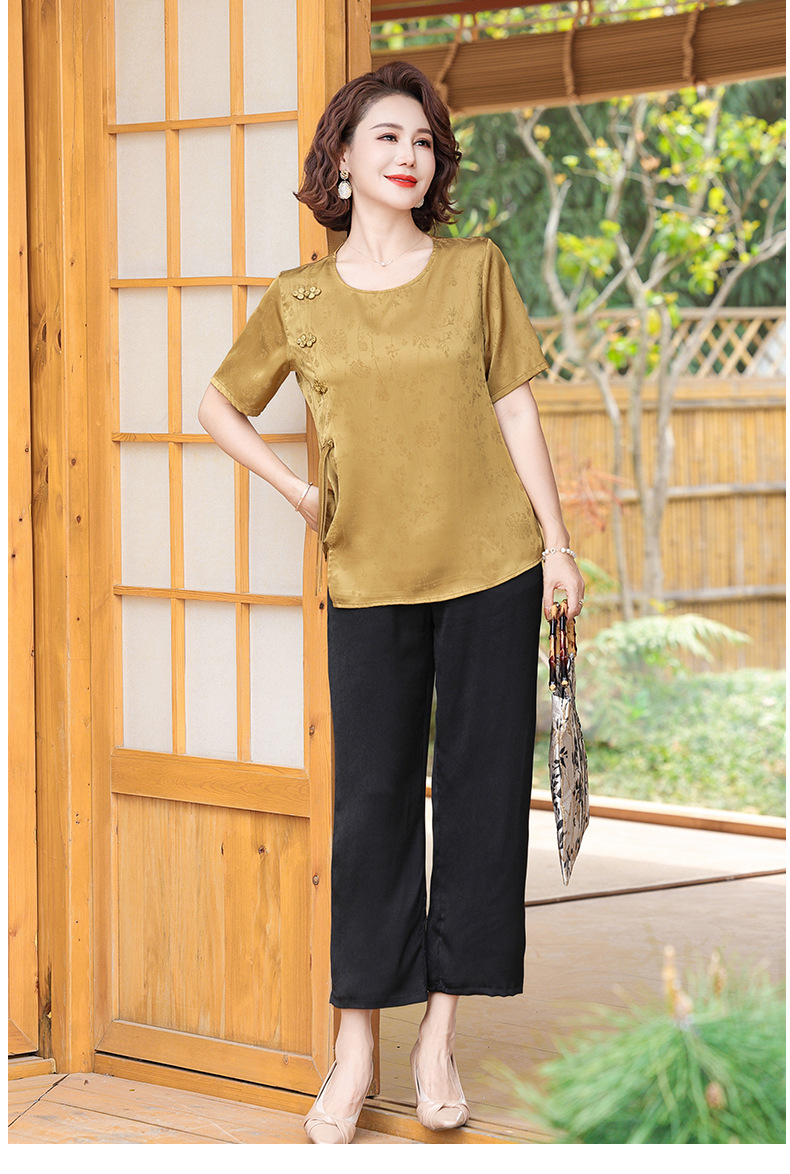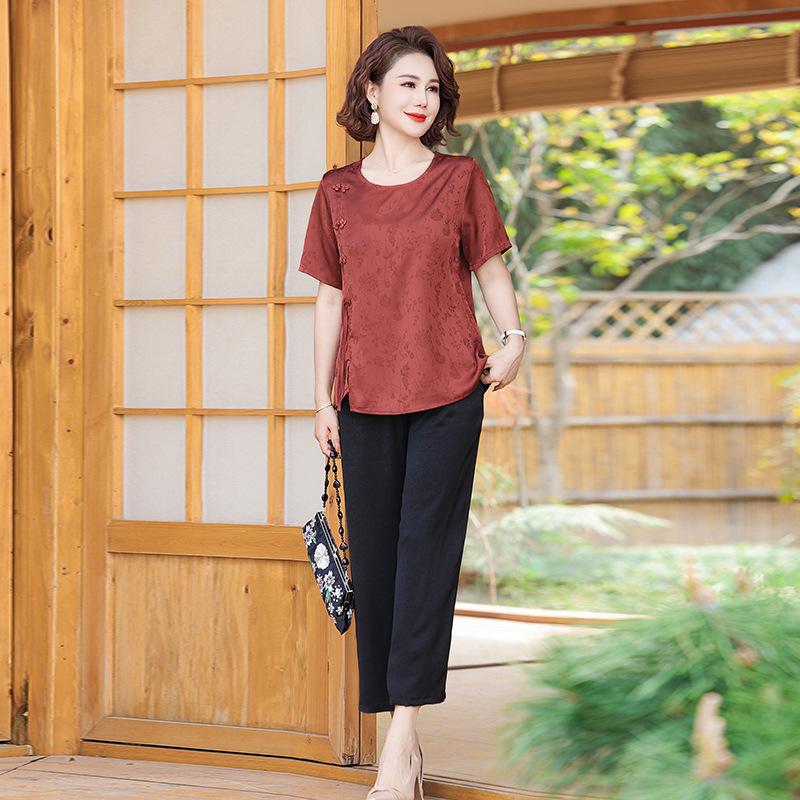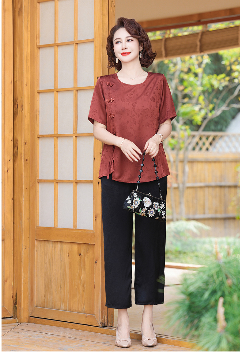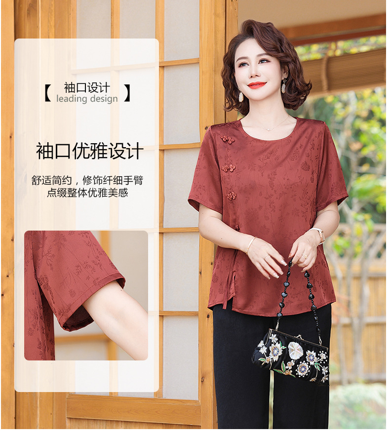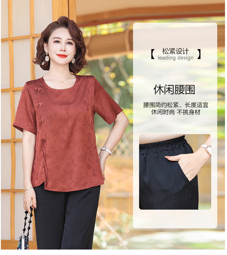 妈妈装夏装新中式国风t恤小衫套装2024新款洋气中老年女装两件套