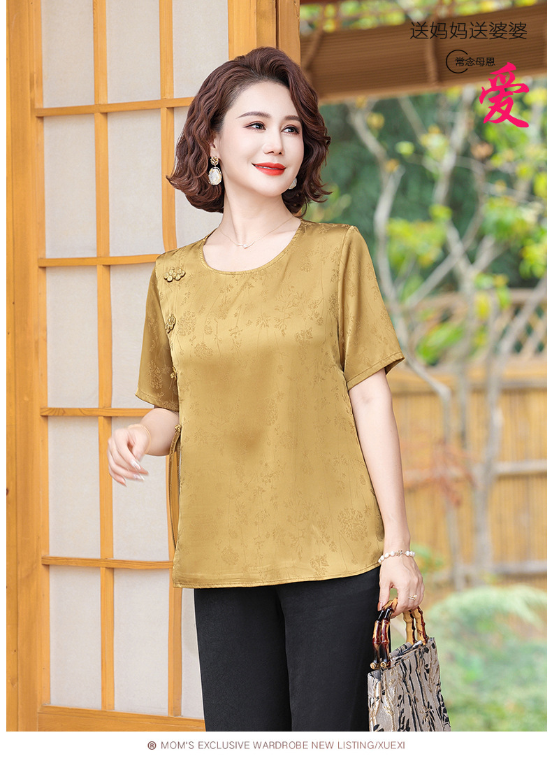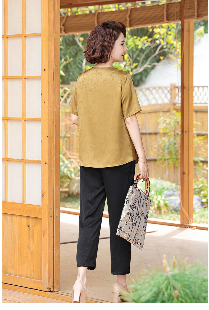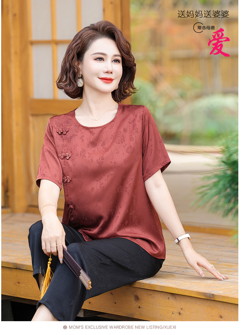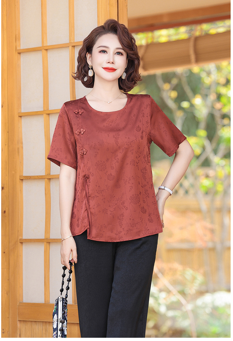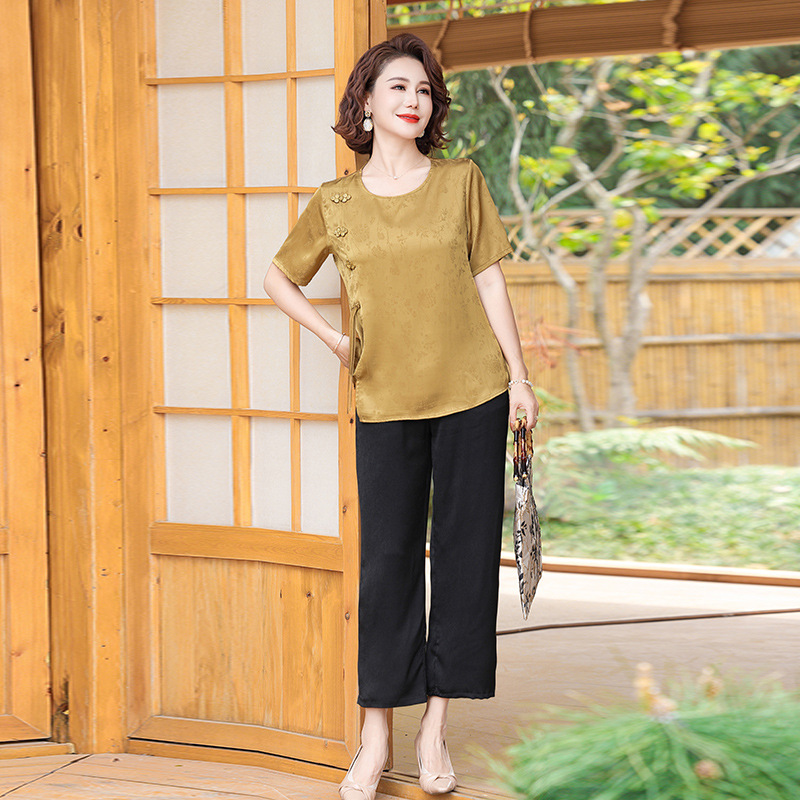 妈妈装夏装新中式国风t恤小衫套装2024新款洋气中老年女装两件套