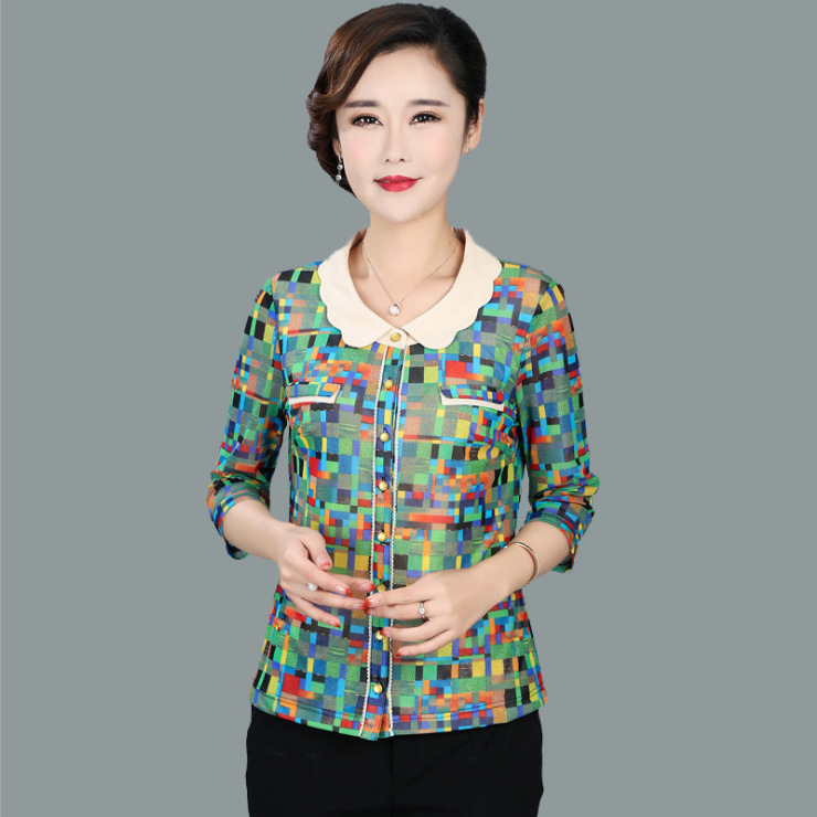 竹语声中老年女装春装新款女士长袖衬衫大码女装2024春装妈妈装