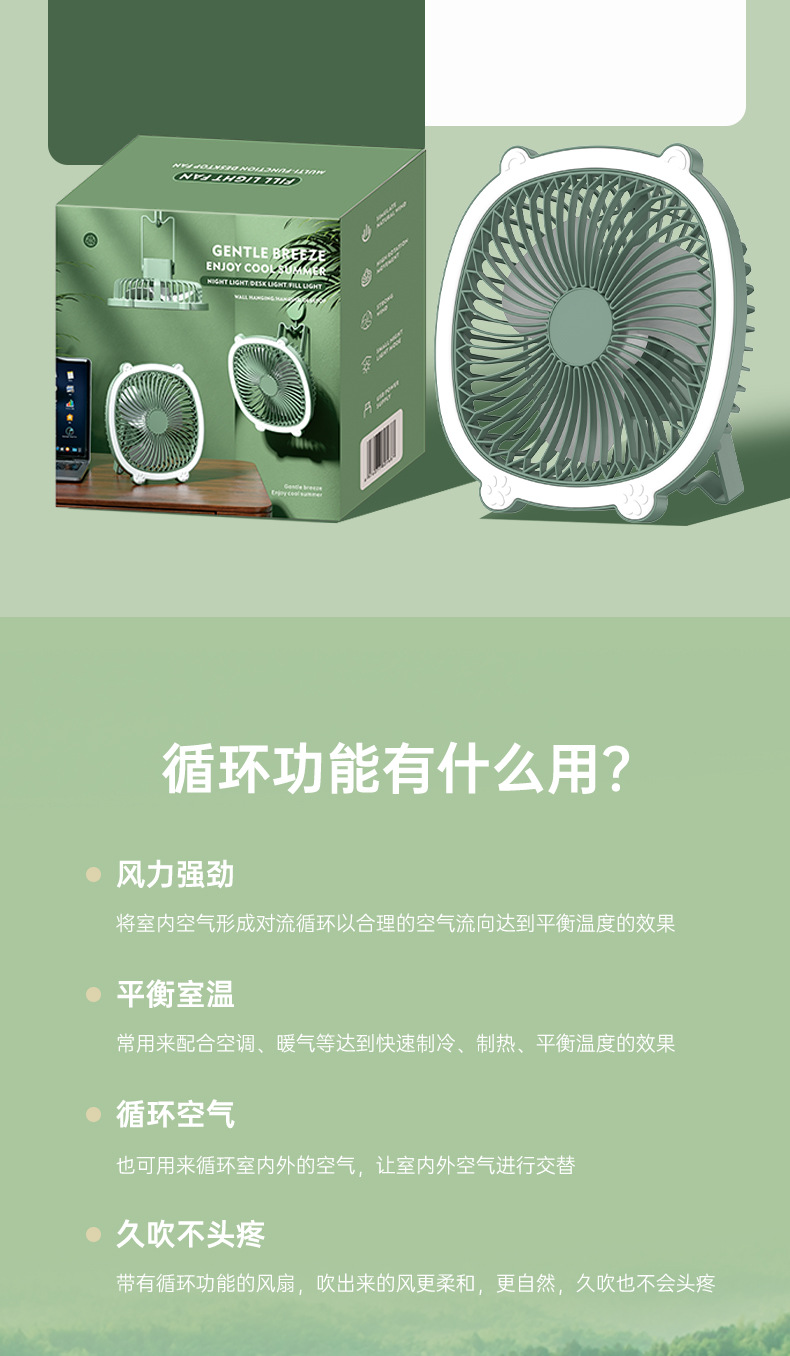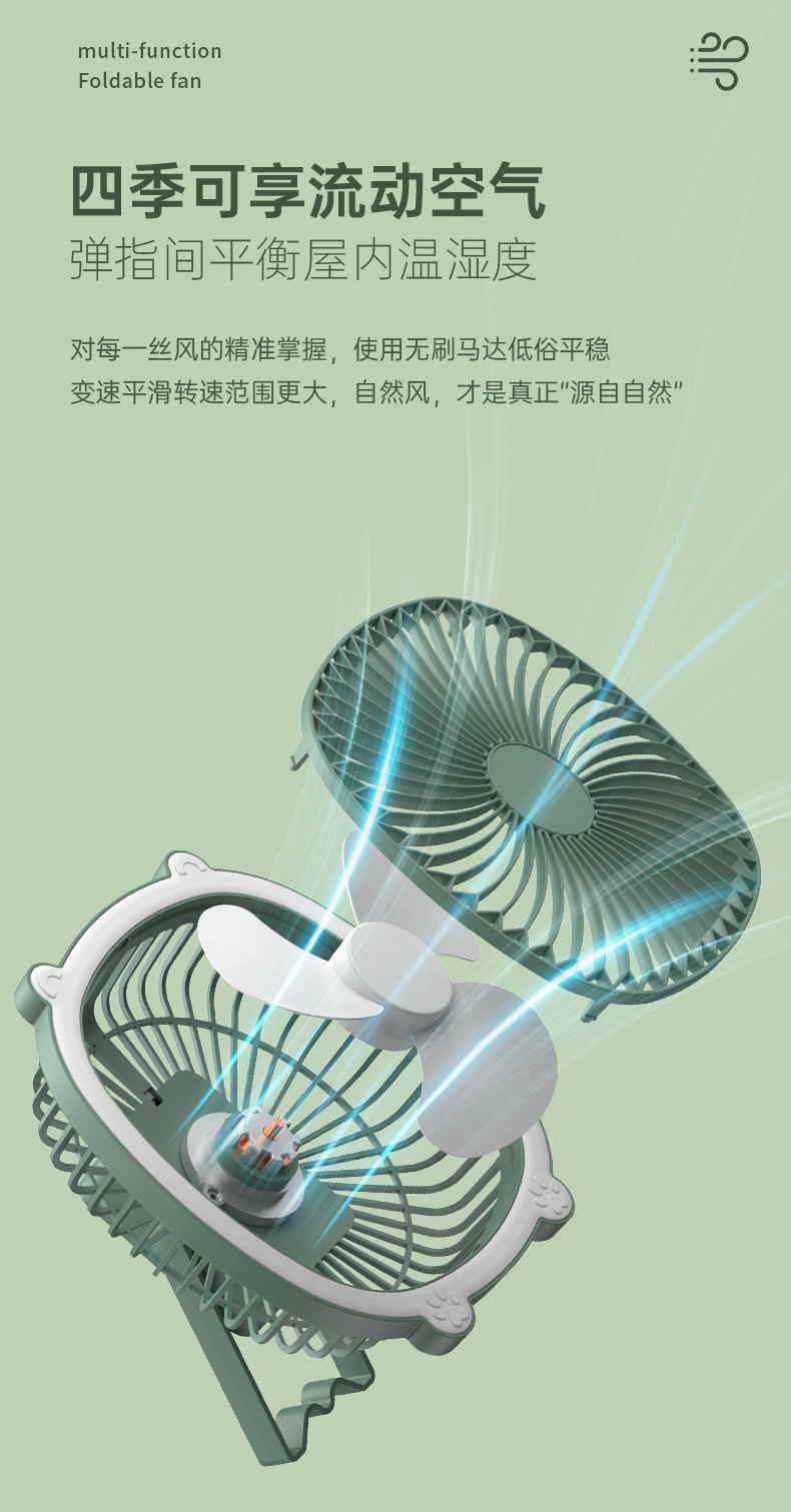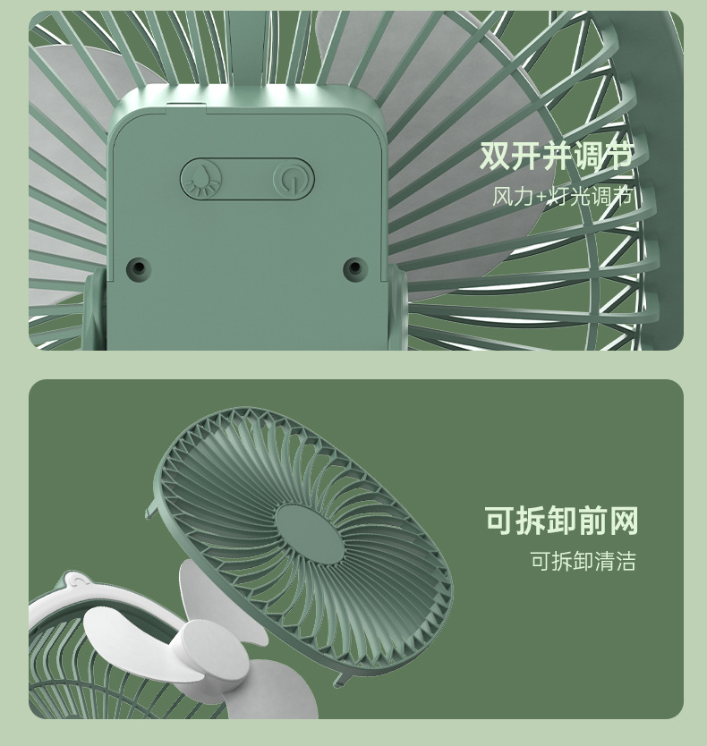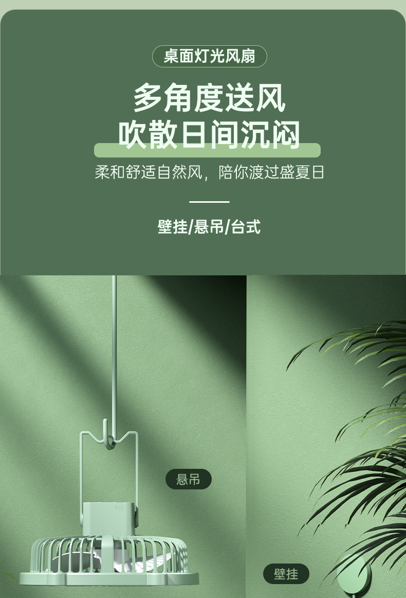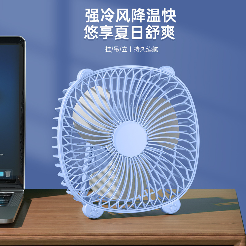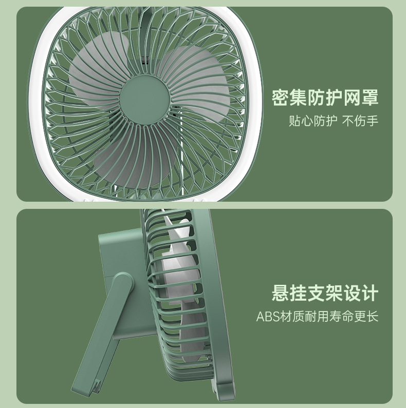 桌面灯光风扇家用USB充电式壁挂电风扇户外便携宿舍大风力循环扇