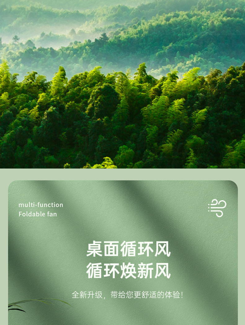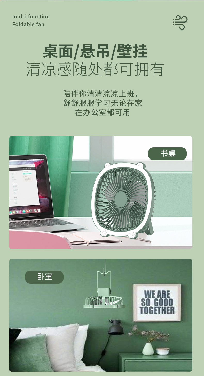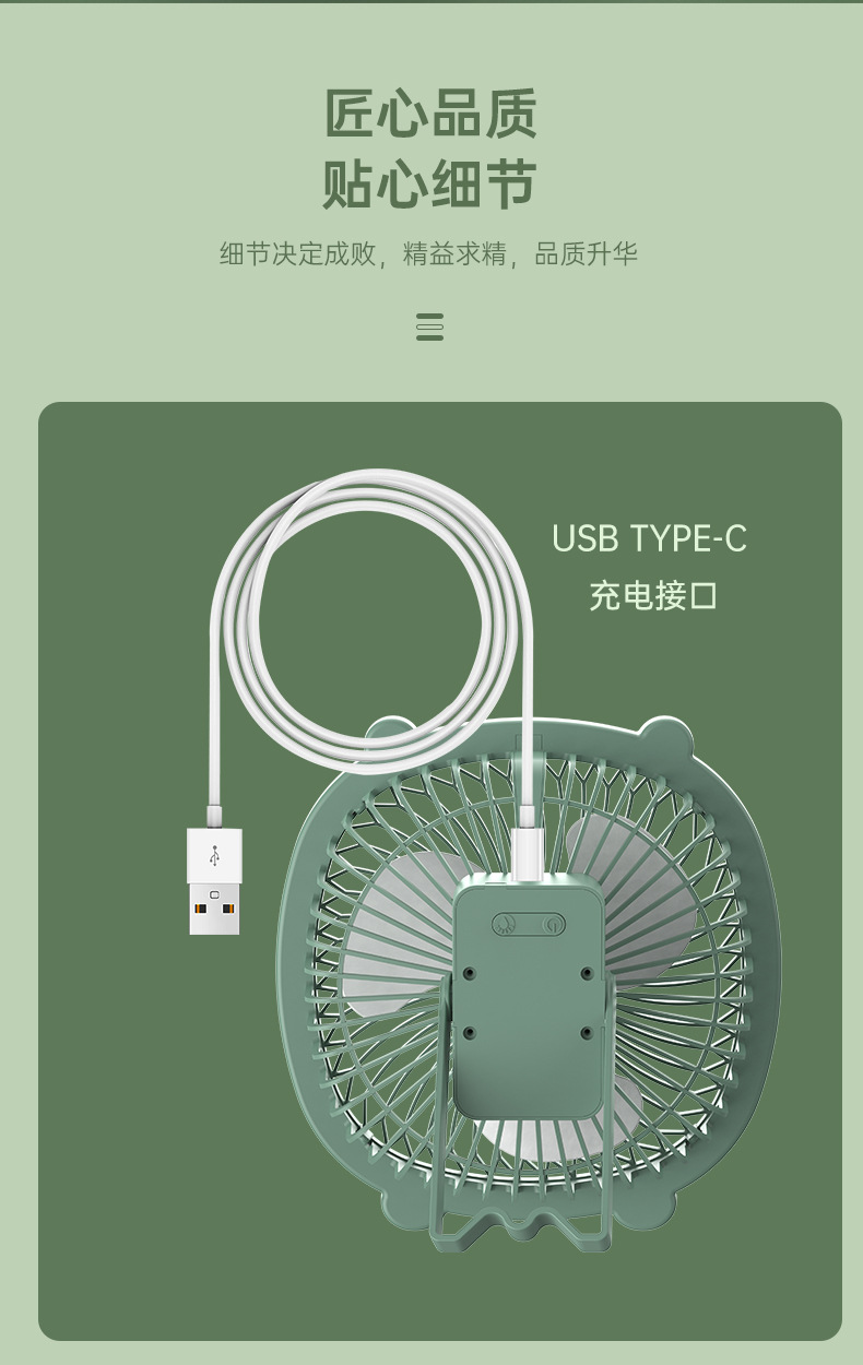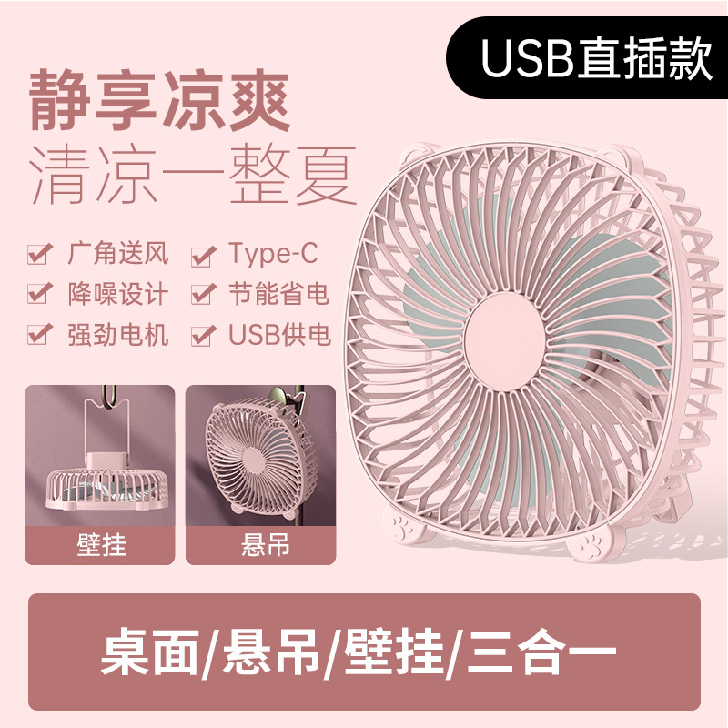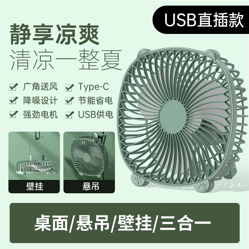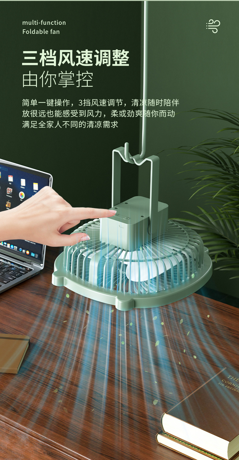 桌面灯光风扇家用USB充电式壁挂电风扇户外便携宿舍大风力循环扇