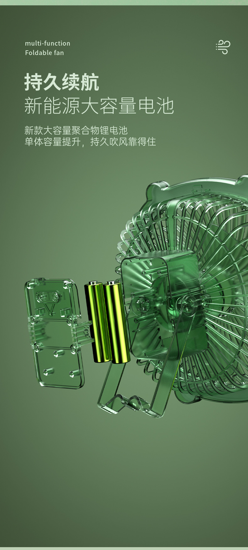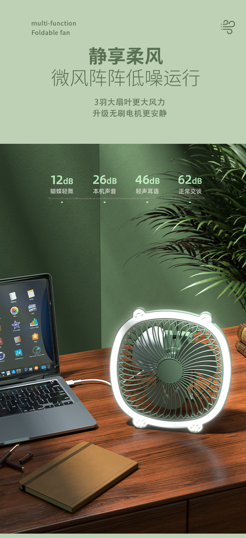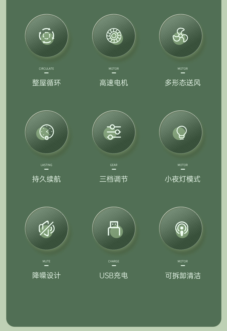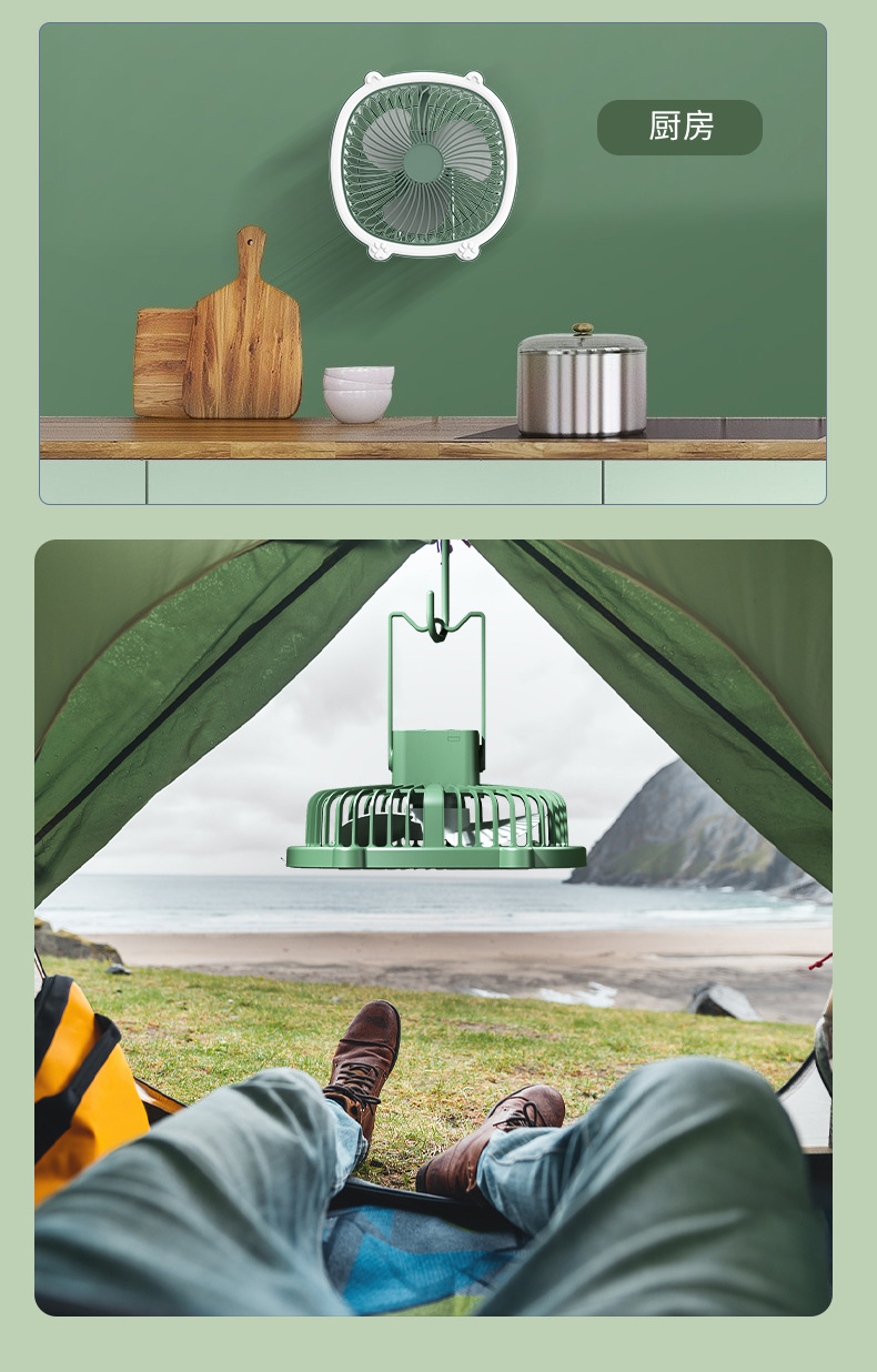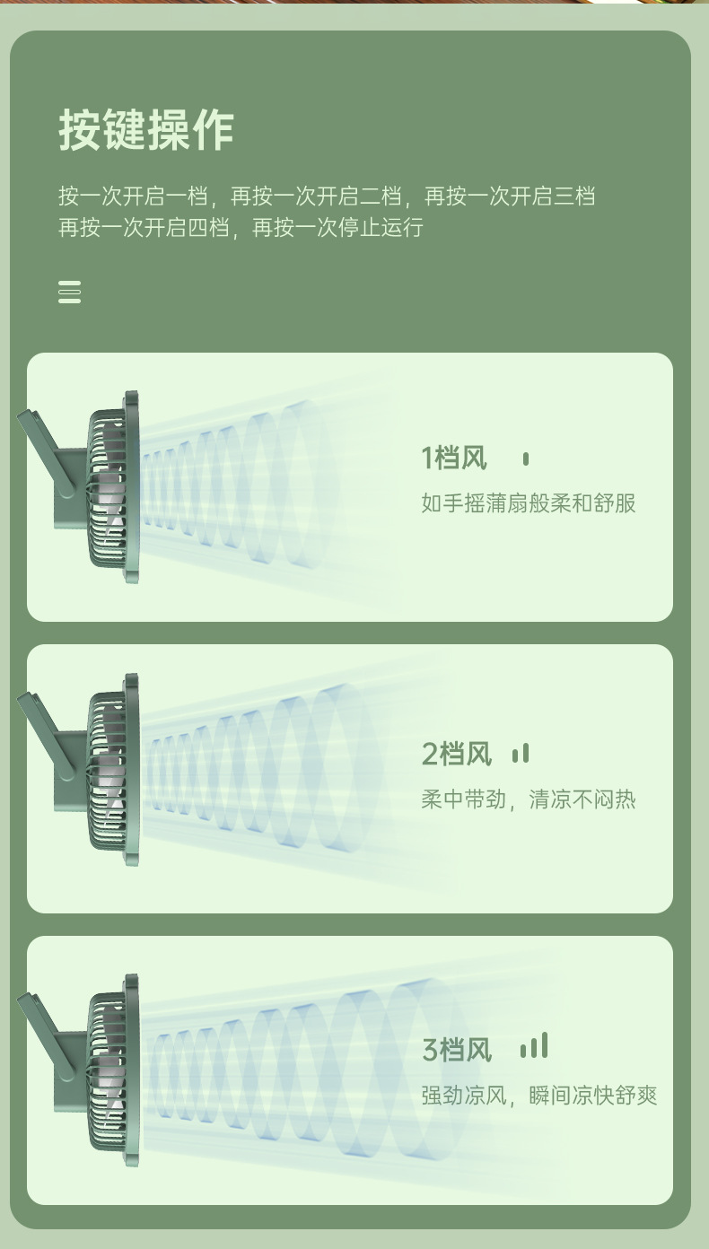 桌面灯光风扇家用USB充电式壁挂电风扇户外便携宿舍大风力循环扇