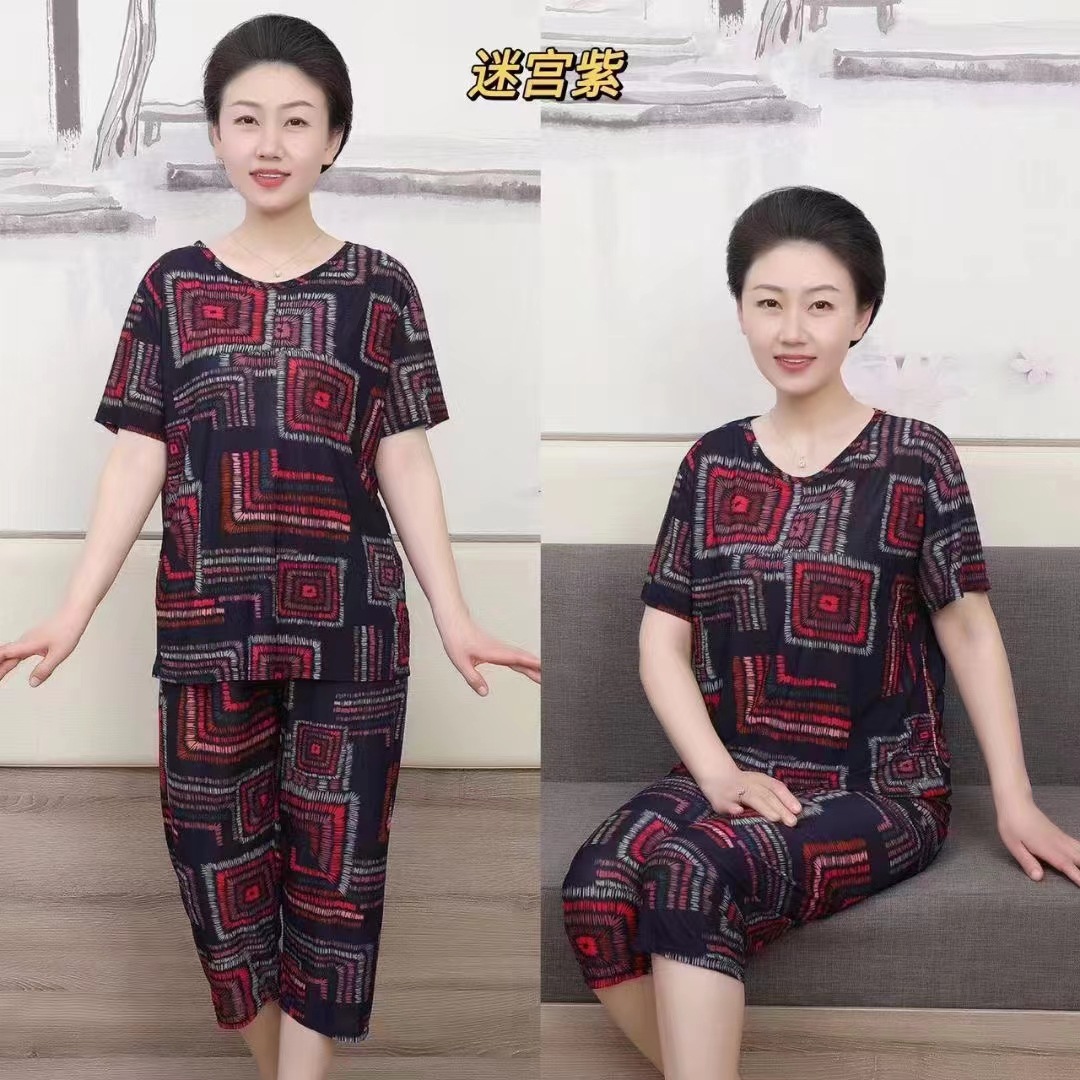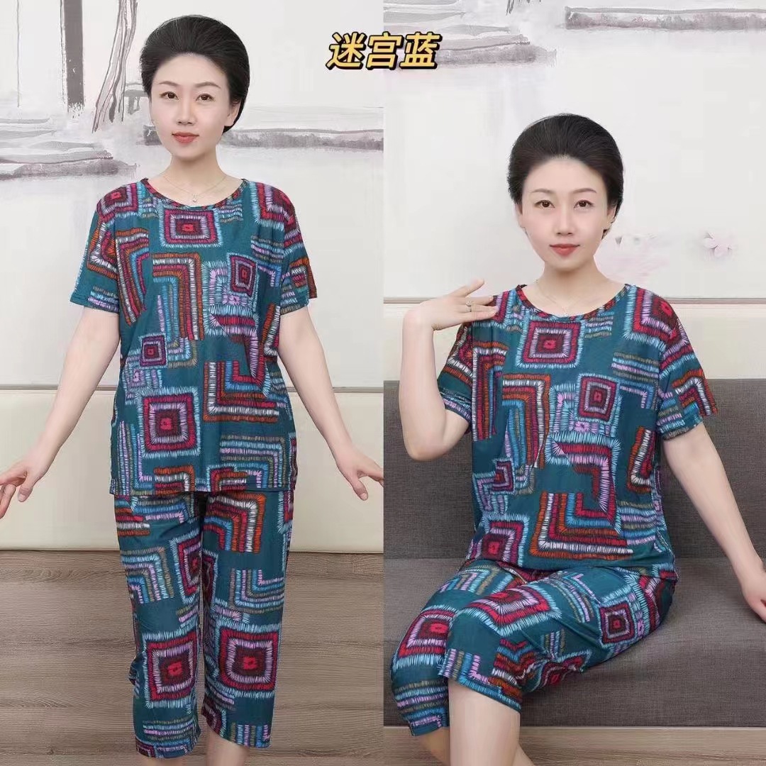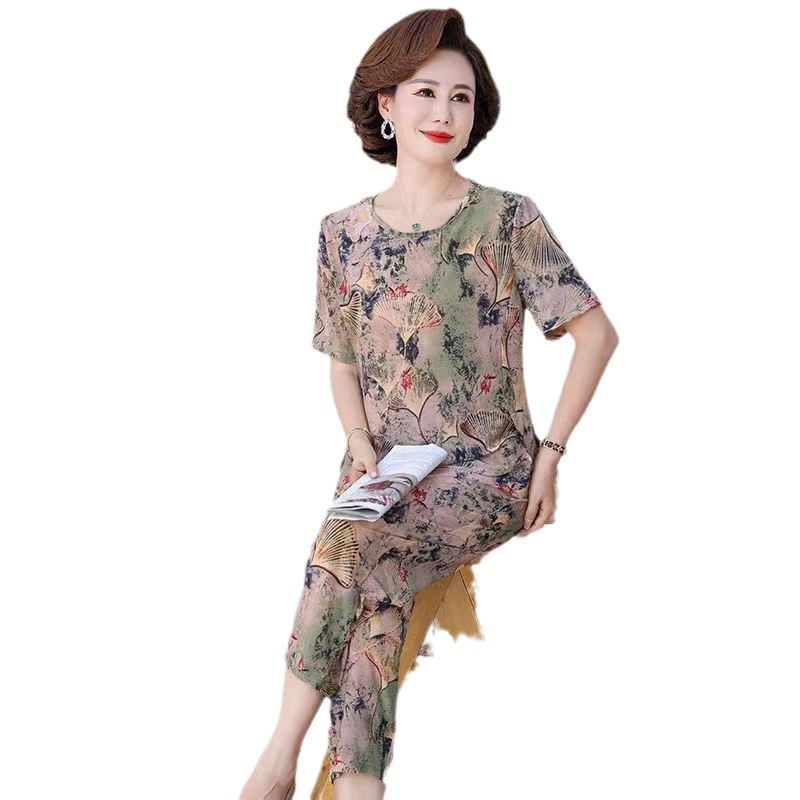 妈妈夏装老年人奶奶套装短袖t恤两件套宽松上衣老太太老人衣服薄