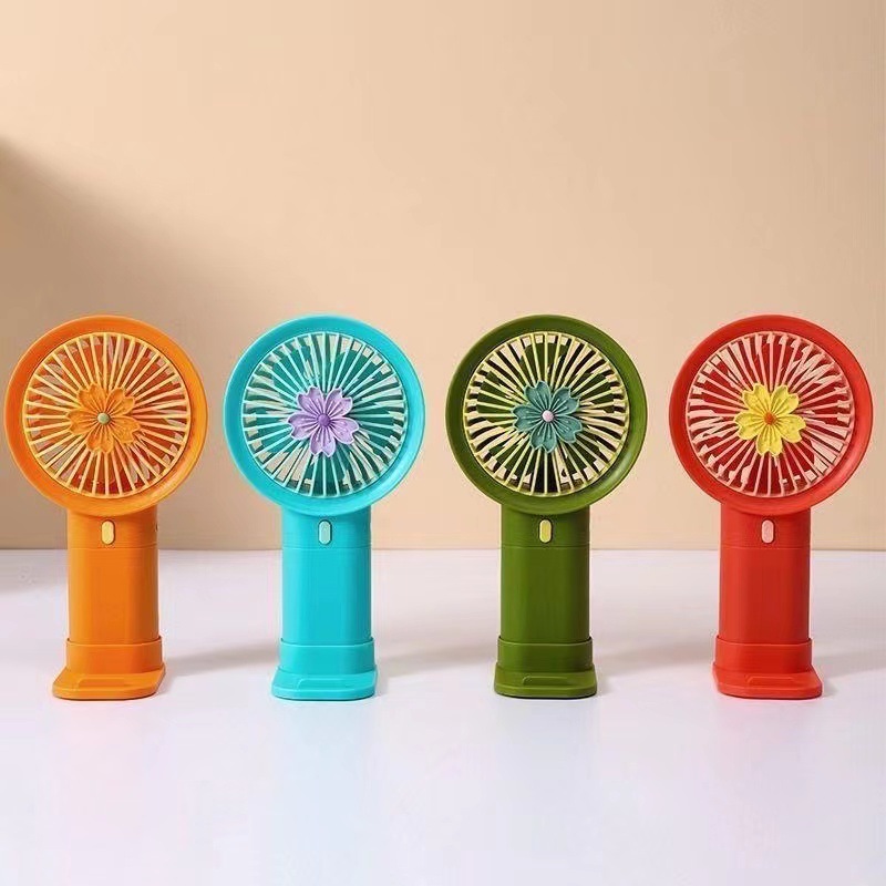 桌面立式小风扇手持便携是风扇充电花朵五叶旅行携带手机支架风扇
