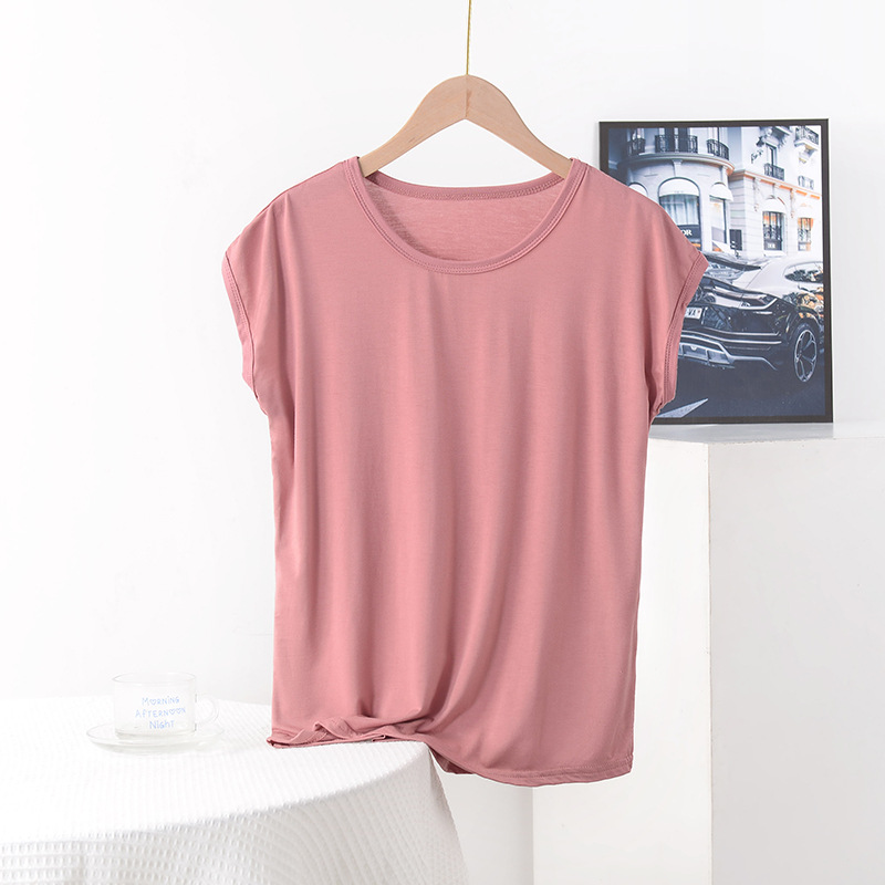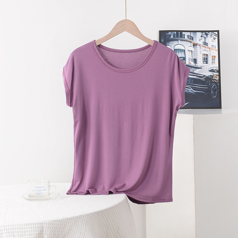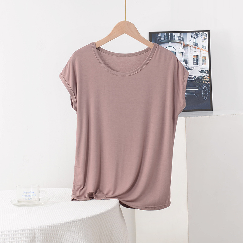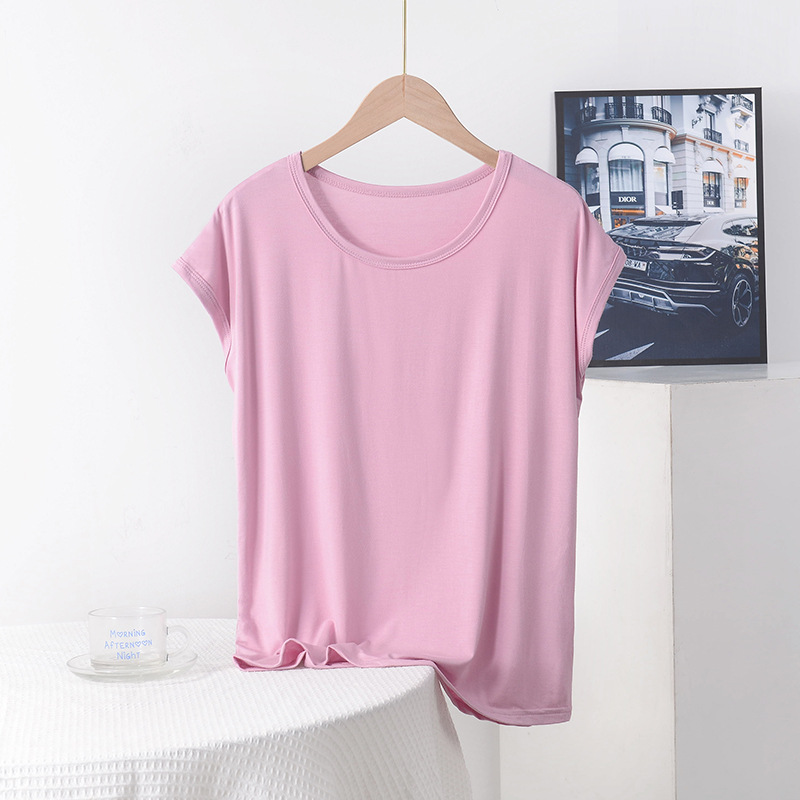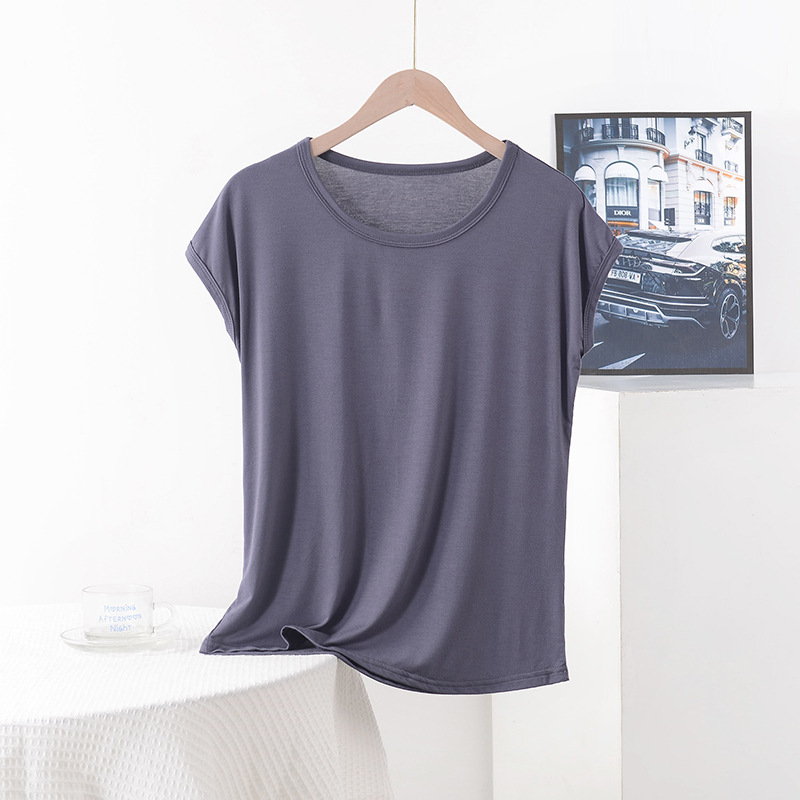 莫代尔短袖t恤女胖妈妈宽松大码打底衫上衣休闲中年妈妈砍袖汗衫
