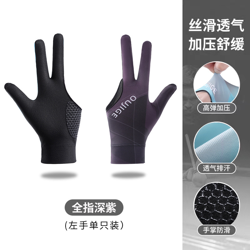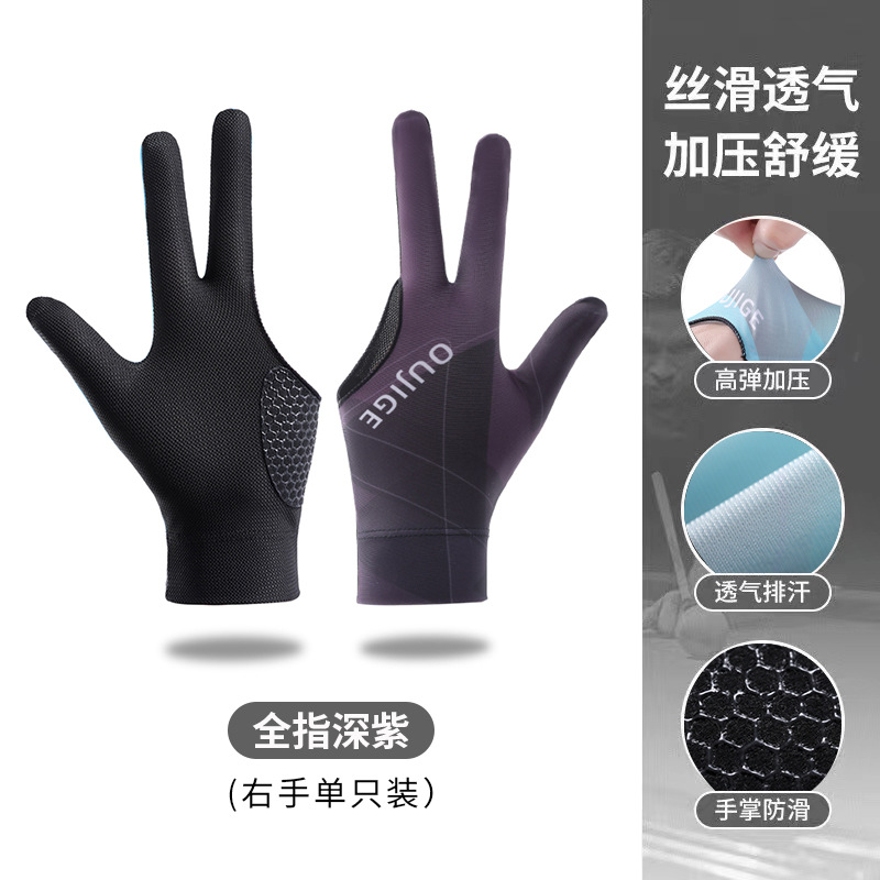 台球手套单只装薄款3指露透气防滑耐磨斯诺克打桌球手套用品男士