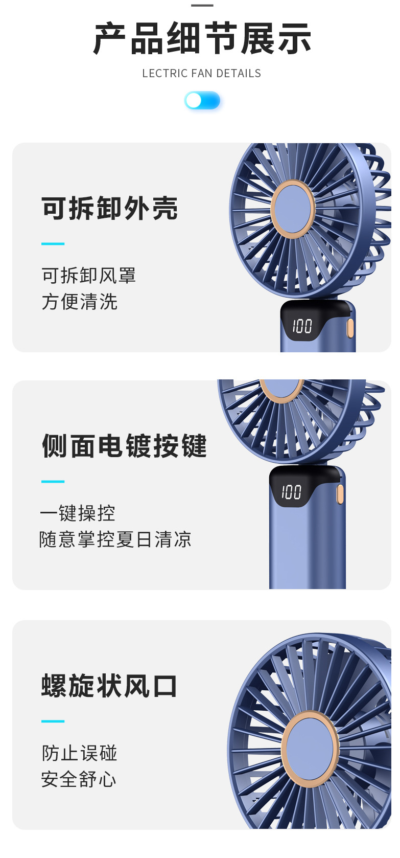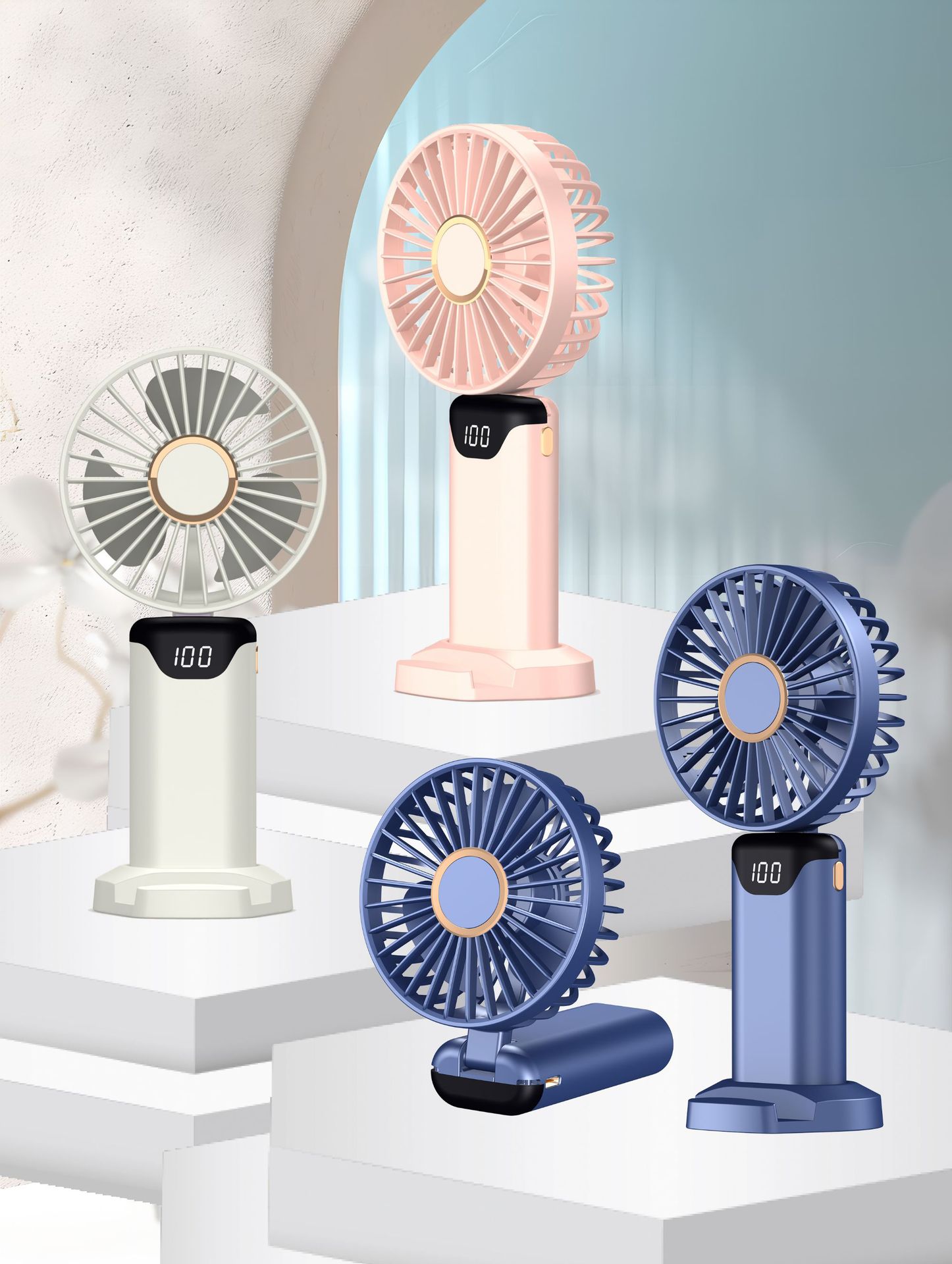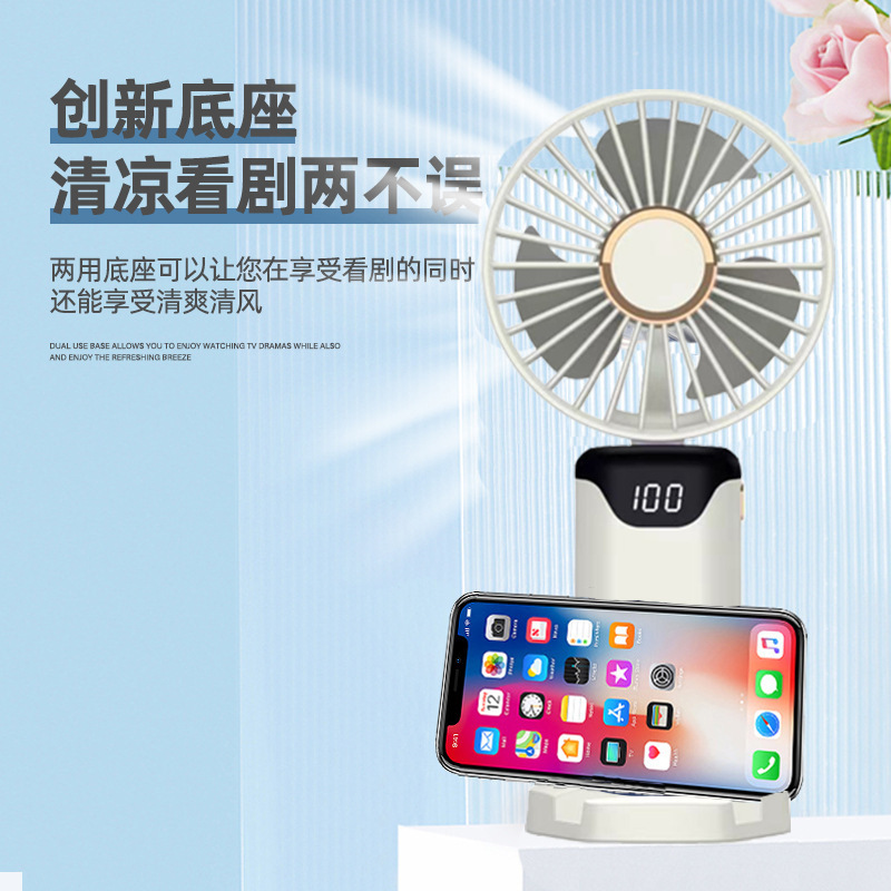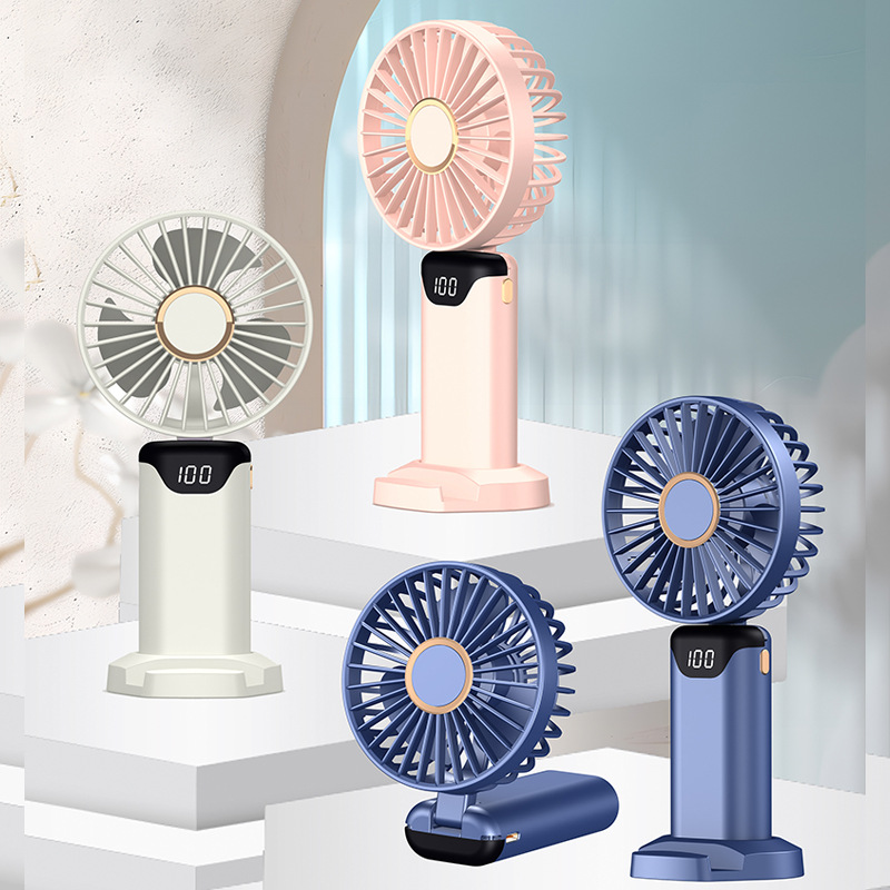手持风扇迷你便携式折叠小风扇数显usb充电桌面小电风扇跨境批发