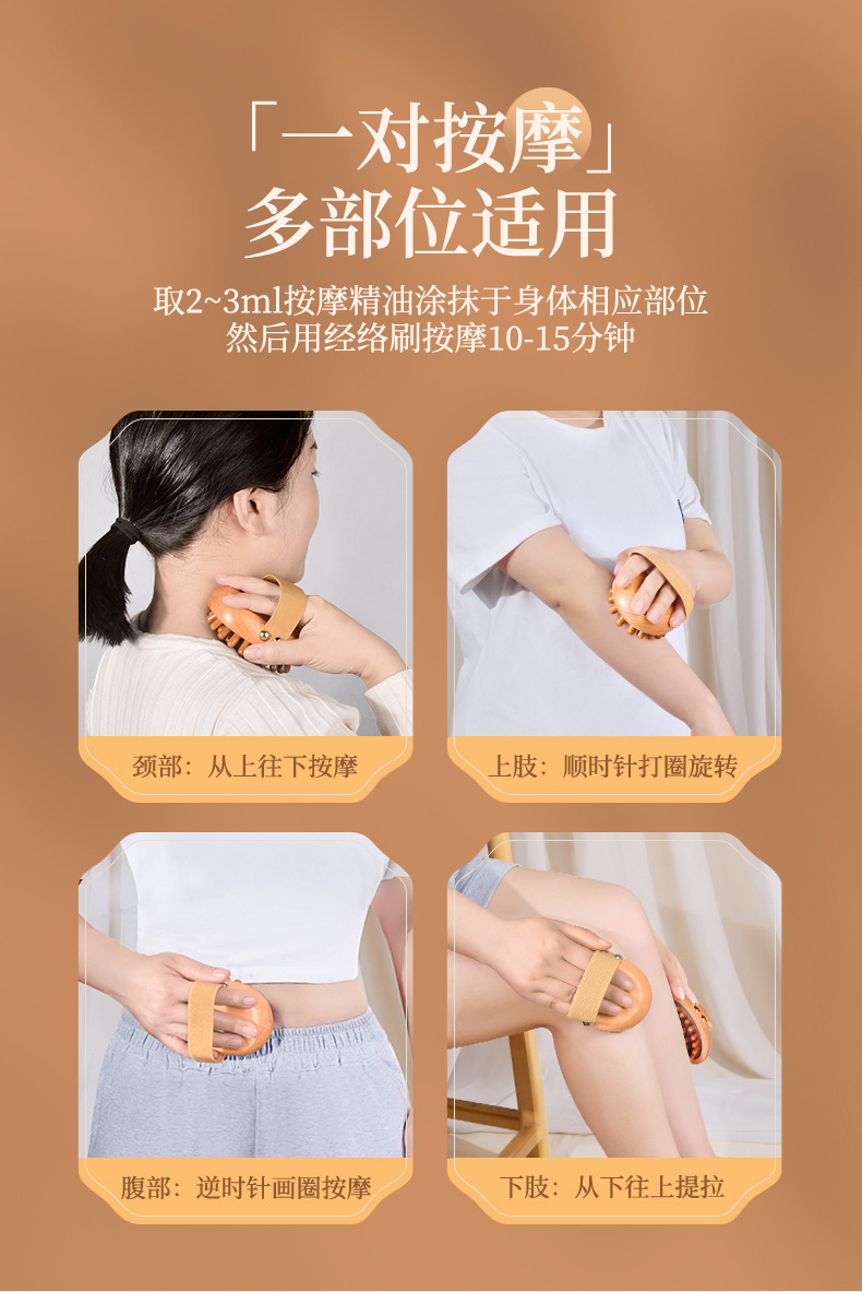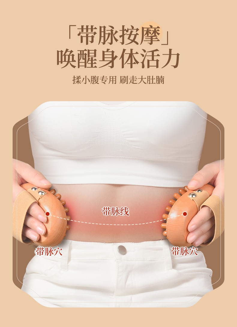 带脉手持经络刷按摩刷 榉木气囊美体刷揉腹部刷腿身体刷