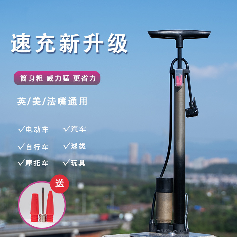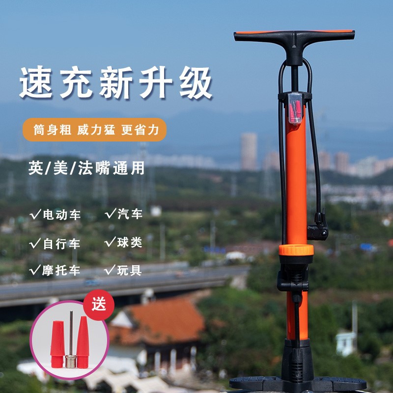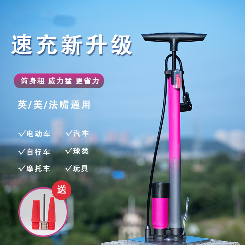 渐变色自行车打气筒电动电瓶车家用高压充气泵便携式篮球加气管子