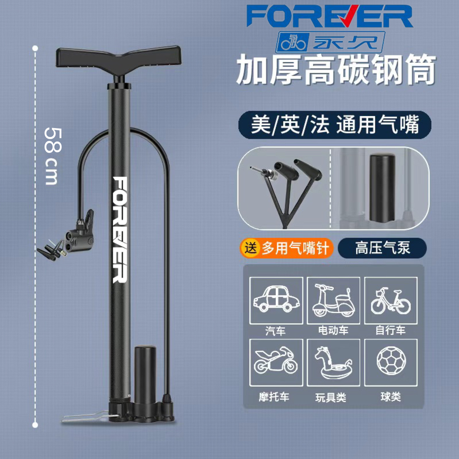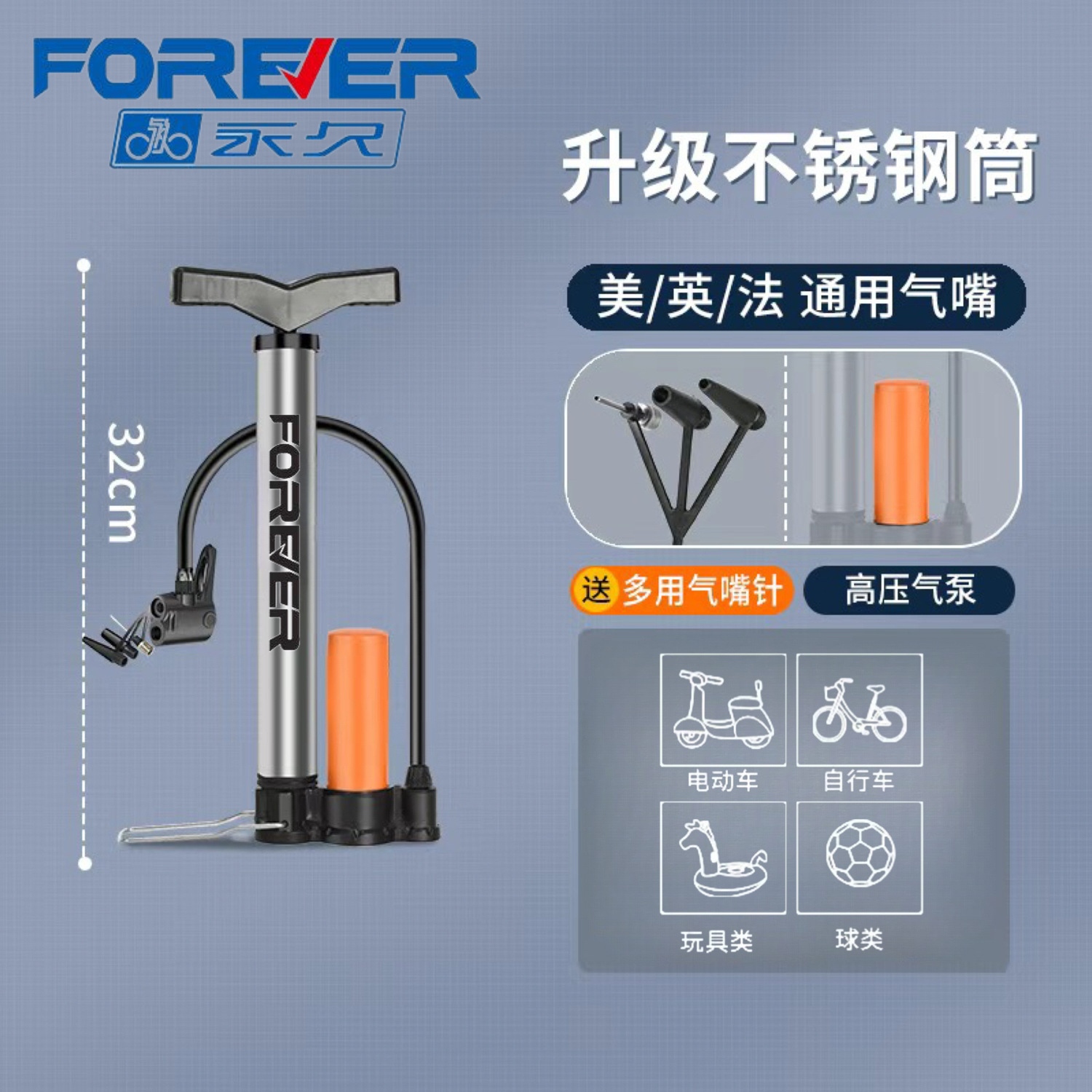 永久自行车打气筒高压电动车家用便携式打气筒篮球通用充气筒气管