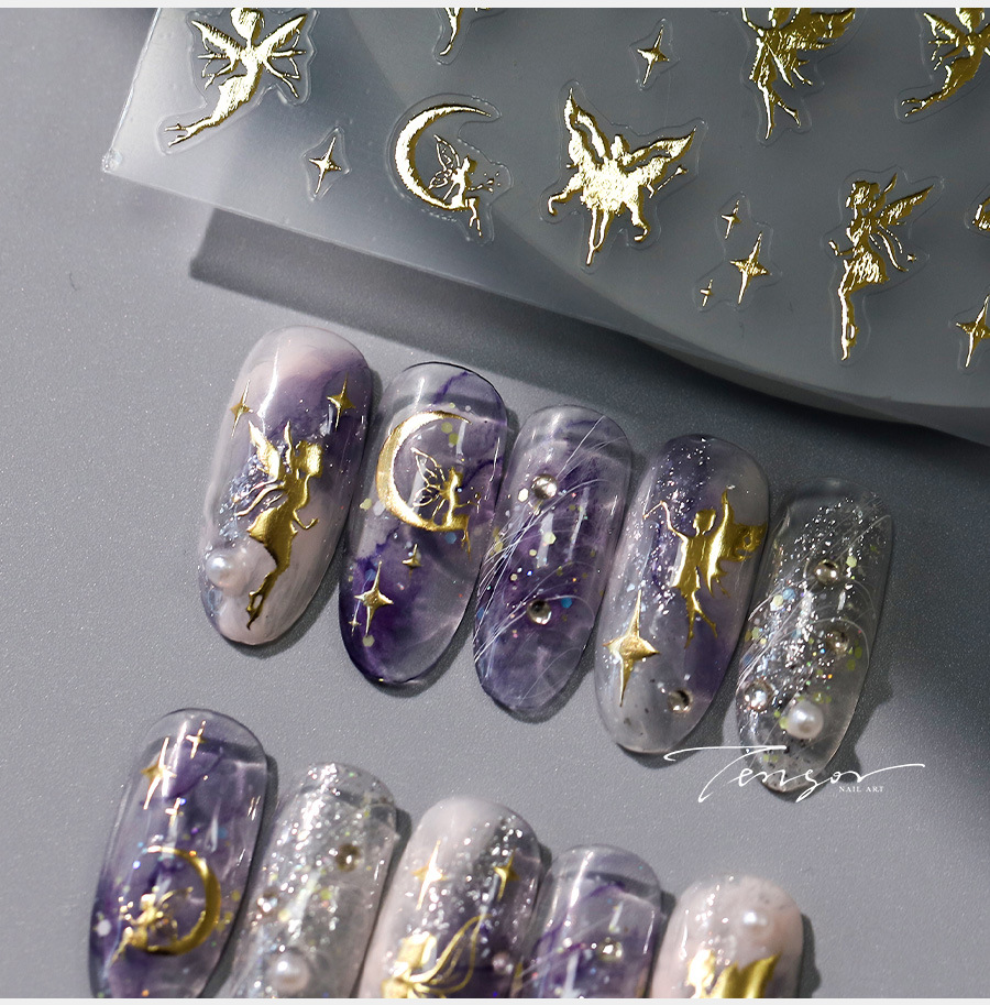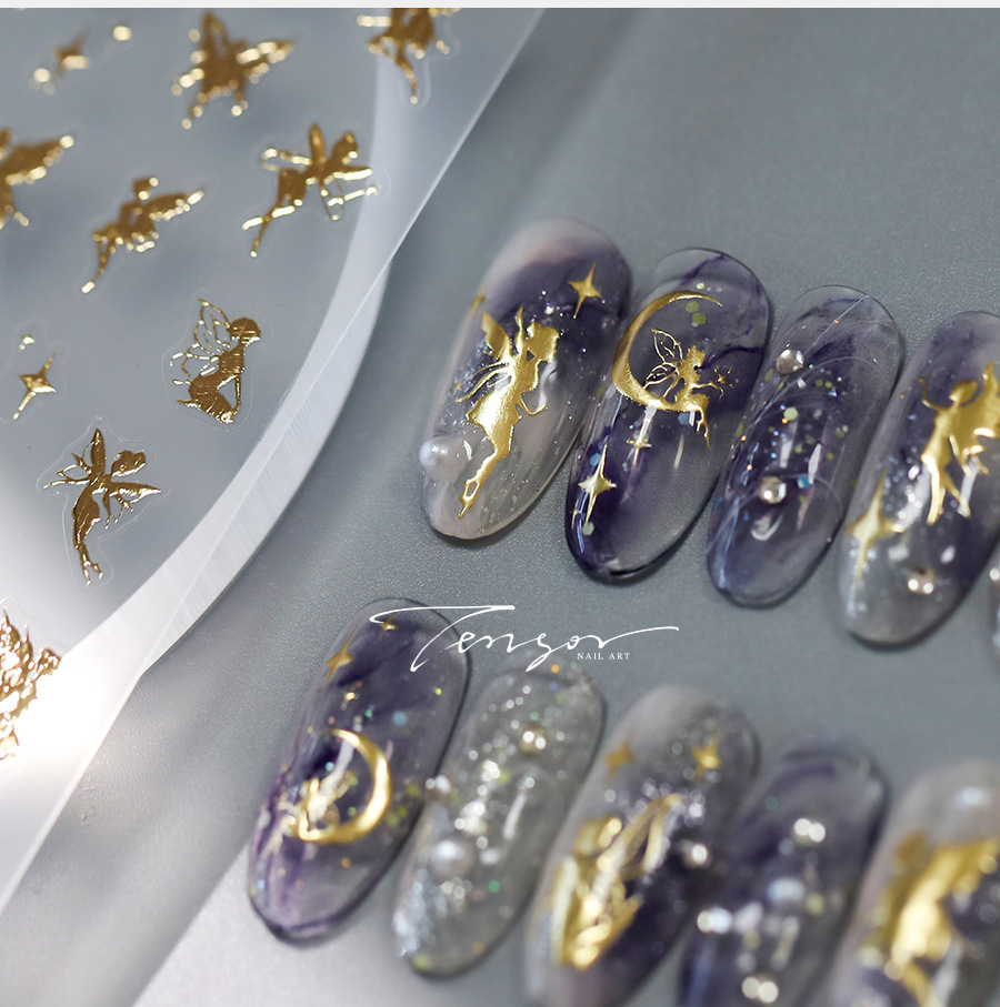 烫金新款美甲贴纸背胶美甲纸立体仙女烫金系列