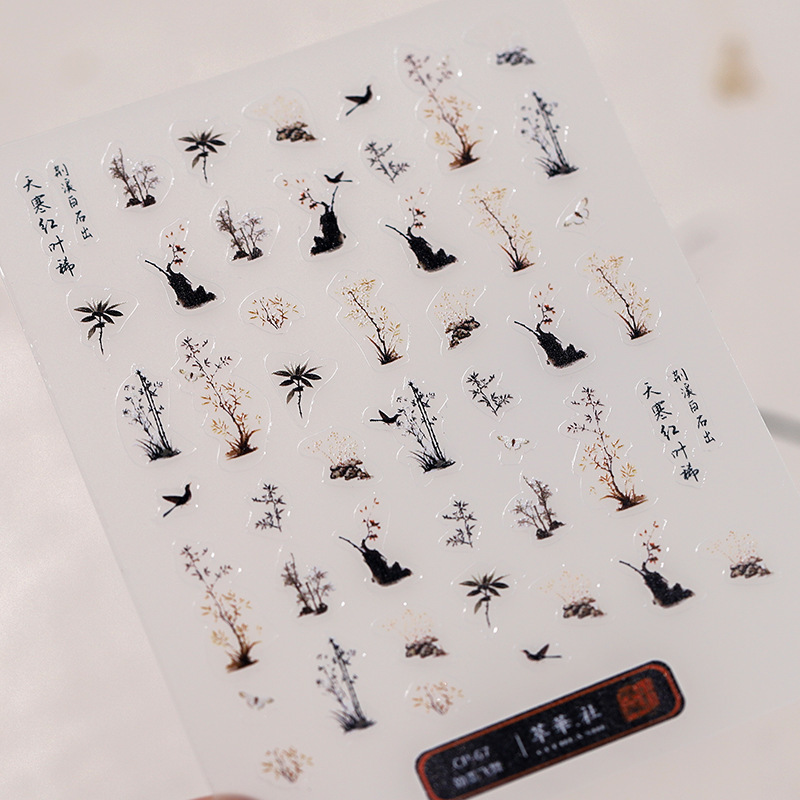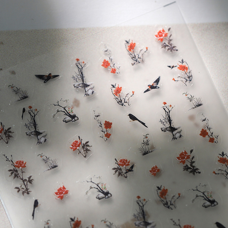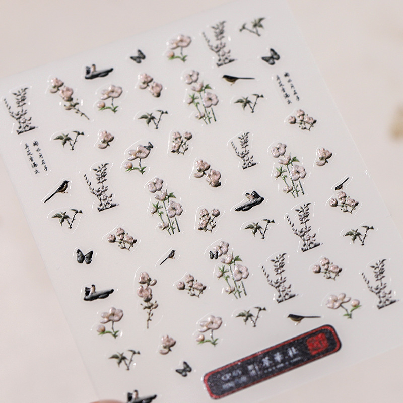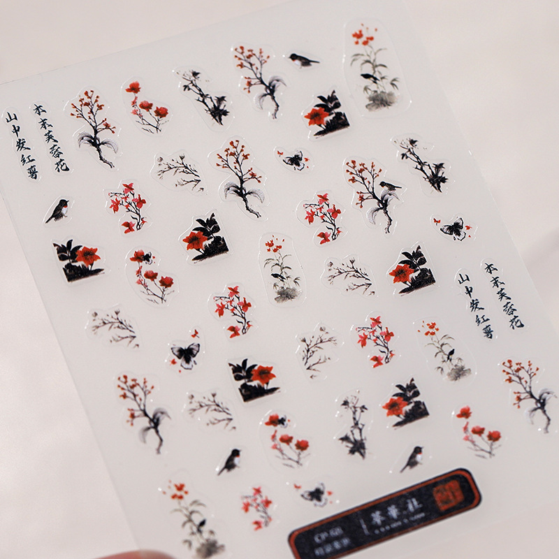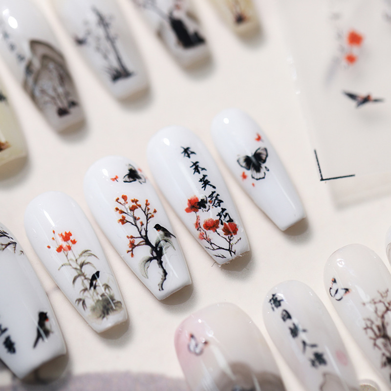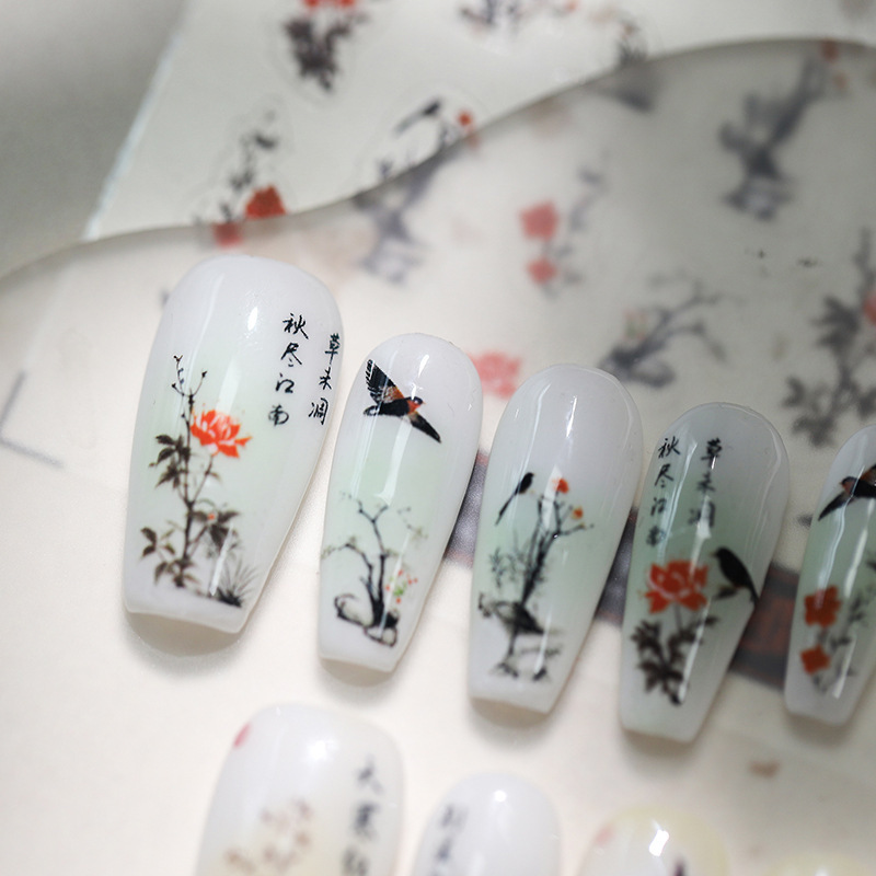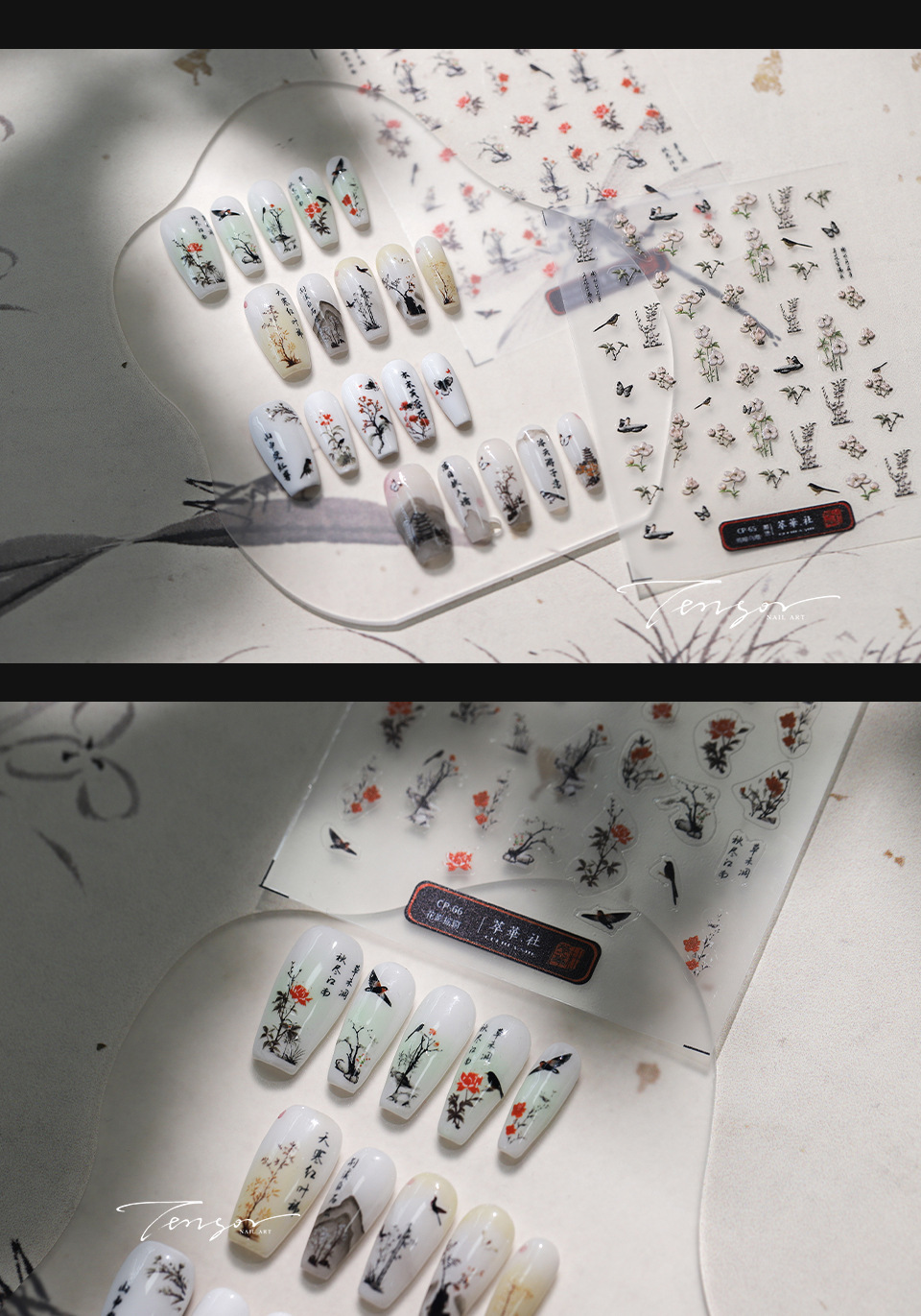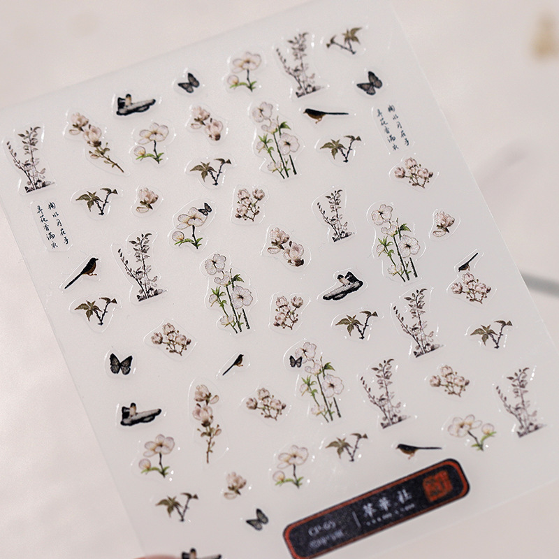 国风淡雅花朵薄韧指甲贴背胶美甲贴联名系列