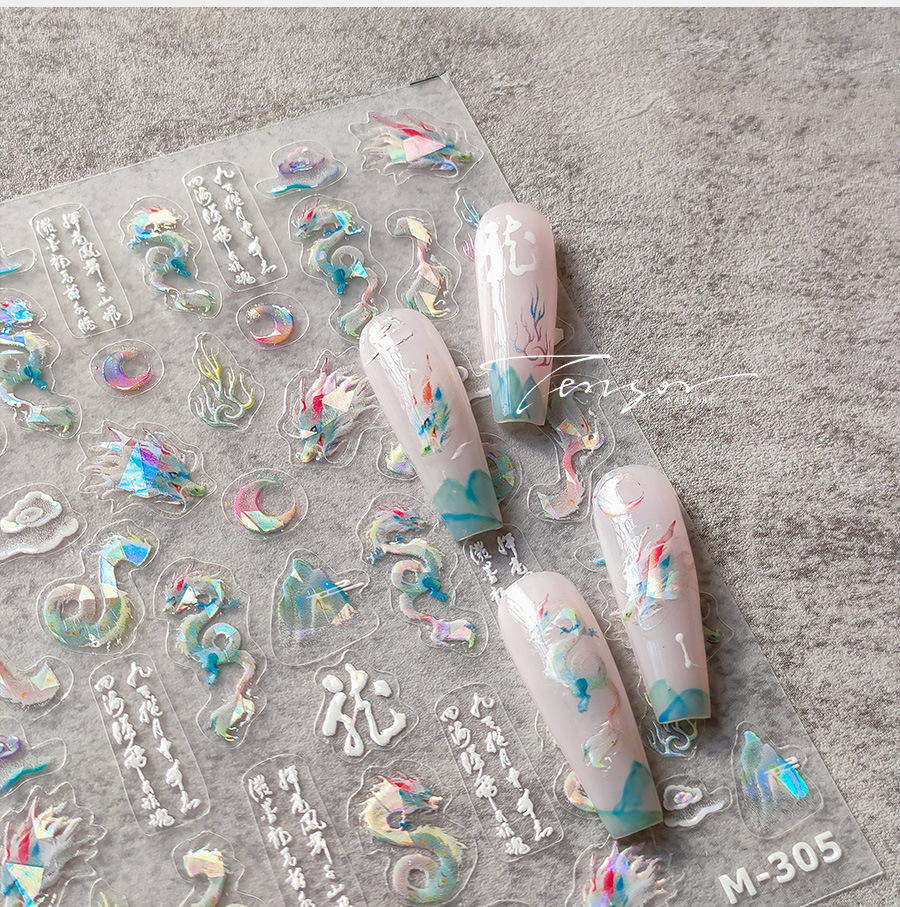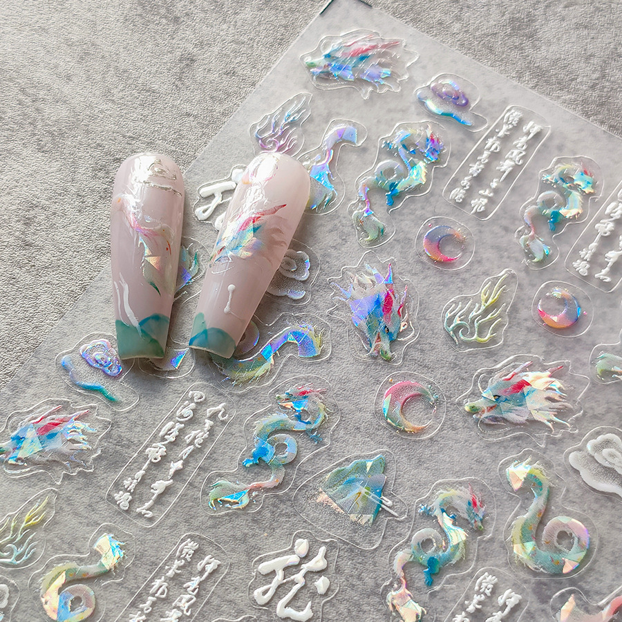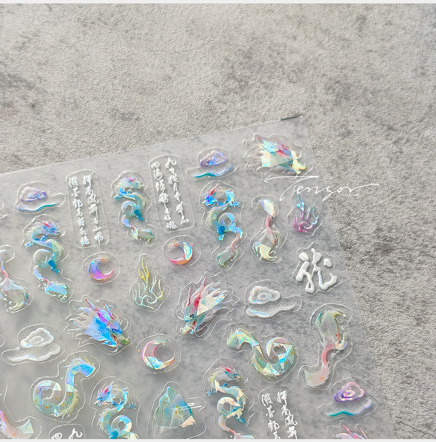 立体5d龙款薄韧美甲贴纸背胶指甲贴纸饰品