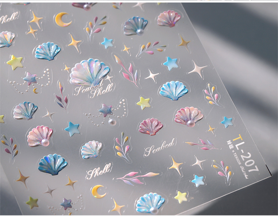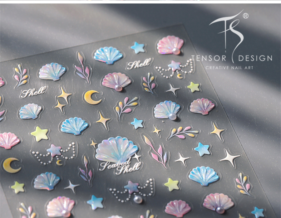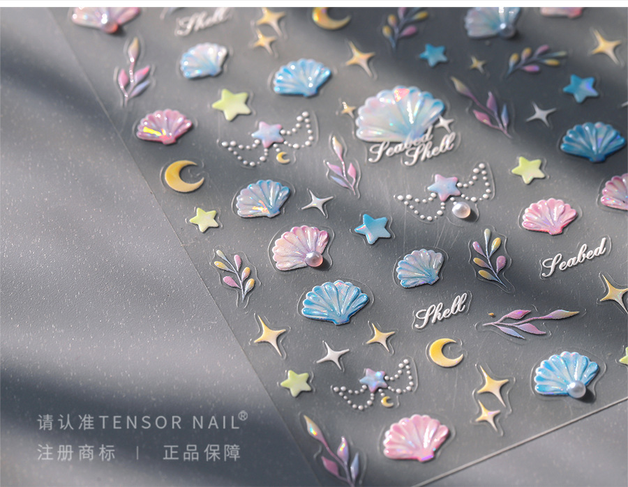 海边贝壳磨砂ins美甲贴纸背胶美甲贴烫金系列