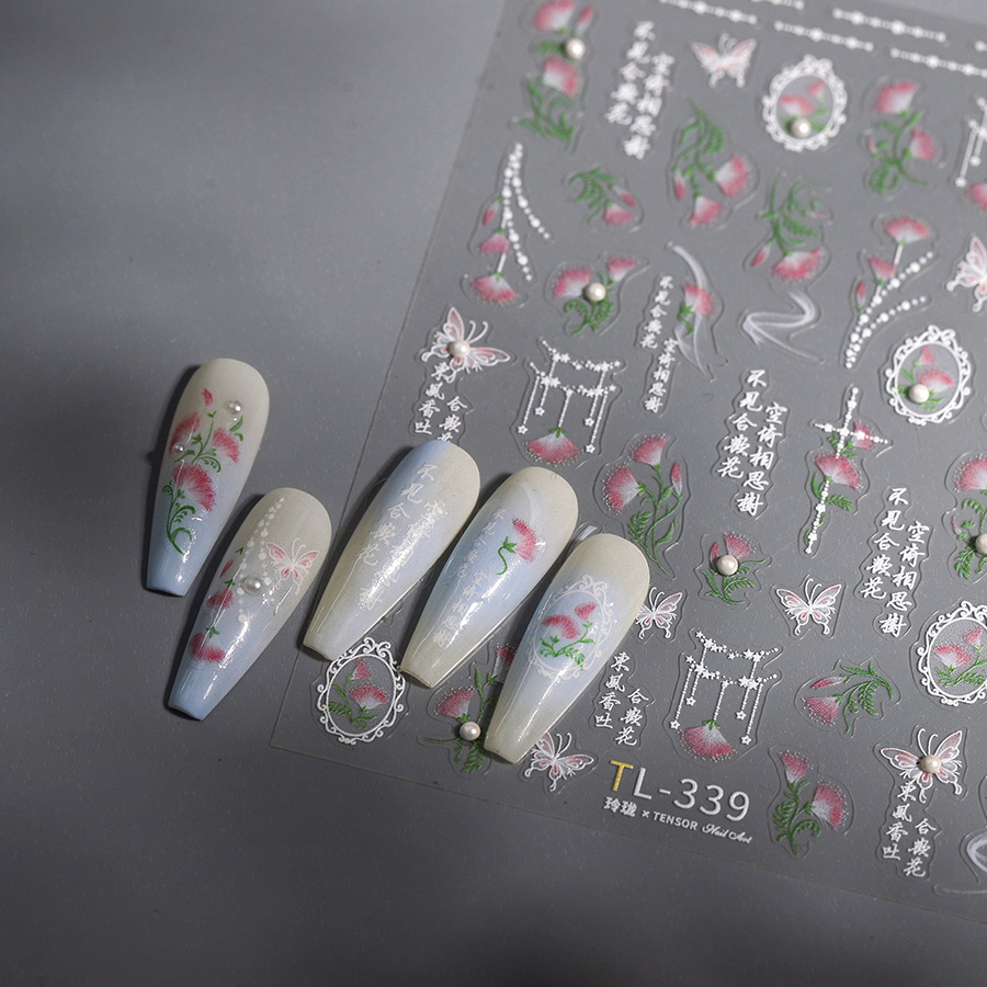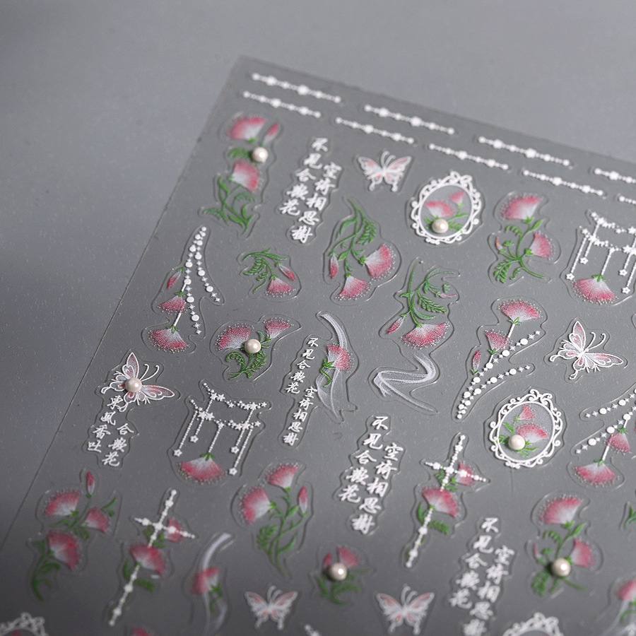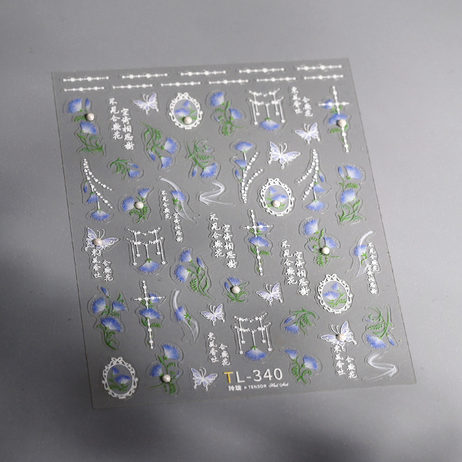 铁素新工艺玻璃碎环保浮雕玲珑点珍珠ins款爆款美甲贴纸