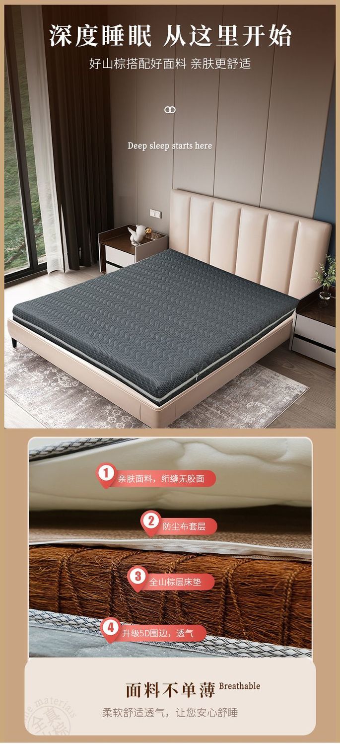 全山棕床垫天然环保老式可定制手工折叠老人儿童偏硬护脊硬椰棕垫