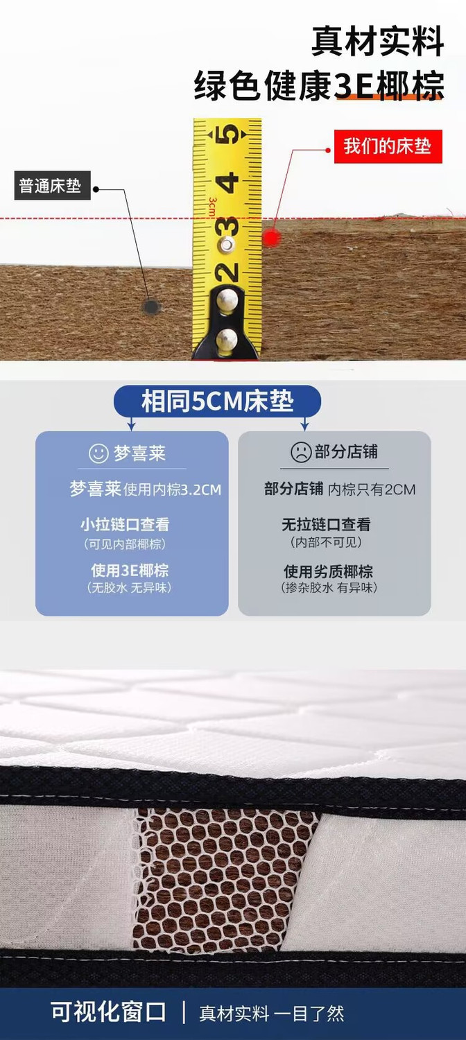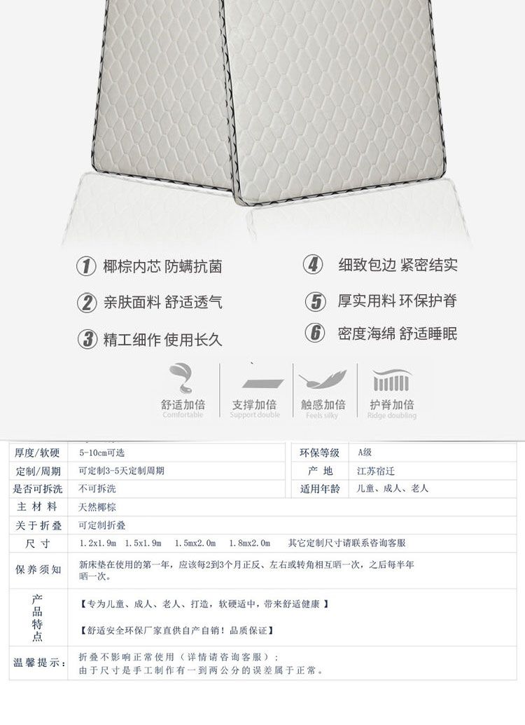 环保椰棕床垫双人棕垫1.8m偏硬1.5m加厚棕榈经济定做0.9m折叠床垫