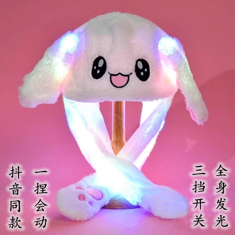 抖音耳朵会动的网红兔耳朵帽子小朋友玩具女孩子发光可爱帽子批发