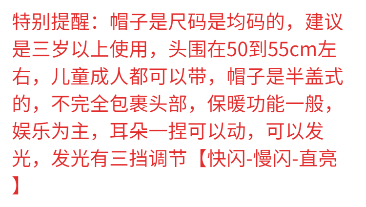 | thickened-rabbit hat white【 ears moving non-luminous]](加厚款-兔帽白色【耳朵会动不发光】) | USD $4.22 | 999999 piece available |