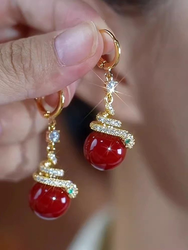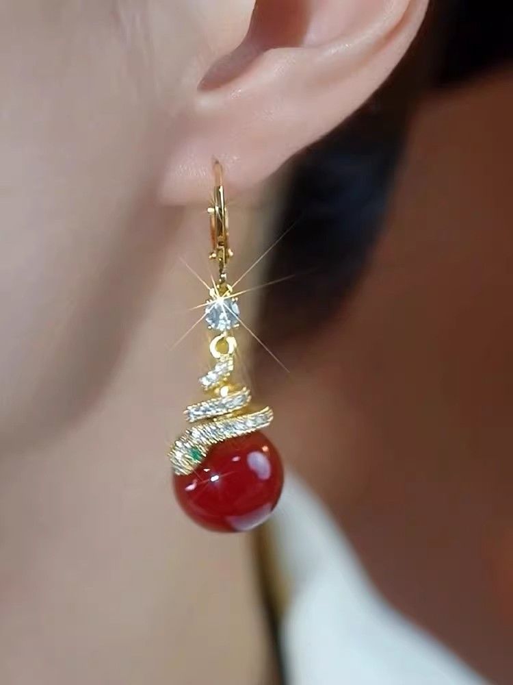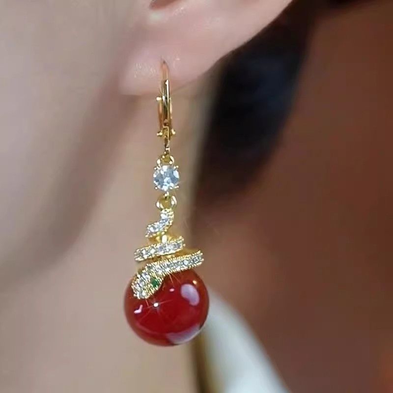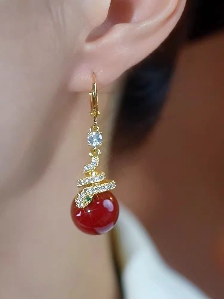 缠绕蛇形微镶红珠耳扣2025年新款本命年轻奢耳坠小众设计感耳饰女