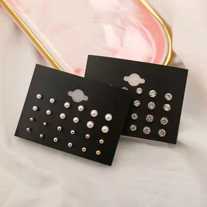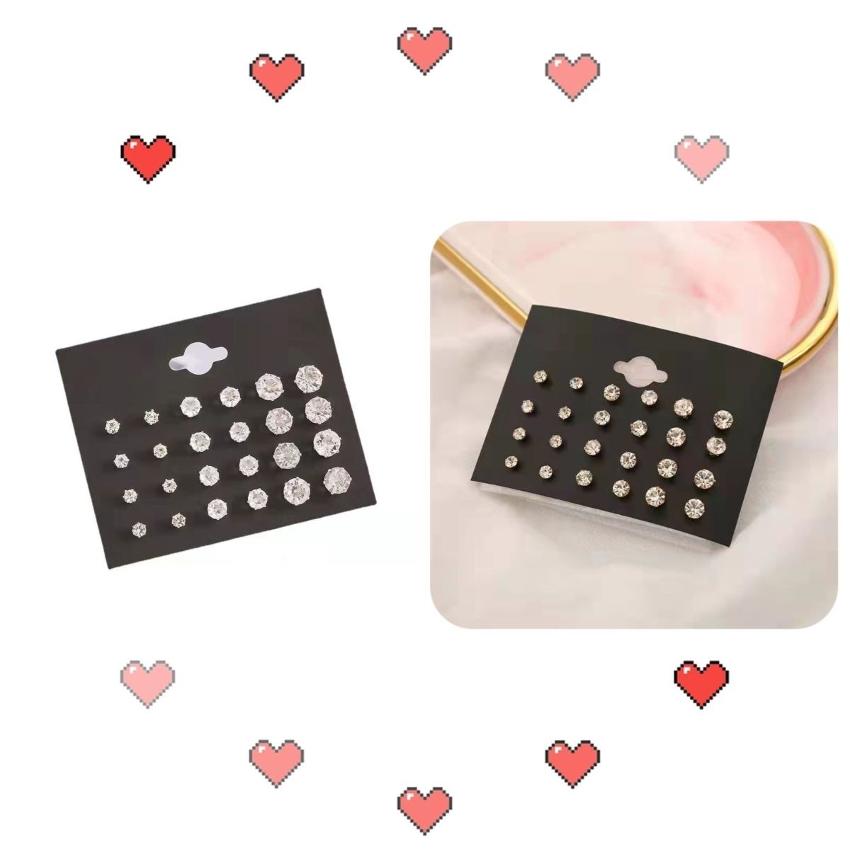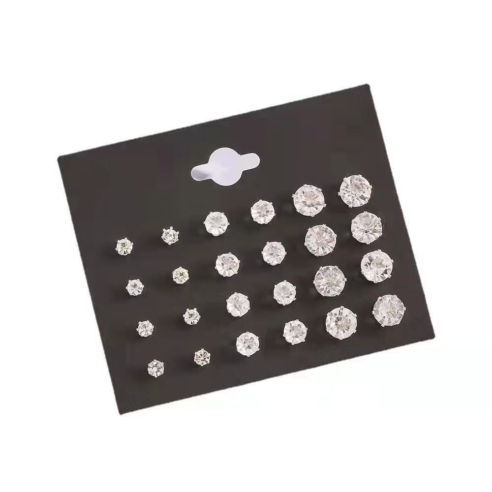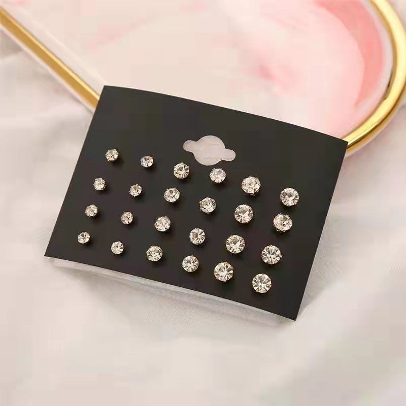 仿锆石耳钉闪钻爆闪耳钉一整套12对耳钉时尚高颜值洋气耳钉套装