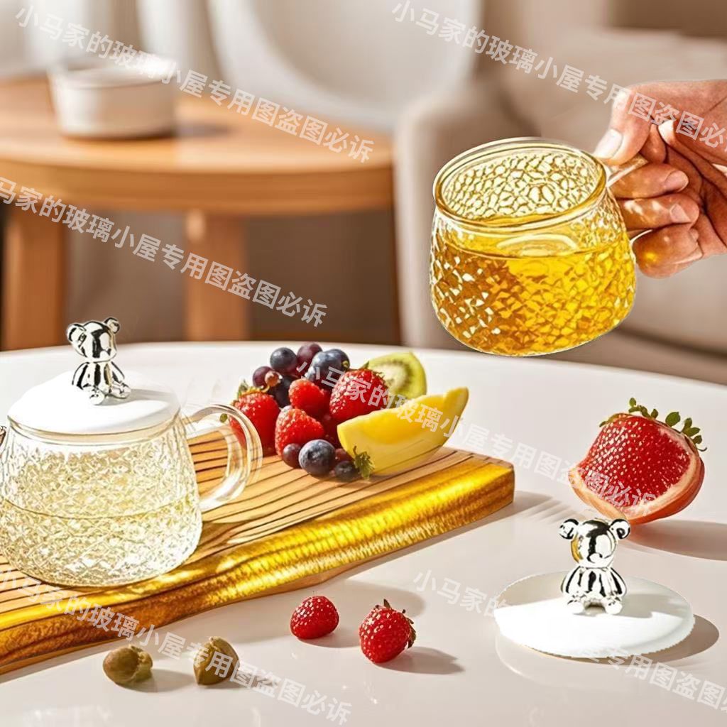【两只】小熊杯子ins高颜值茶杯简约早餐玻璃杯带盖可爱马克杯