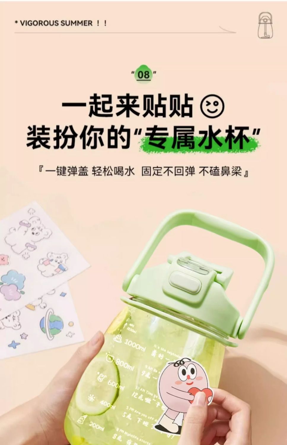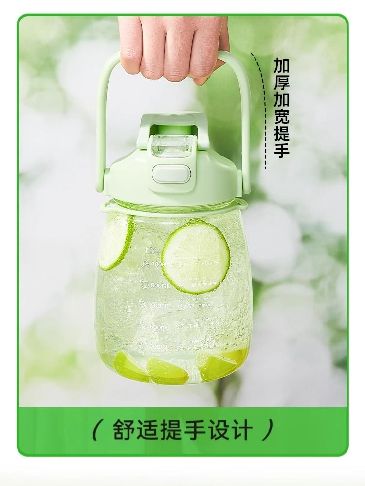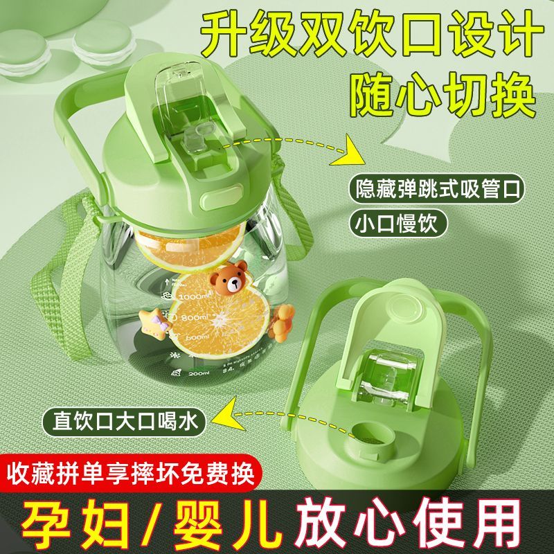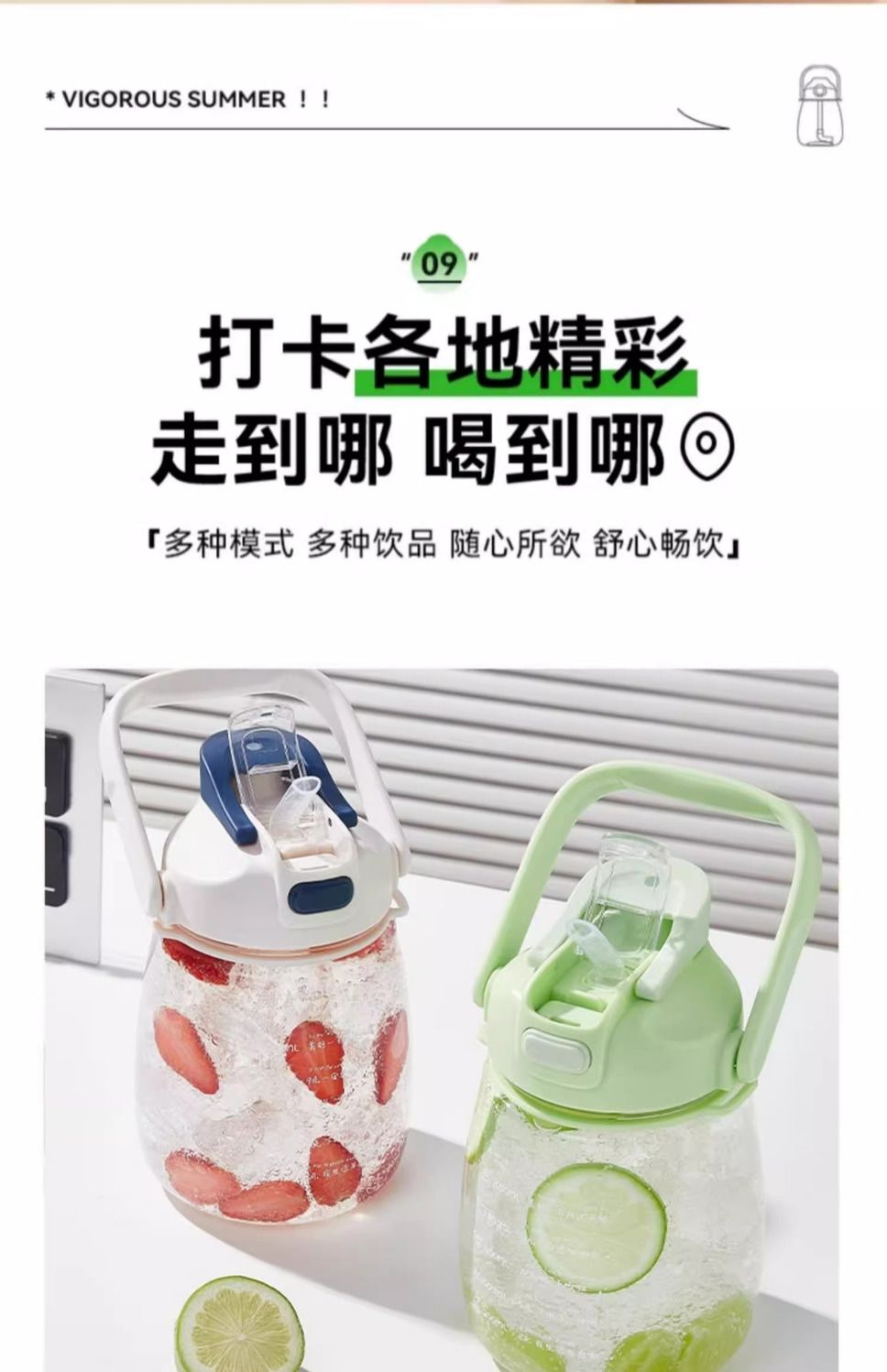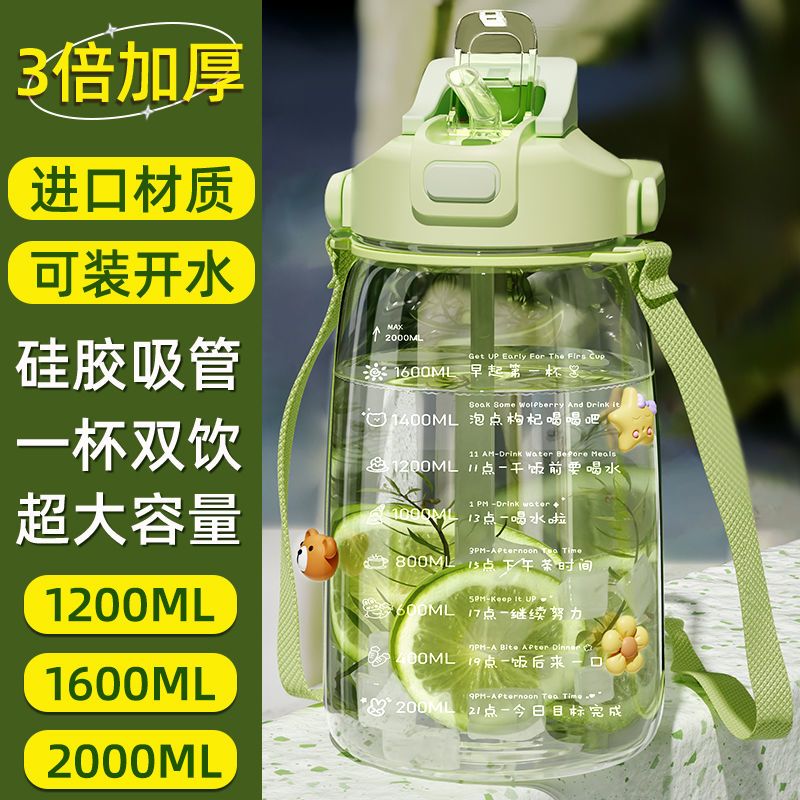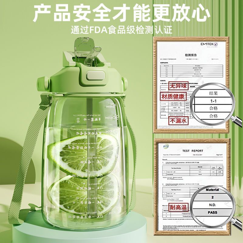 新款夏季2000大肚杯吸管水杯大容量儿童学生水杯女健身运动水壶男