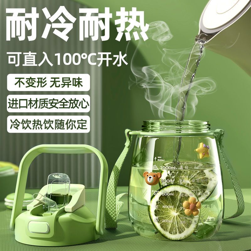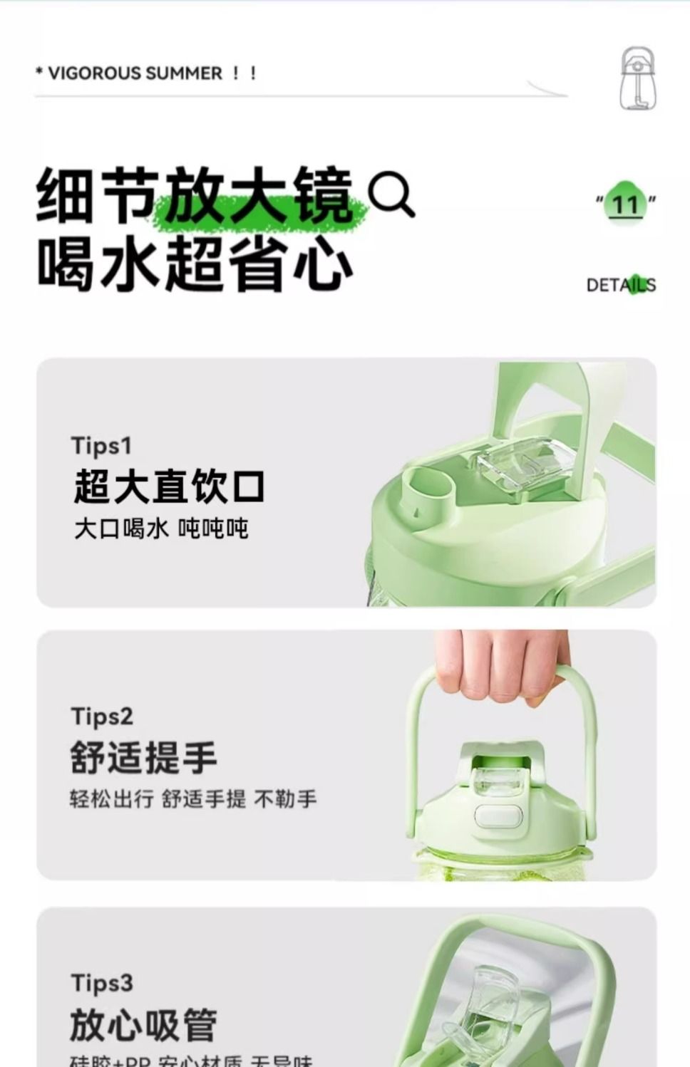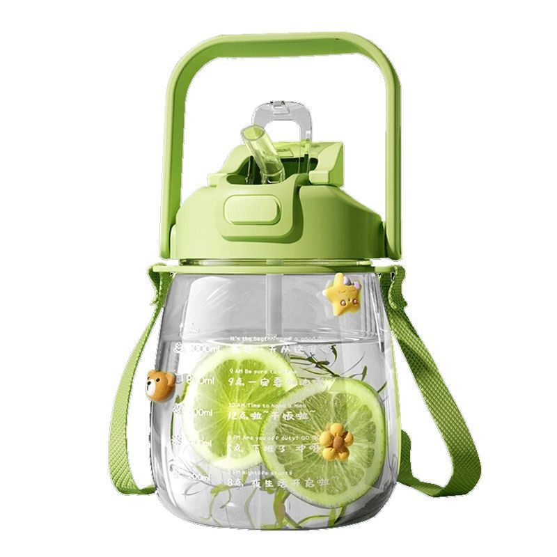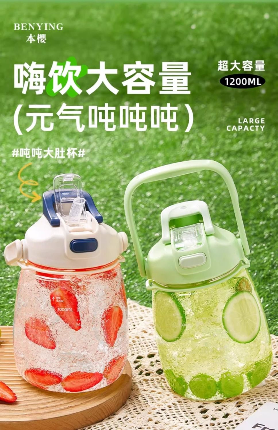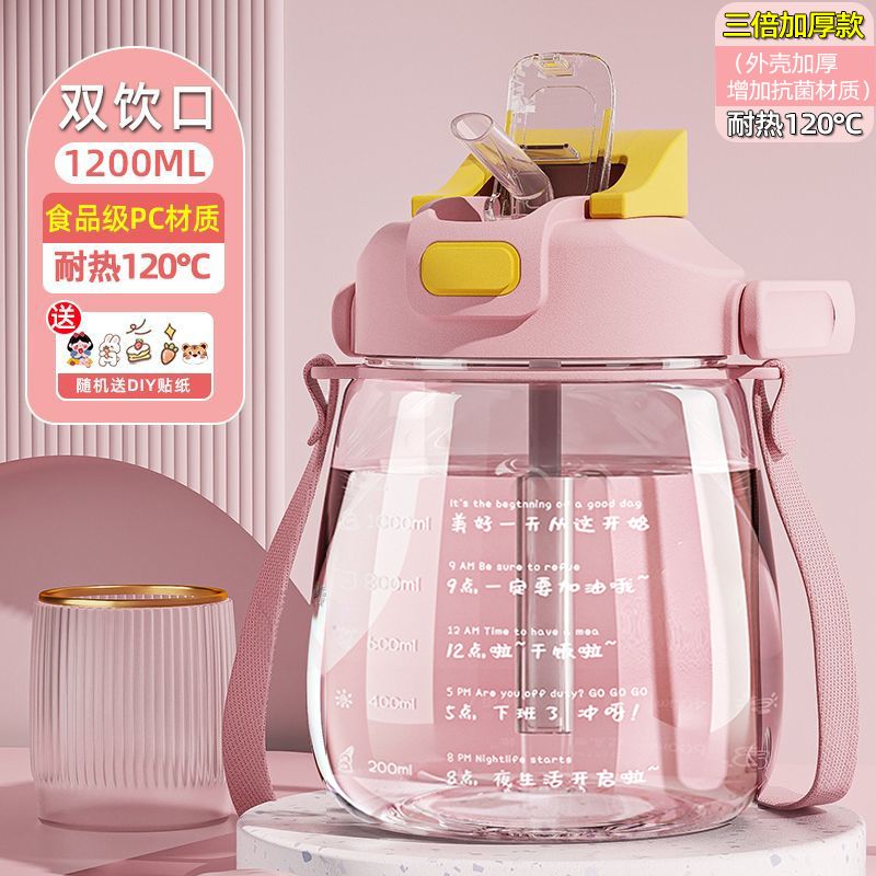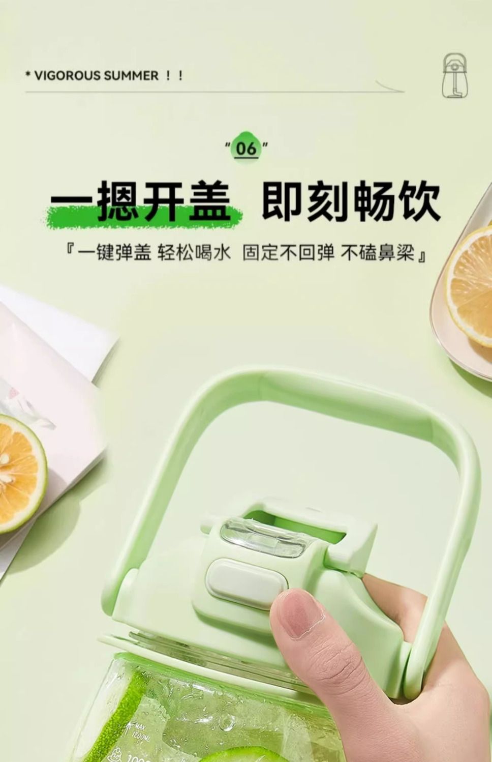 新款夏季2000大肚杯吸管水杯大容量儿童学生水杯女健身运动水壶男
