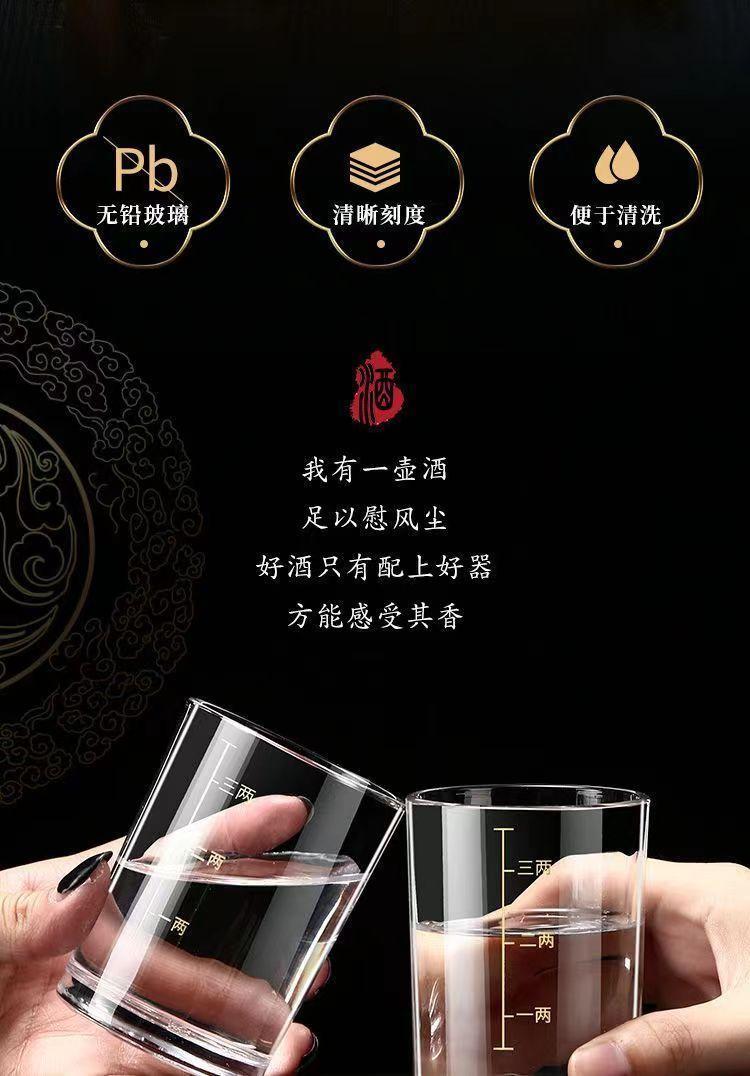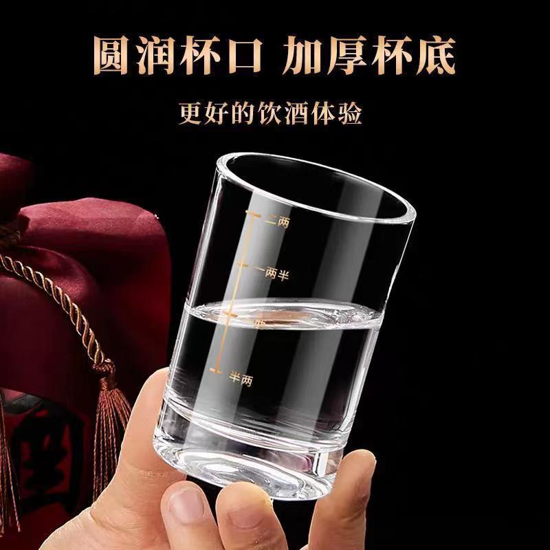 二两白酒杯带刻度家用套装高颜值酒具2两小品酒杯一口杯子玻璃杯