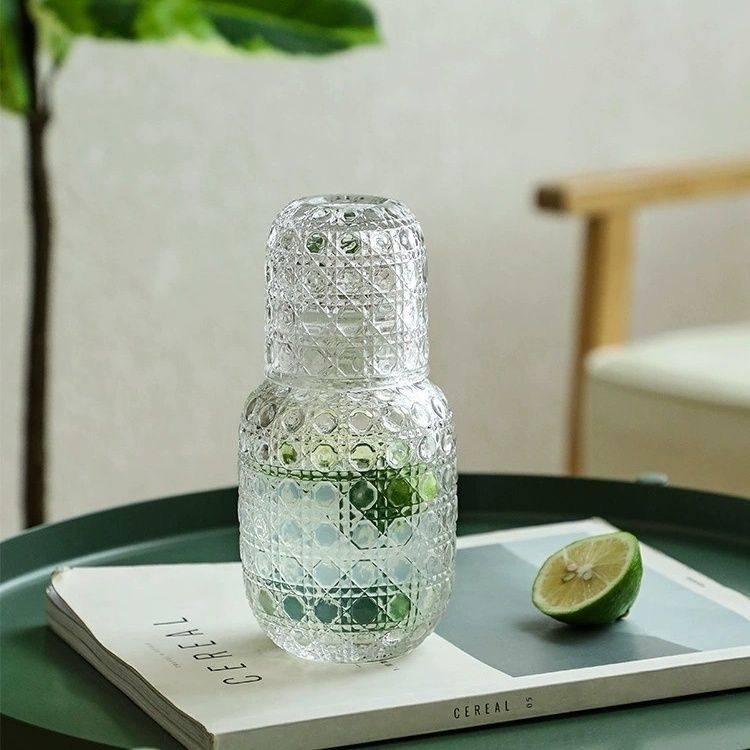 玻璃水杯一壶一杯套装果汁饮料牛奶早餐复古透明浮雕宝石格纹杯子