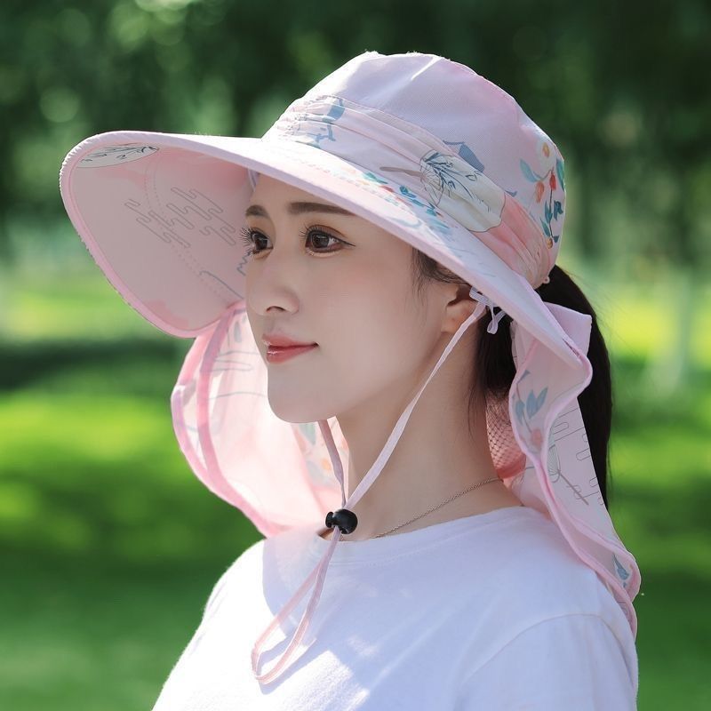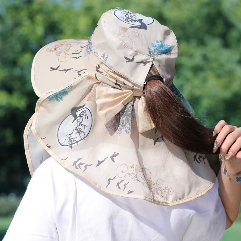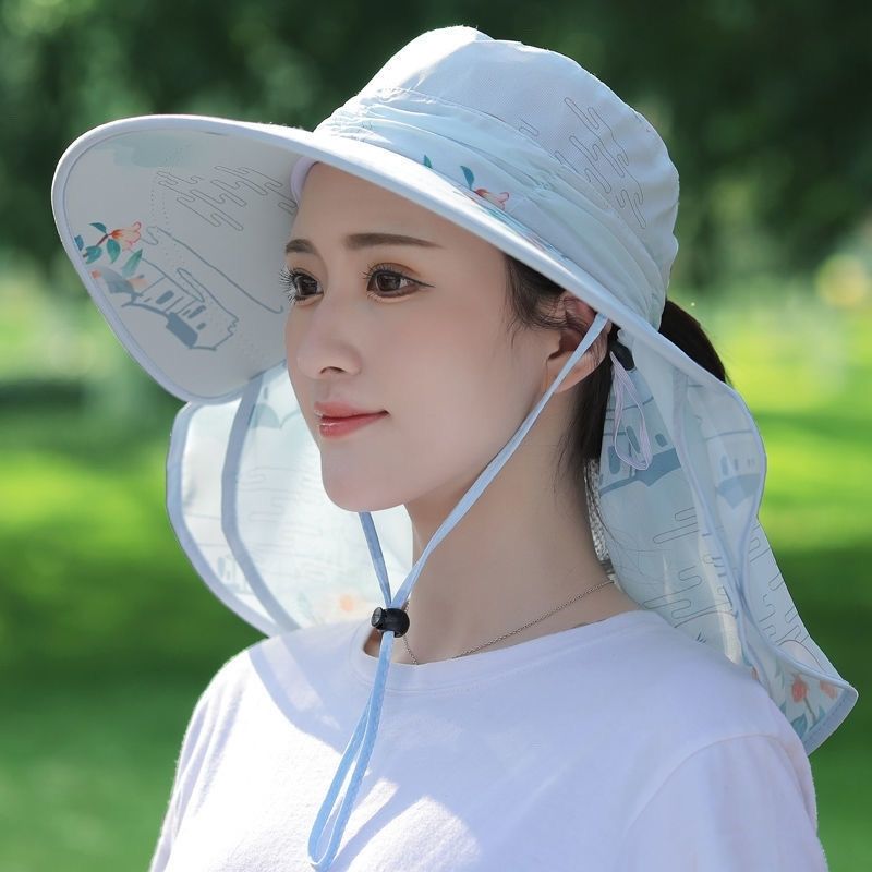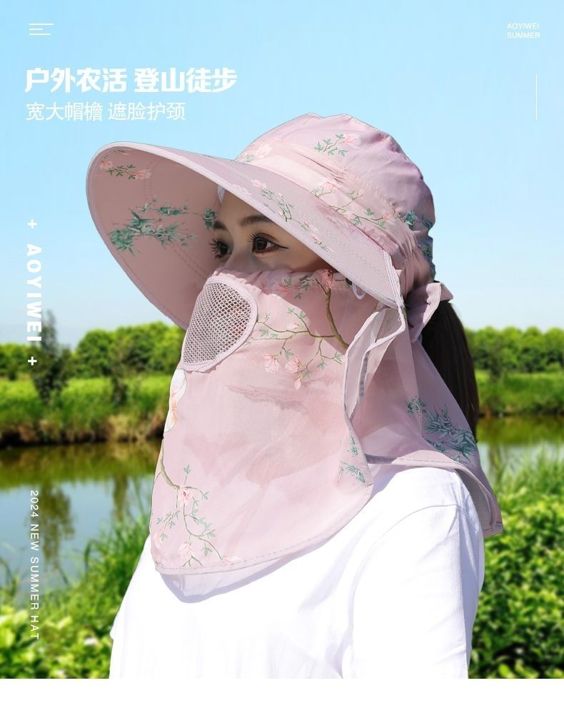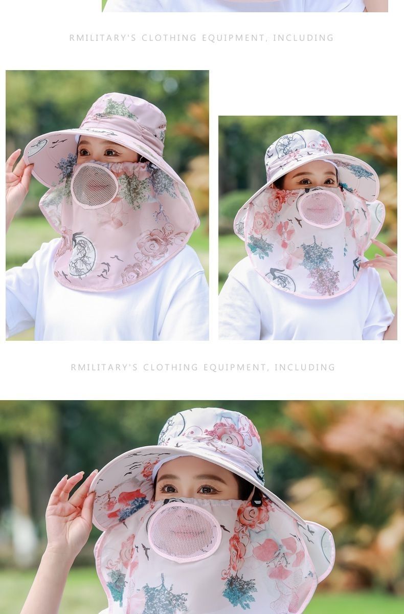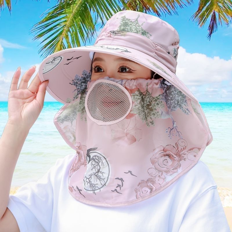 夏季面罩冰丝凉感防晒帽子遮脸太阳帽防紫外线百搭采茶防晒遮阳帽