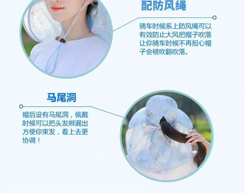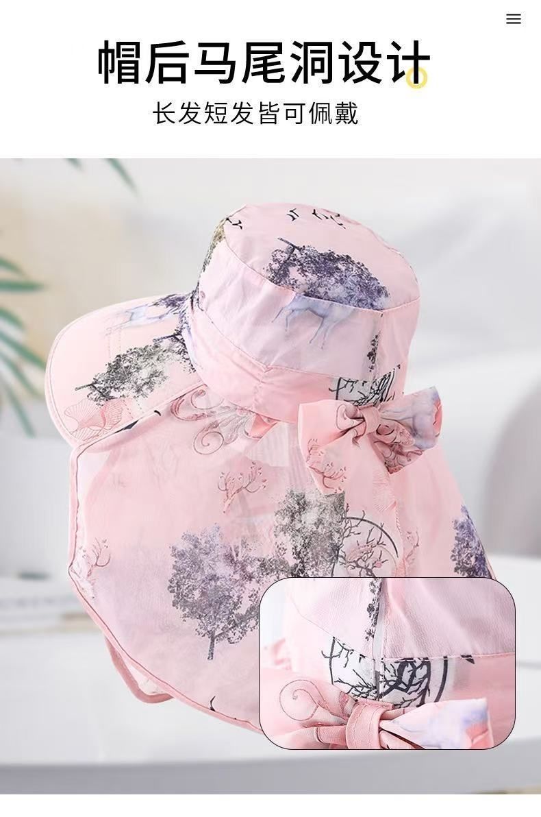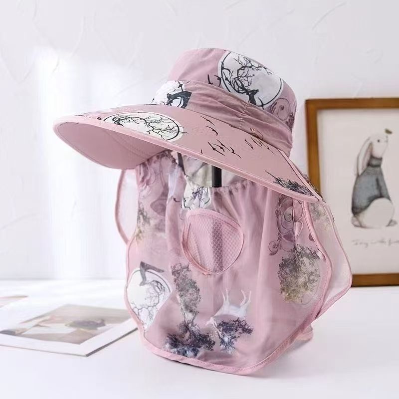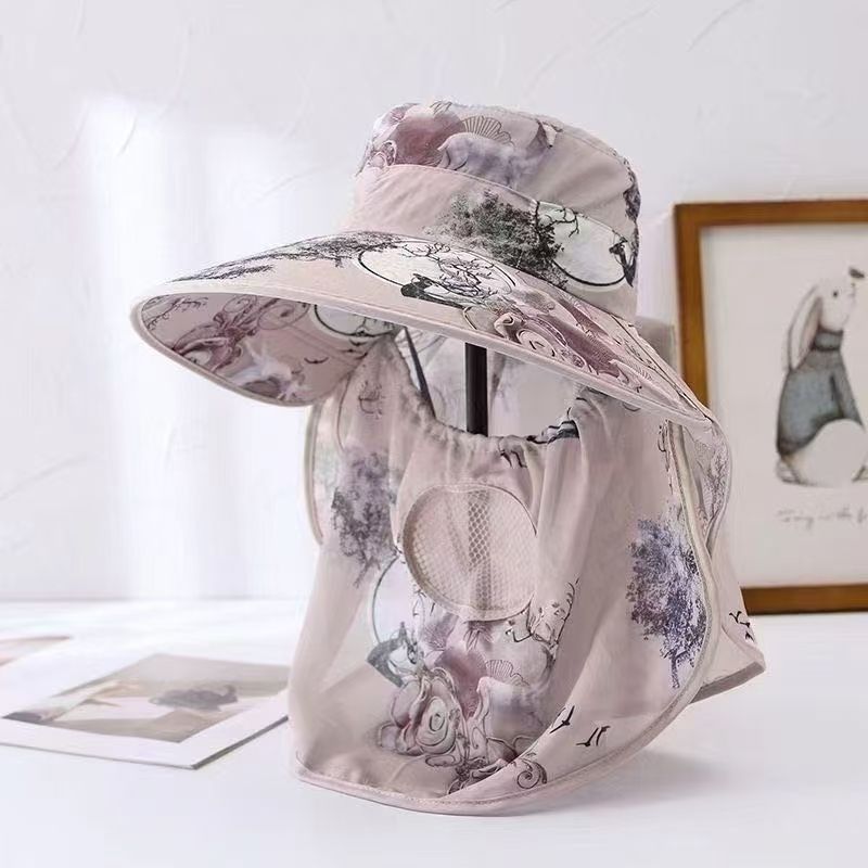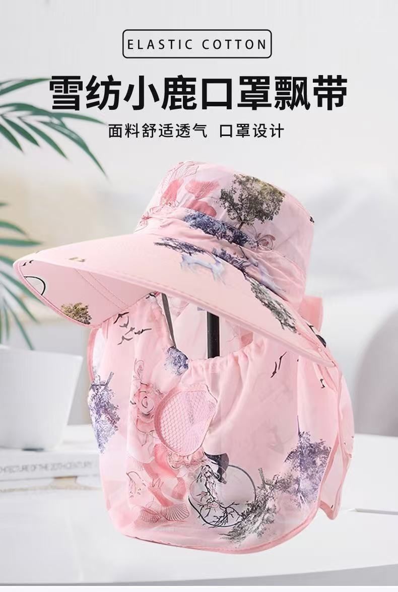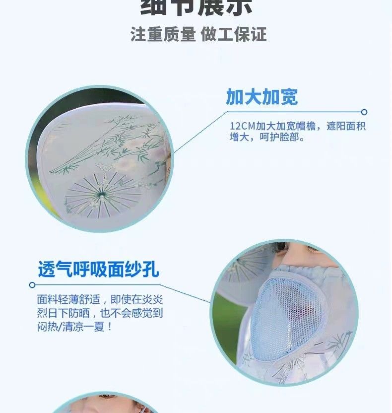 夏季面罩冰丝凉感防晒帽子遮脸太阳帽防紫外线百搭采茶防晒遮阳帽