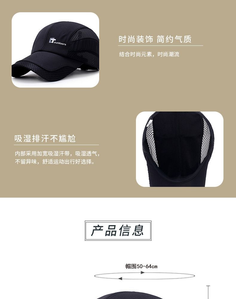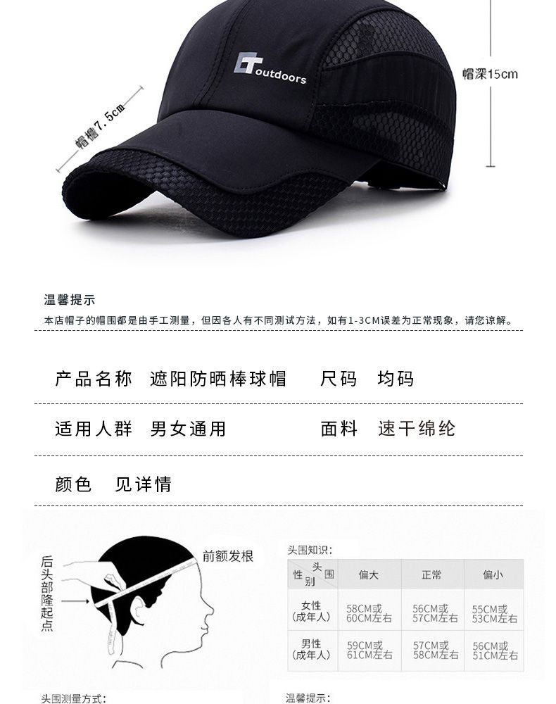 帽子夏季男女遮阳户外纱网速干防晒透气太阳帽遮阳帽棒球帽鸭舌帽