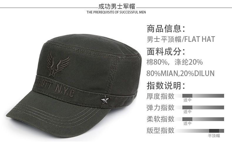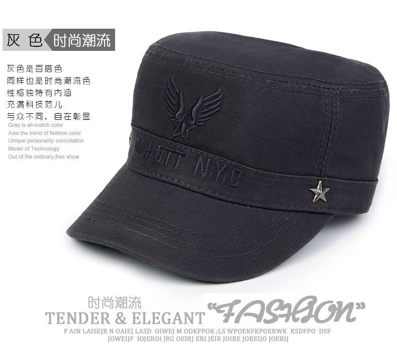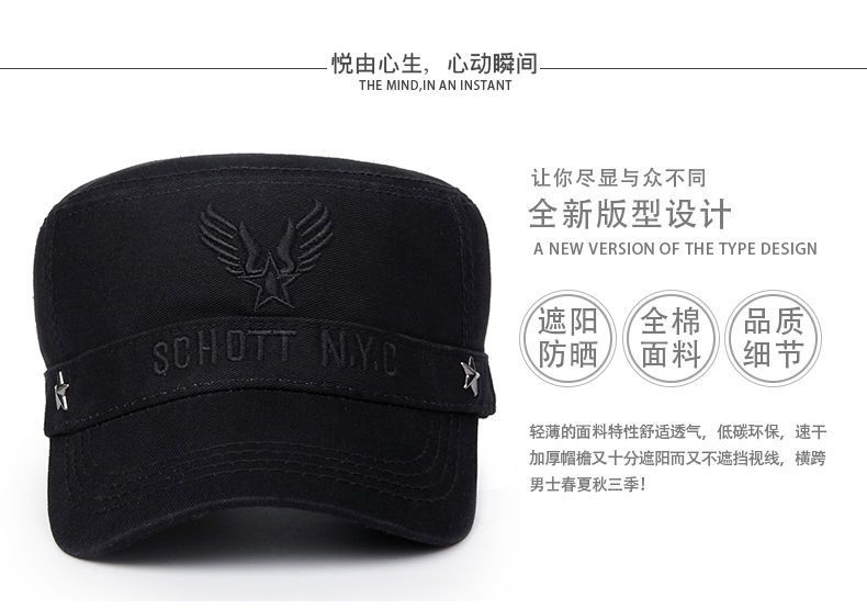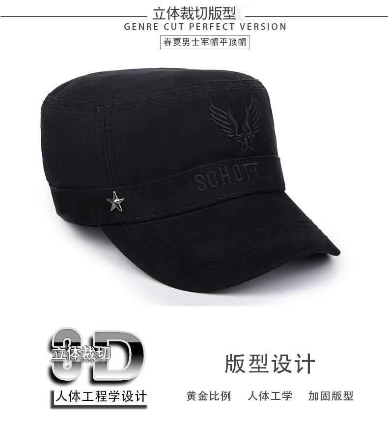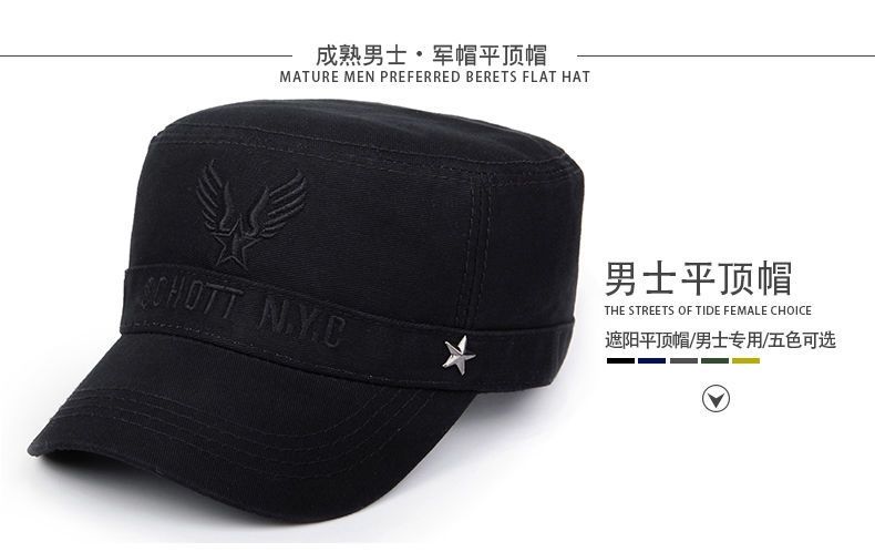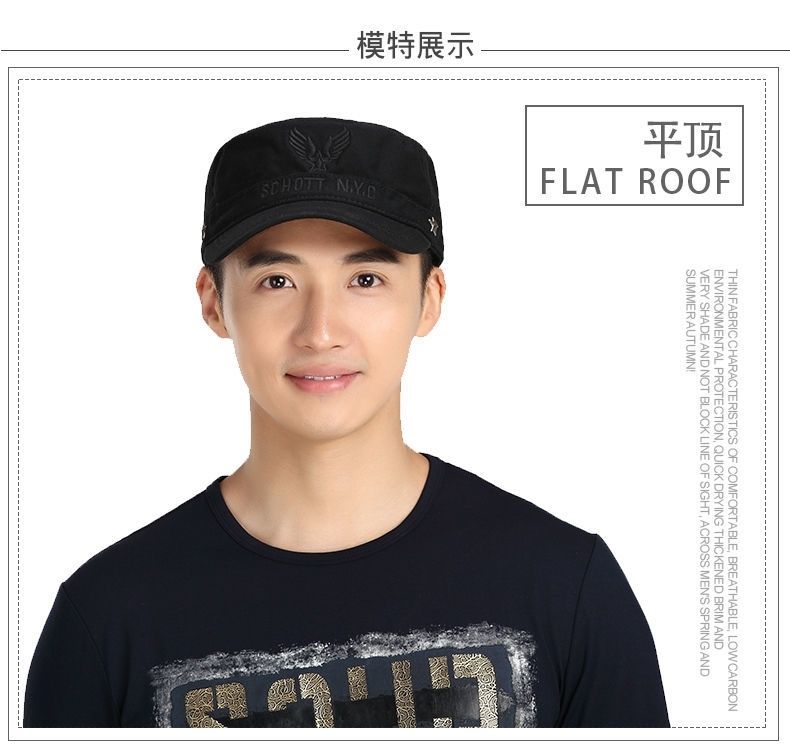 帽子男士夏天户外运动遮阳帽时尚平顶帽韩版太阳帽休闲鸭舌帽军帽