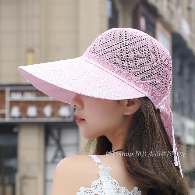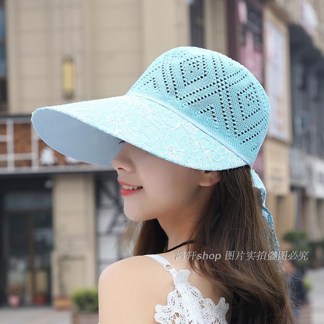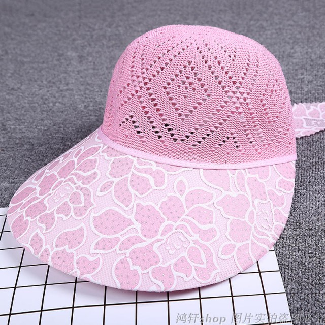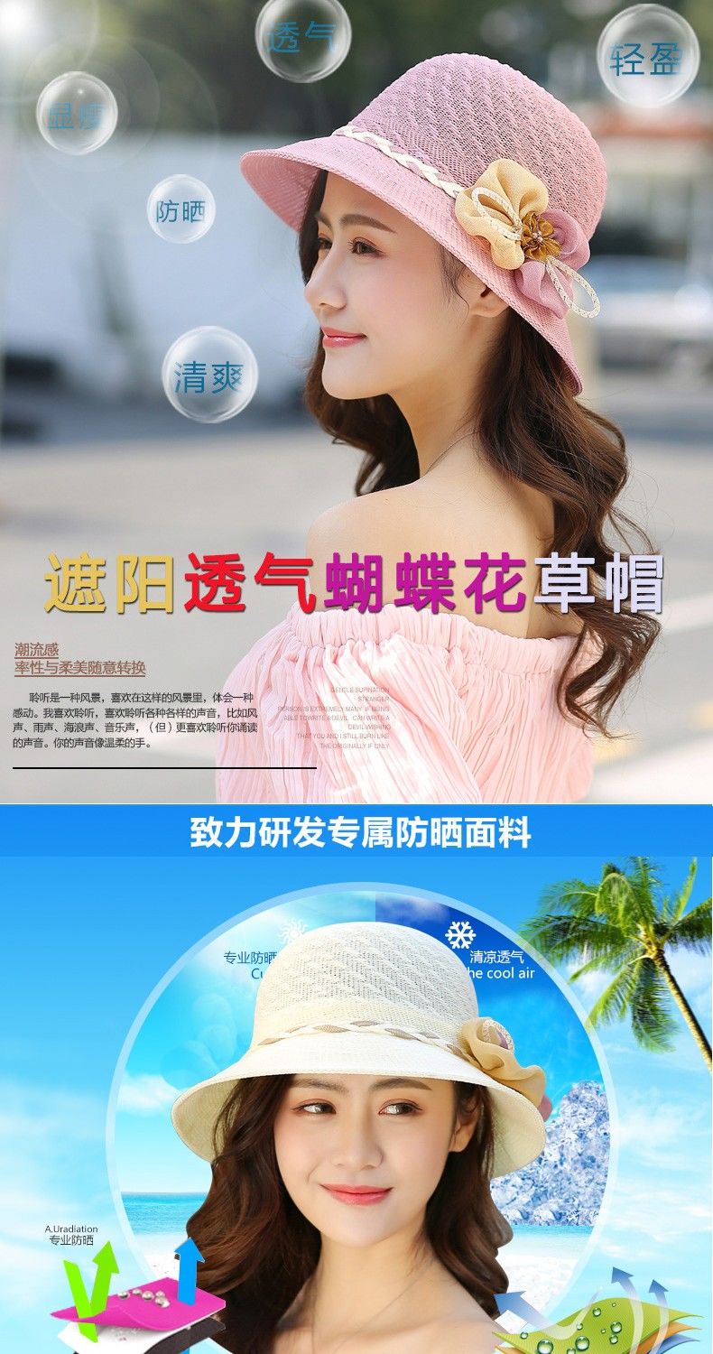 夏季防紫外线帽女花朵镂空大檐凉帽防晒遮阳帽透气遮脸骑车太阳帽