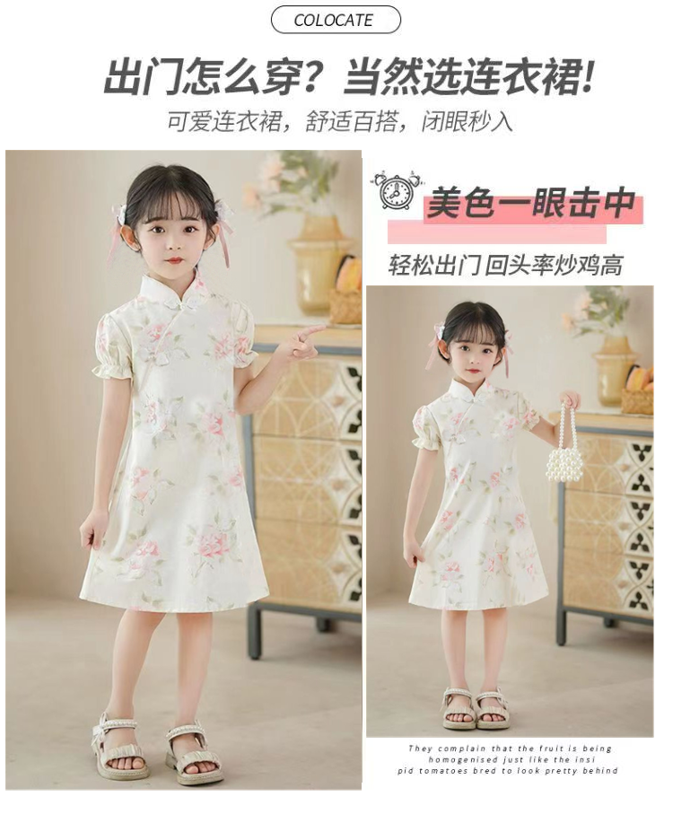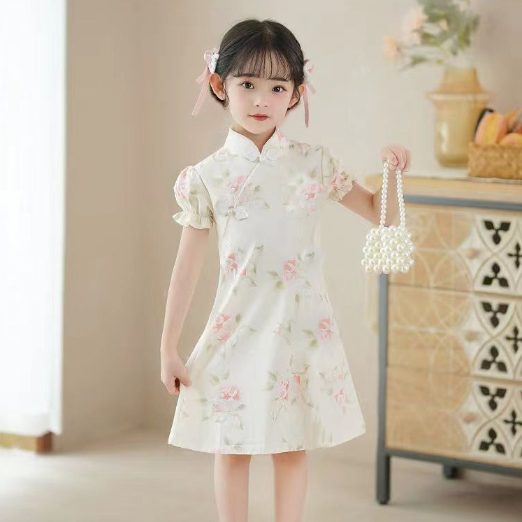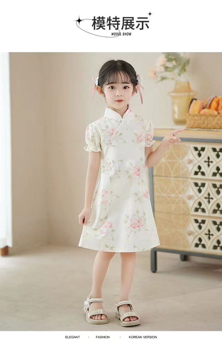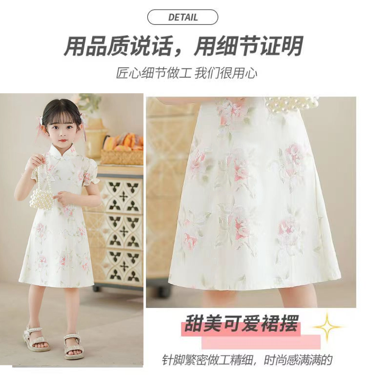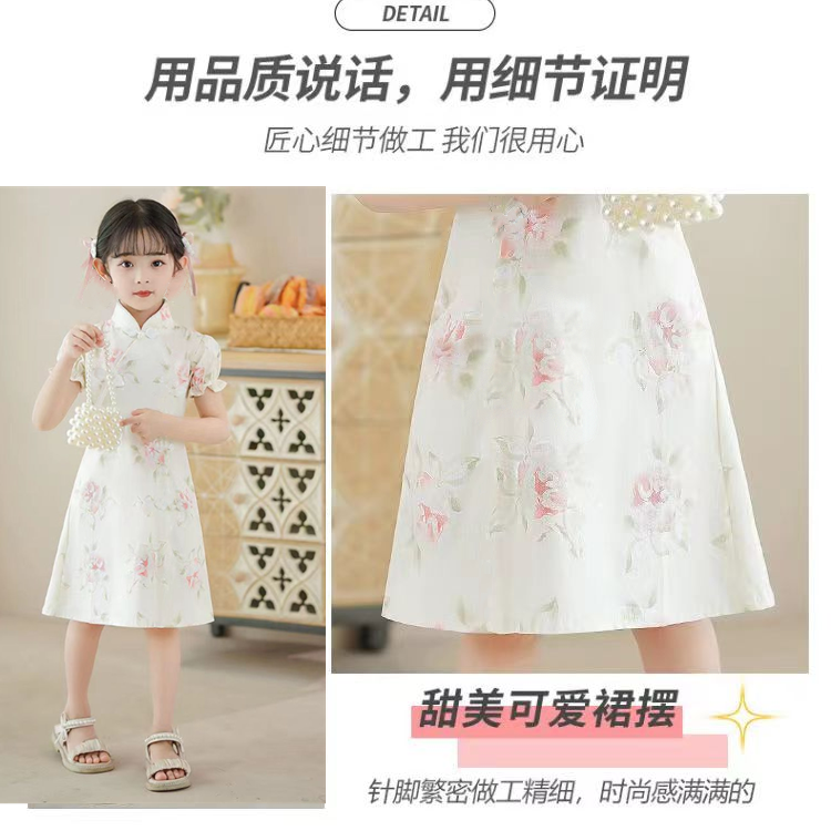 女童连衣裙夏季2023新款薄款公主儿童旗袍夏装小女孩短袖国风裙子
