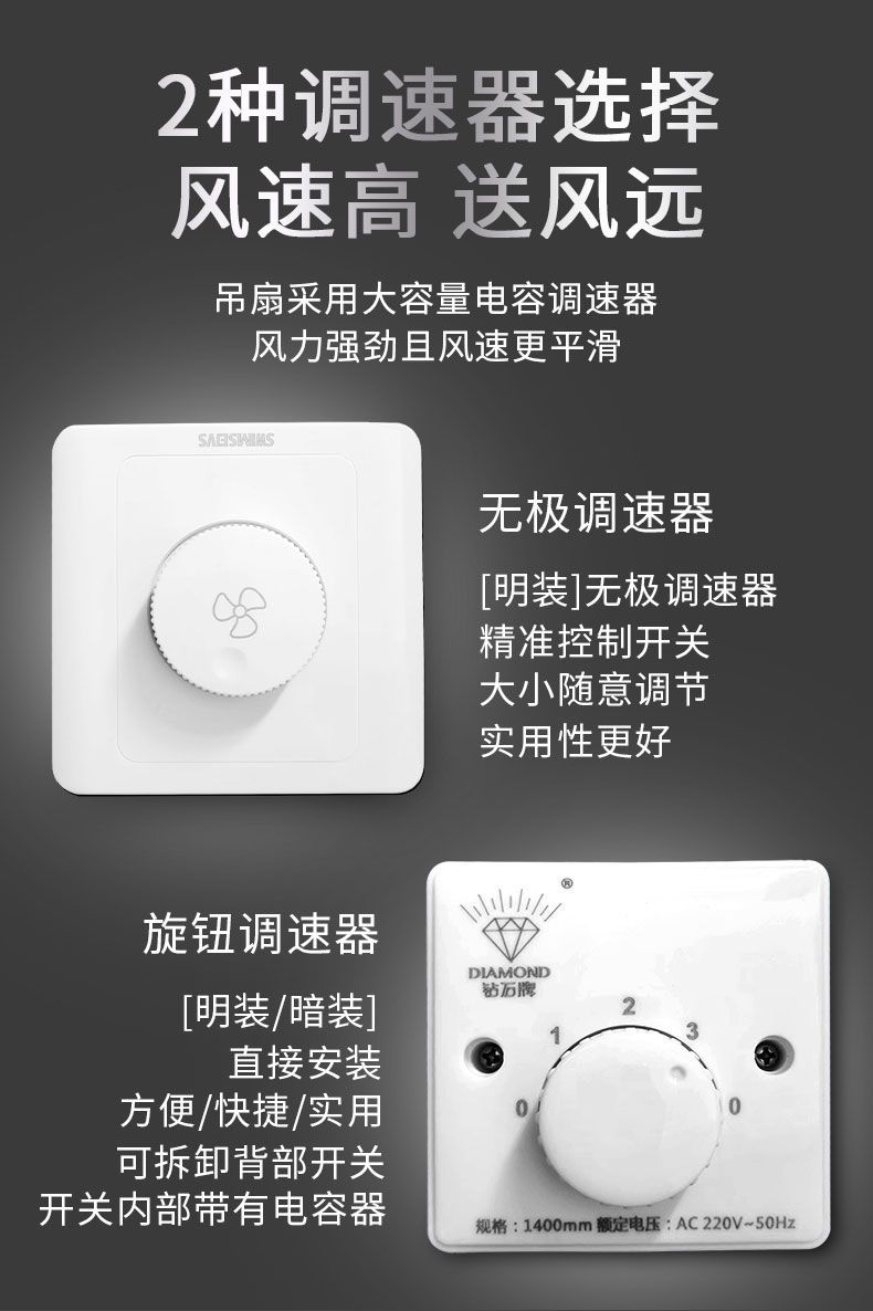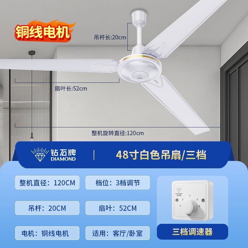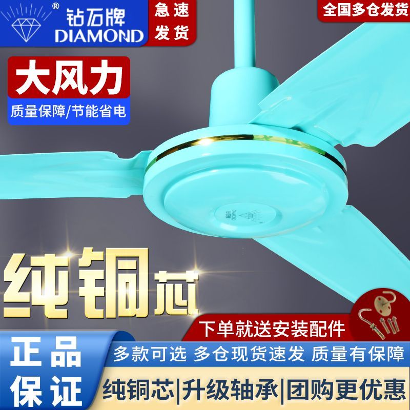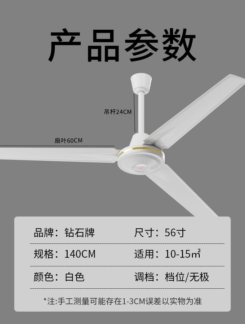 钻石牌工厂吊扇铁叶1400MM家用餐厅绿色宿舍工业56寸工程大风扇