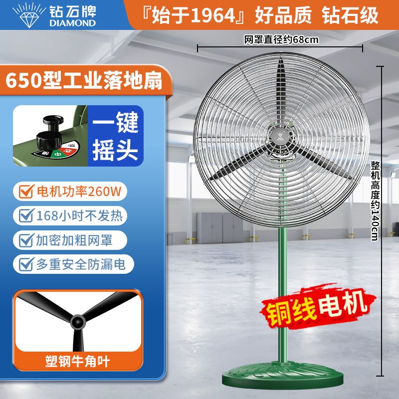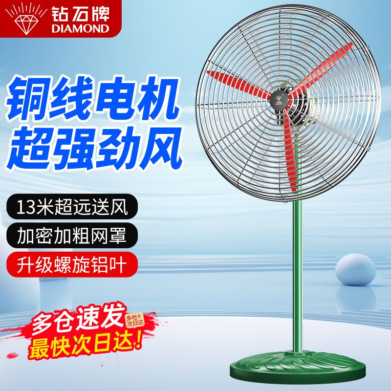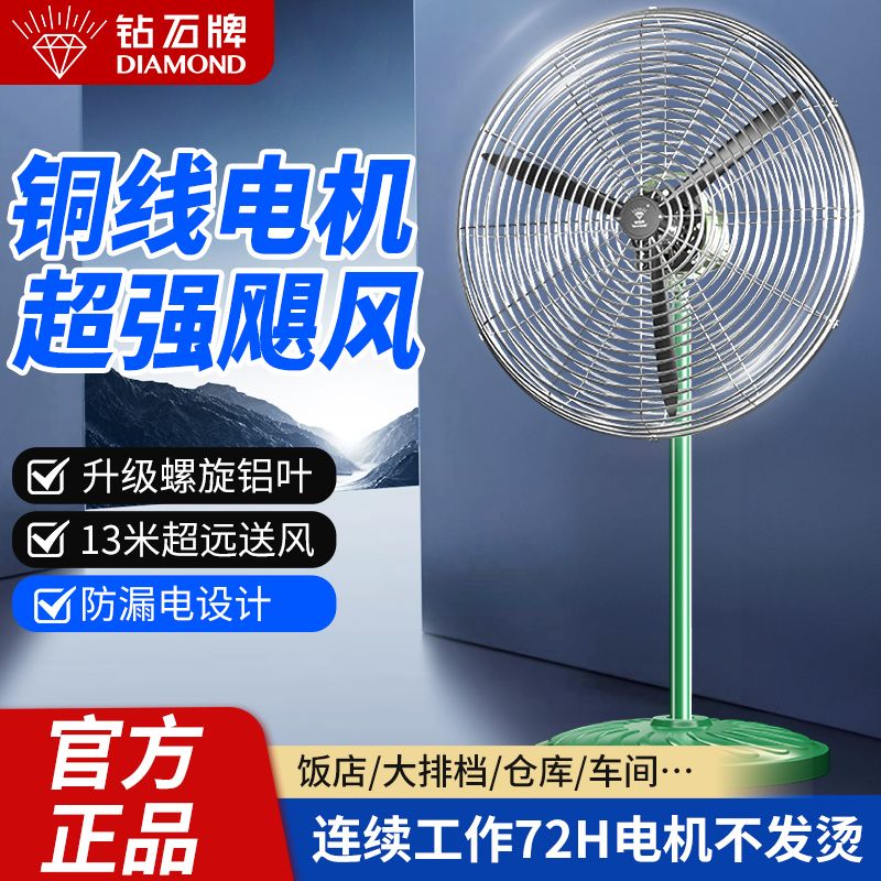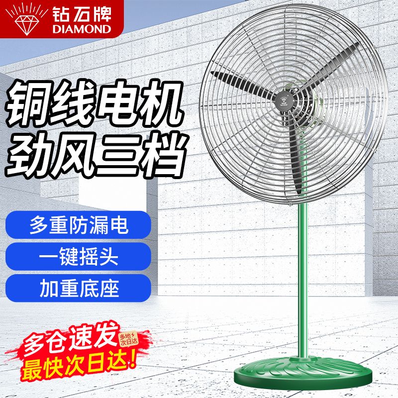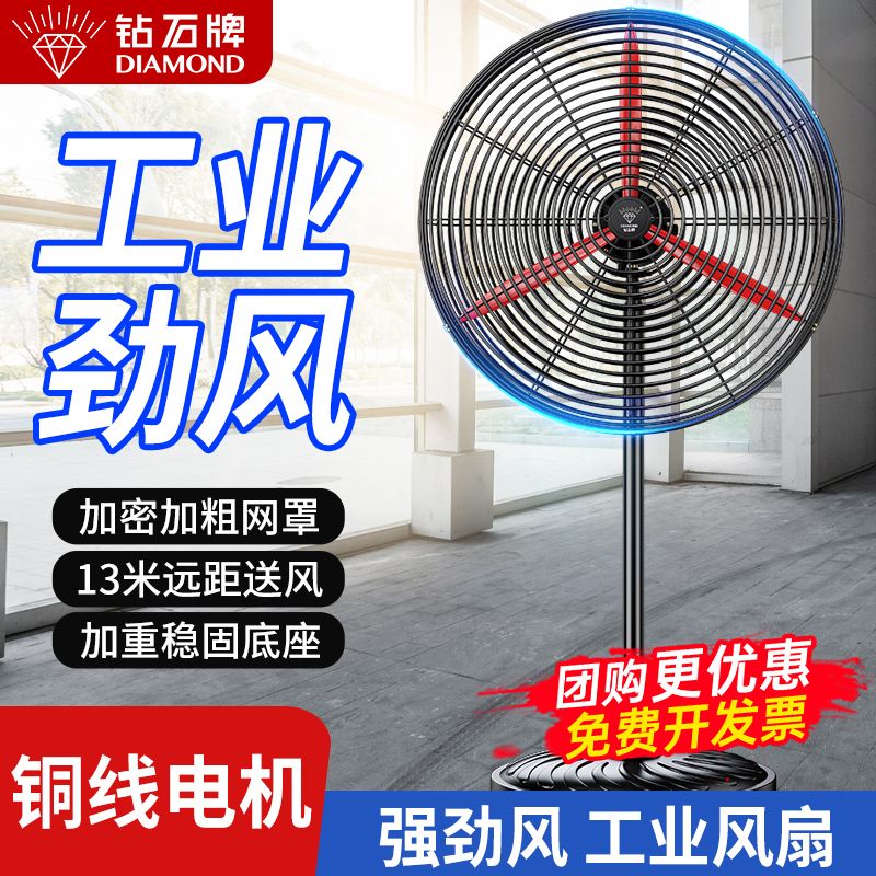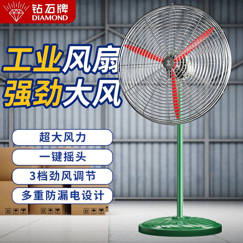 钻石牌工业电风扇强力落地风扇大功率大风力除甲醛商用工厂牛角扇