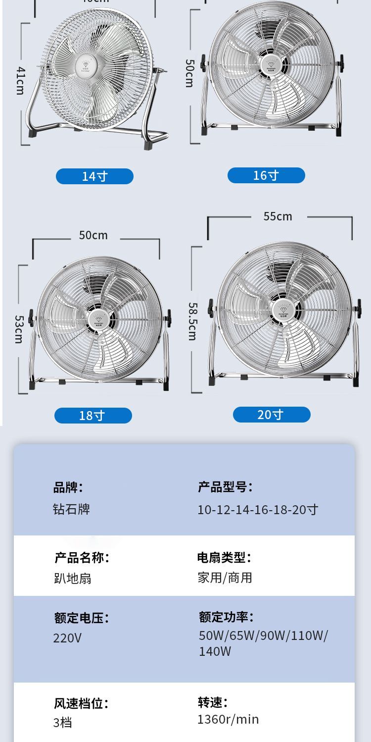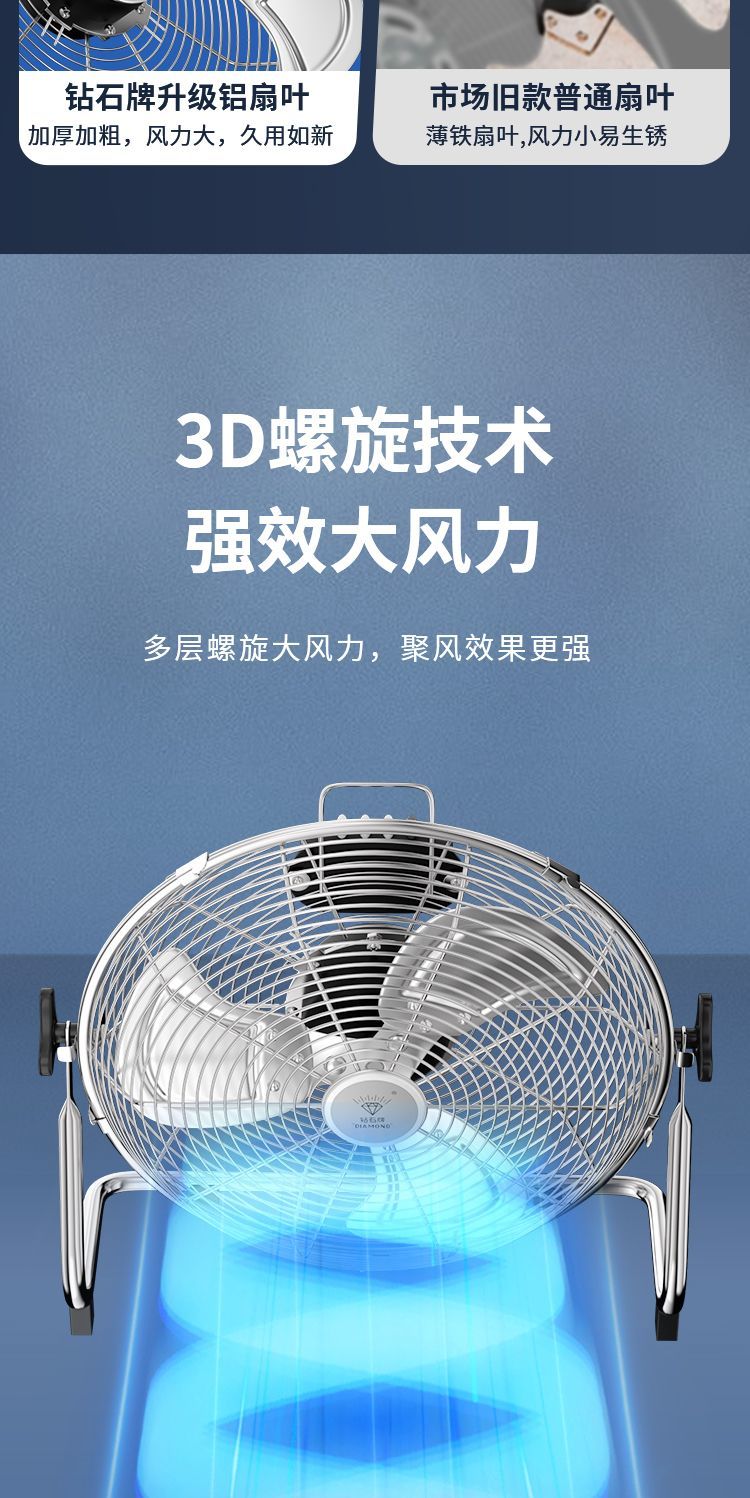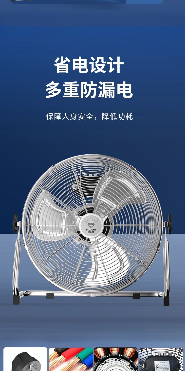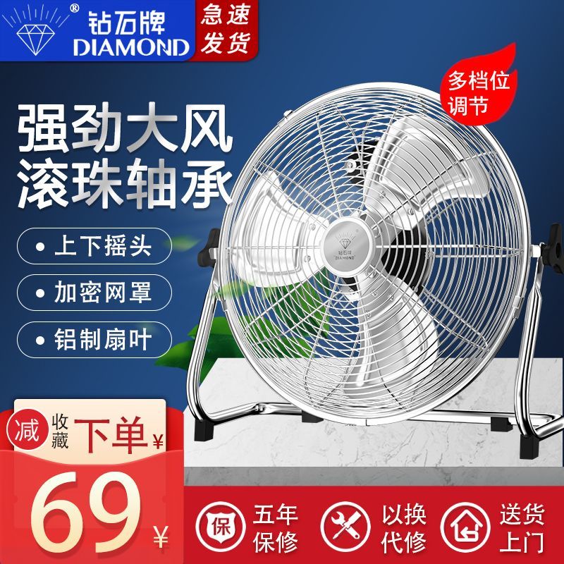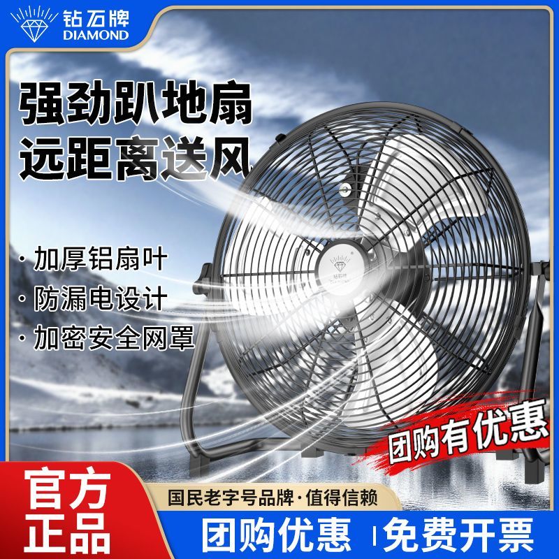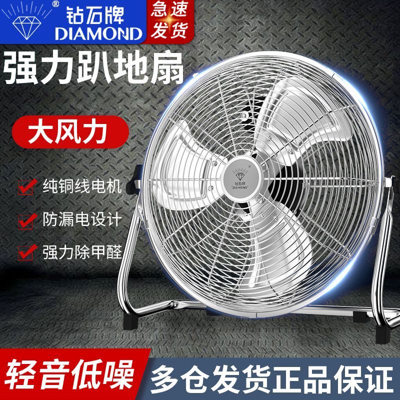 钻石牌强力趴地扇大功率工业风扇落地扇家用坐爬地扇商用台式风扇
