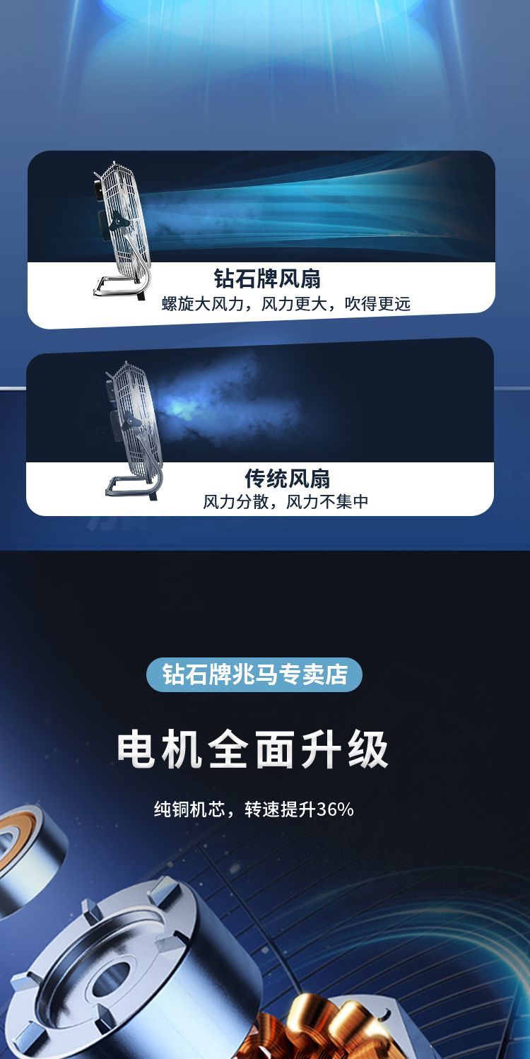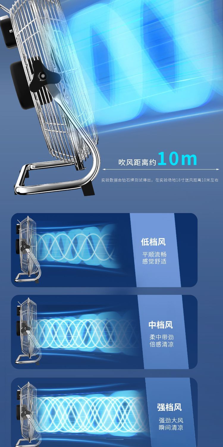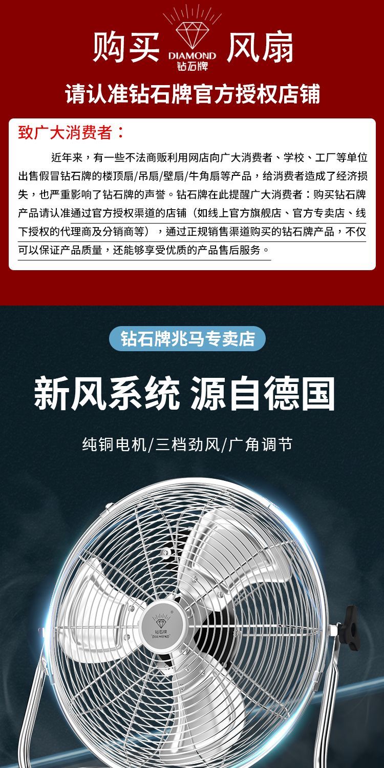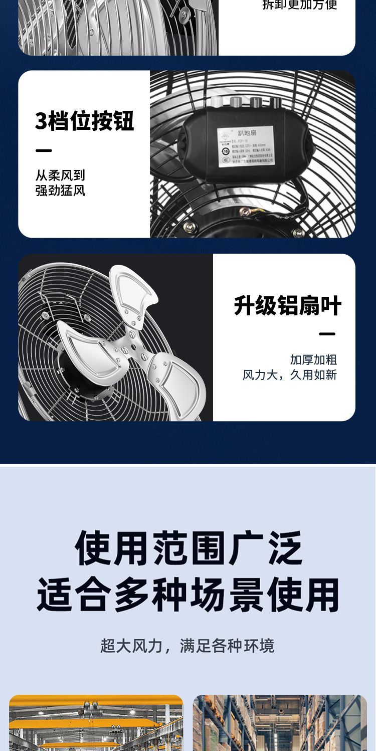 钻石牌强力趴地扇大功率工业风扇落地扇家用坐爬地扇商用台式风扇