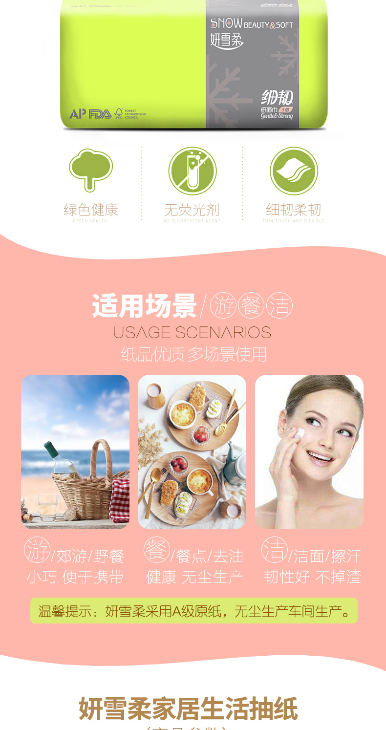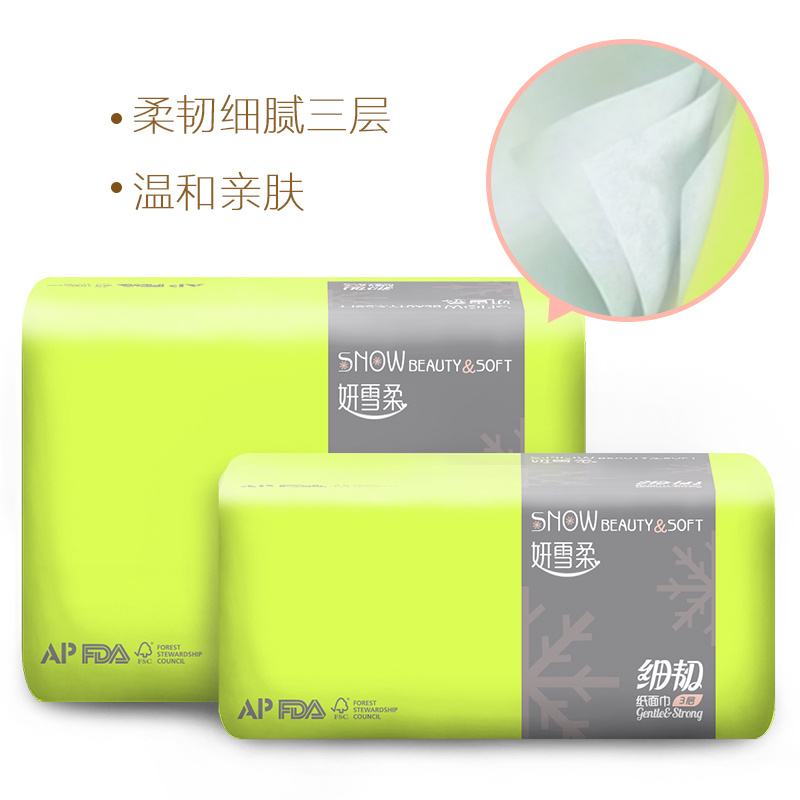 30包/8包妍雪柔3层抽纸整箱原木纸巾面巾300张餐巾孕婴卫生纸批发