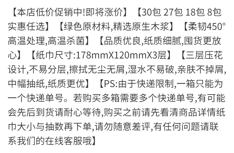 | hardcover 24 packs full box [plus plus-sized upgraded version]](精装24包整箱【加量加大升级版】) | USD $6.06 | 999999 piece available |
