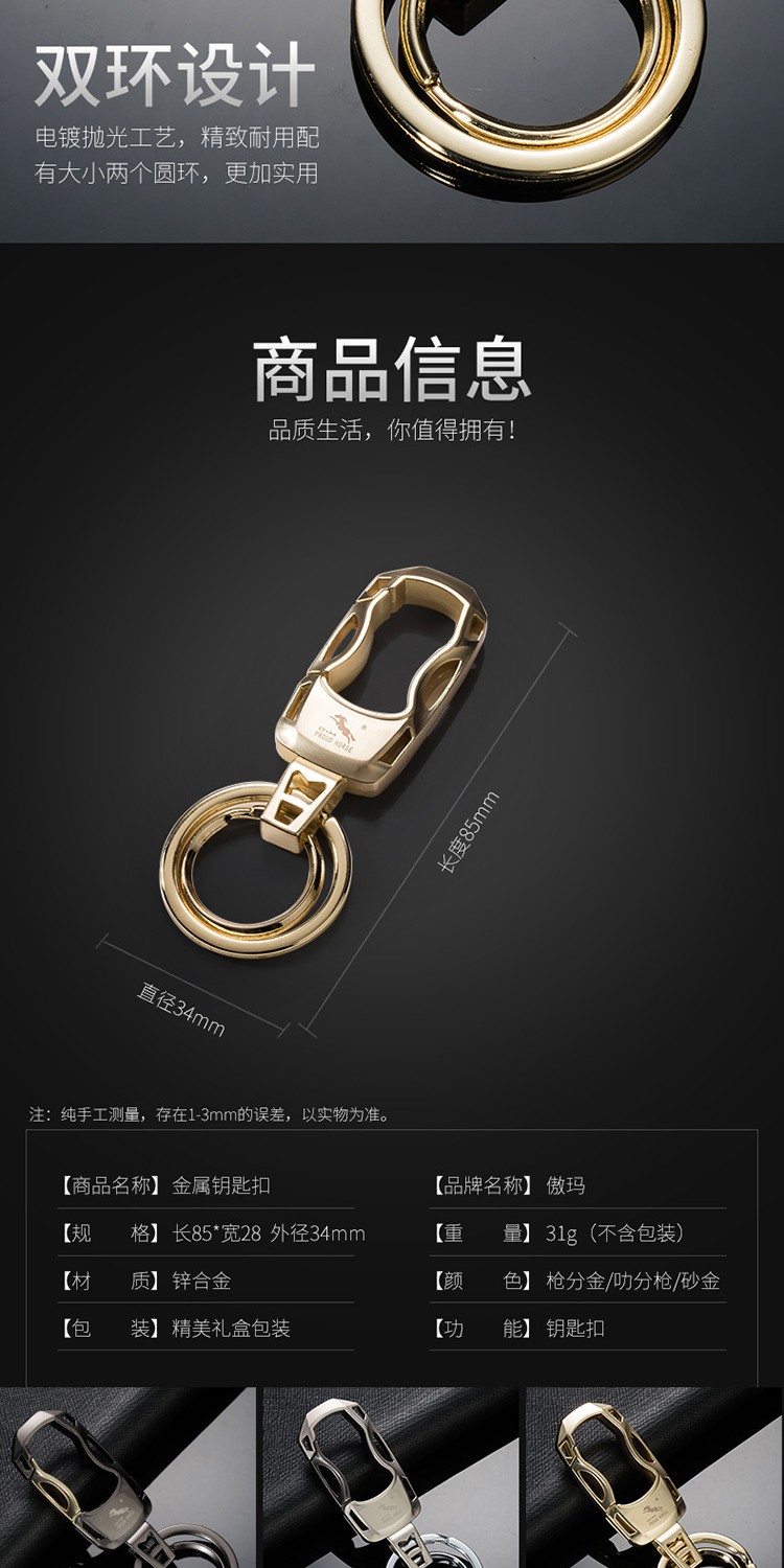新款傲玛钥匙扣汽车钥匙扣男士高档腰式扣挂件赠送男士礼物OM086