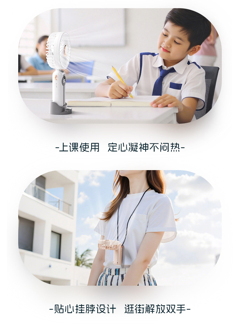 手持风扇充电迷你五档便携式随身户外桌面风扇挂脖跨境冰爽小风扇