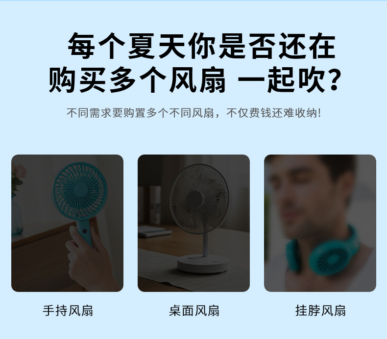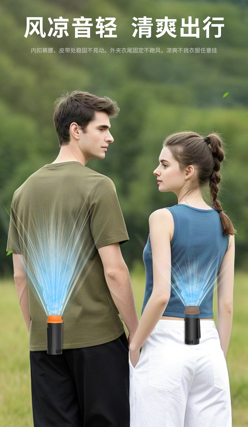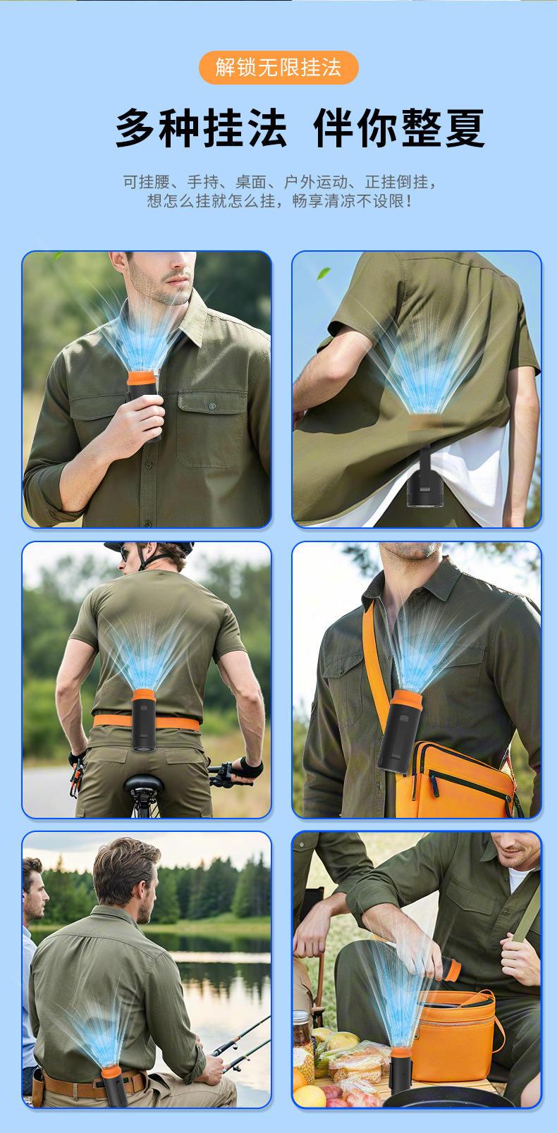 新款挂腰风扇工地超长续航小型风扇随身户外风扇夏天厨房散热神器