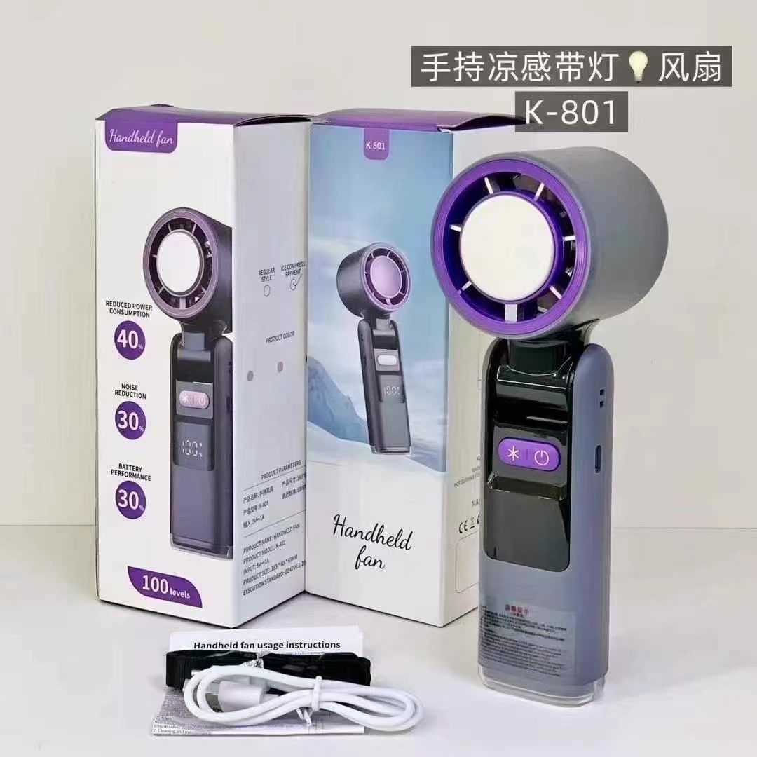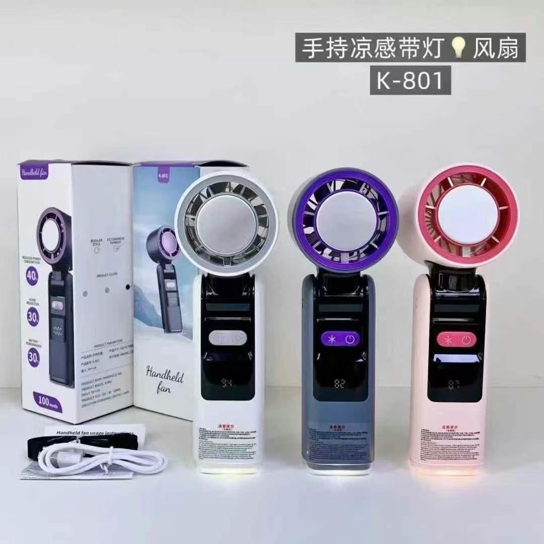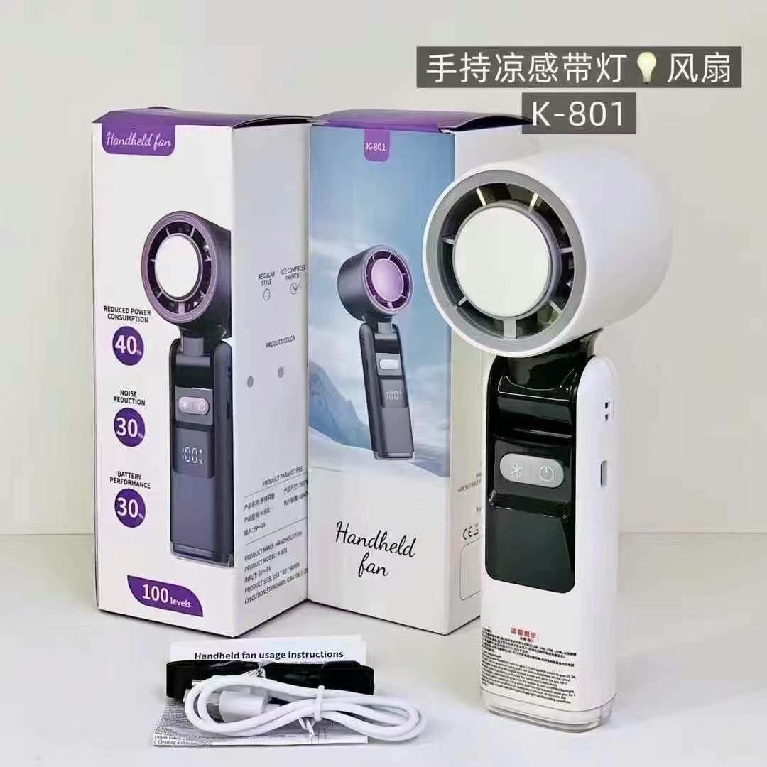 K801跨境新款高速冰敷手持风扇 数显涡轮暴力100档可折叠制冷风扇