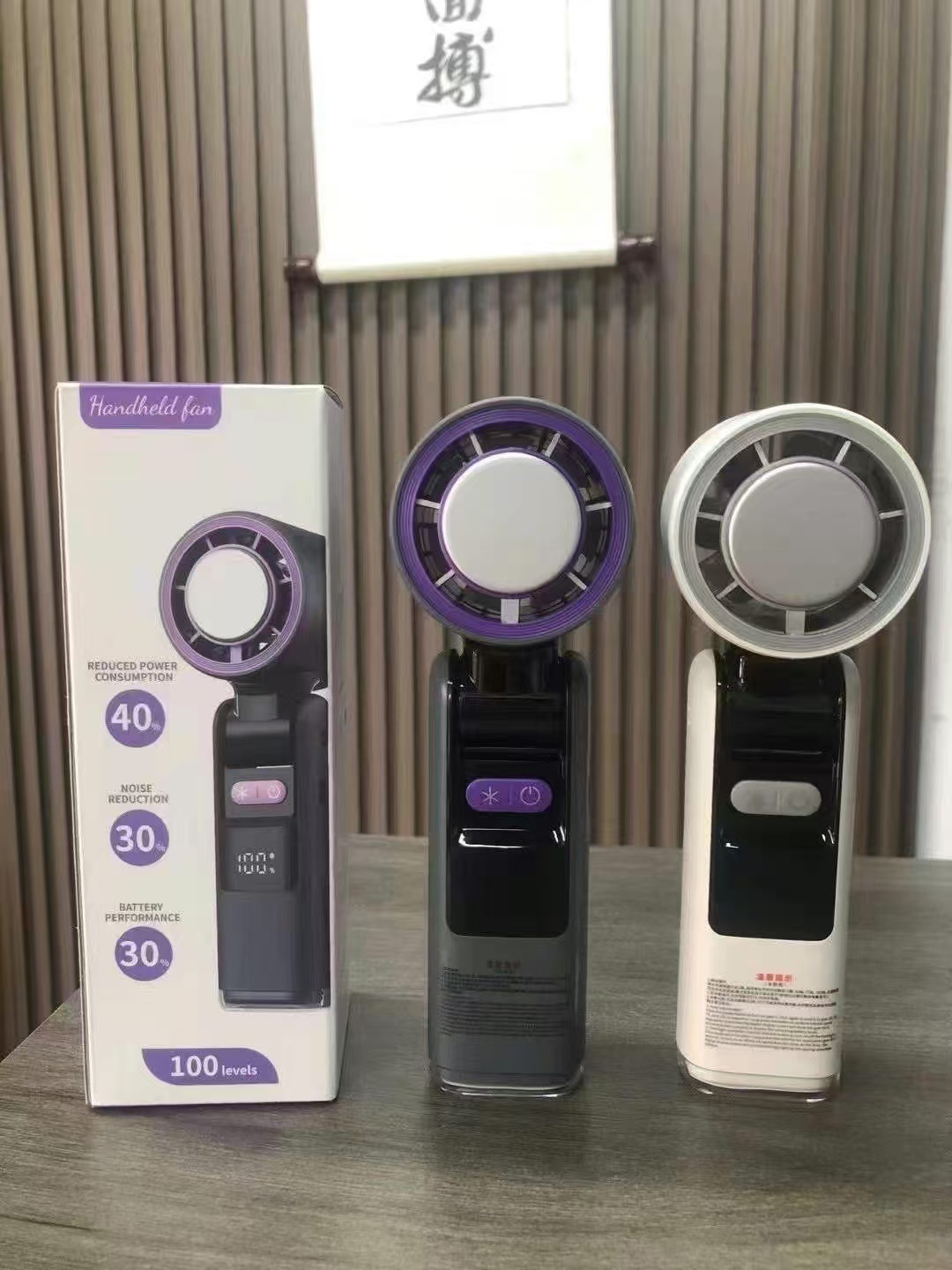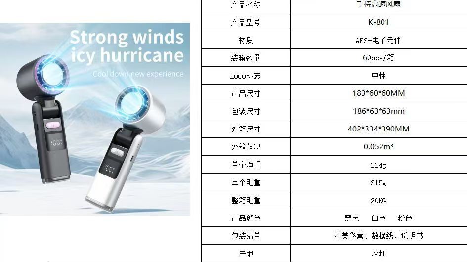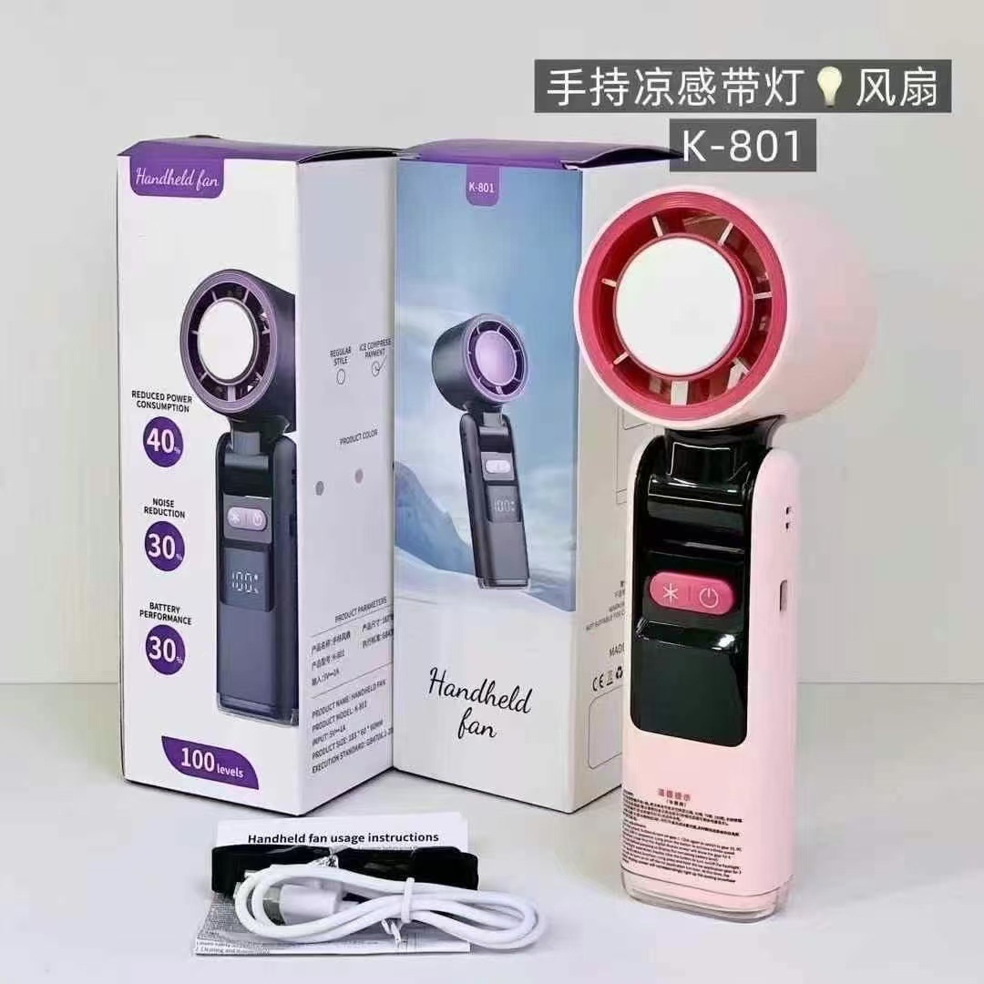 K801跨境新款高速冰敷手持风扇 数显涡轮暴力100档可折叠制冷风扇