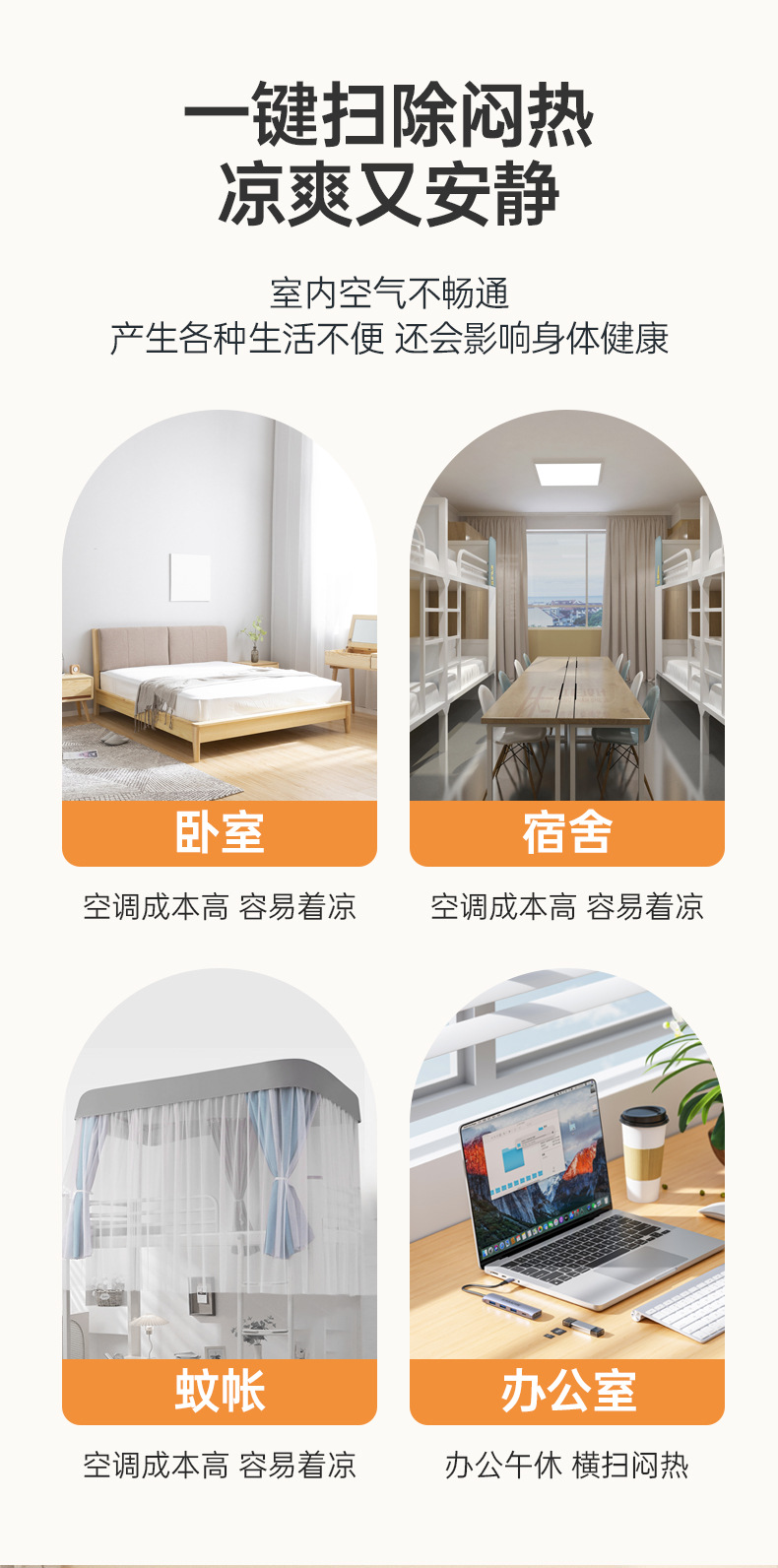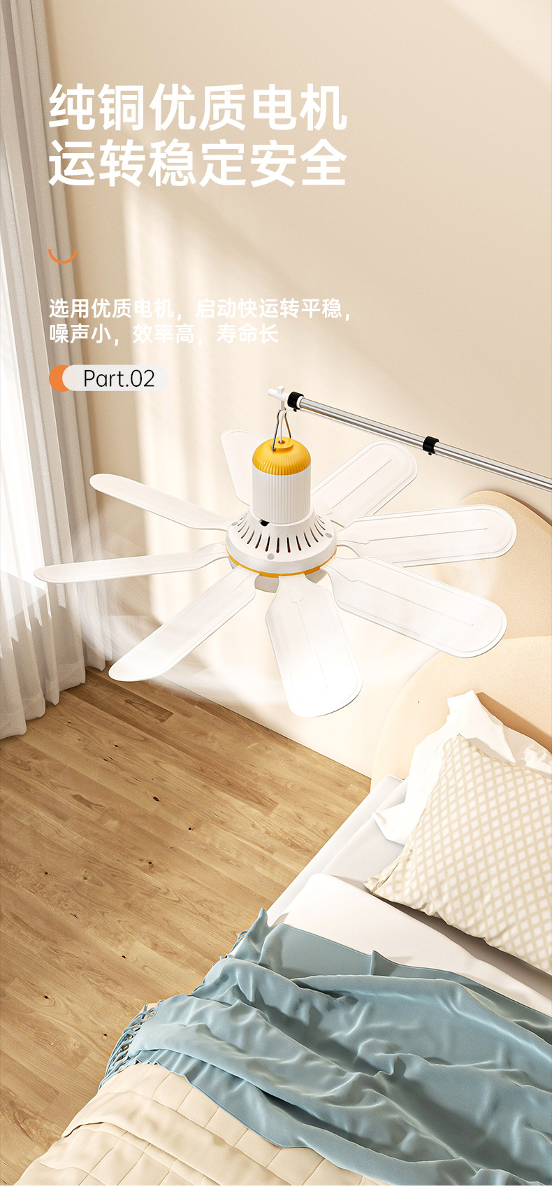 小吊扇小型迷你微风宿舍学生工地挂蚊帐床上静音电风扇家用大风力