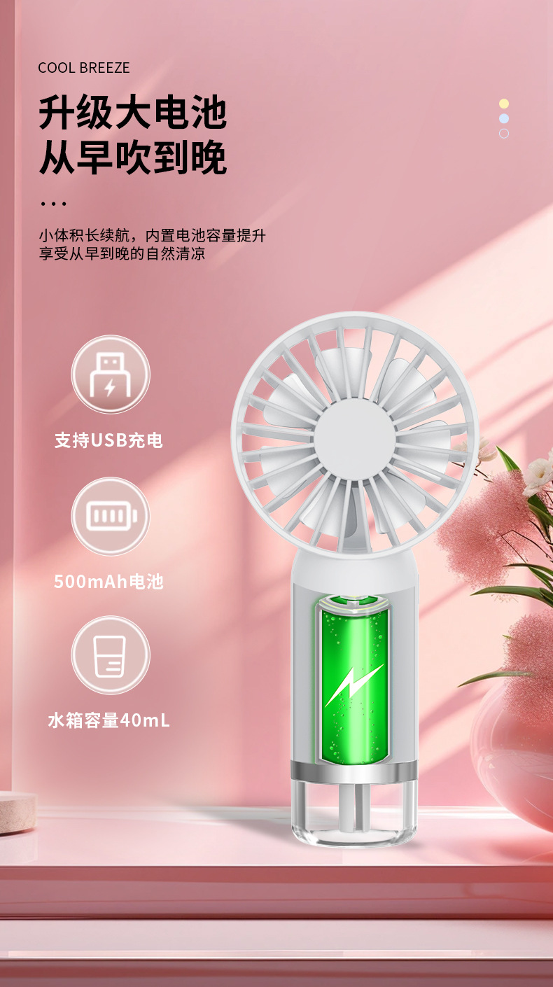 新款手持喷雾风扇便携式迷你小风扇制冷风扇跨境直播礼品源头厂家