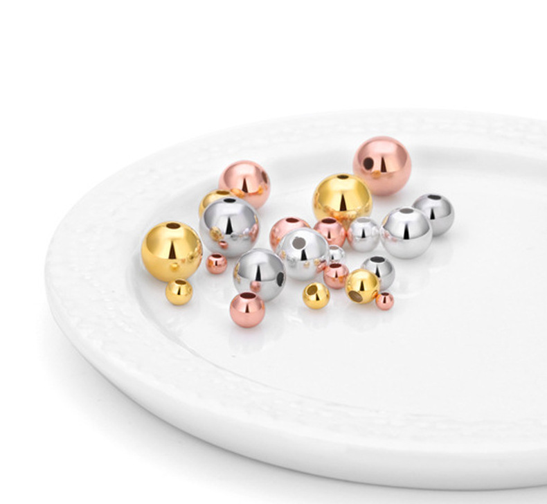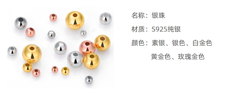 s925纯银珠子散珠定位光身隔珠佛珠手链DIY手工镀黄金配件批发